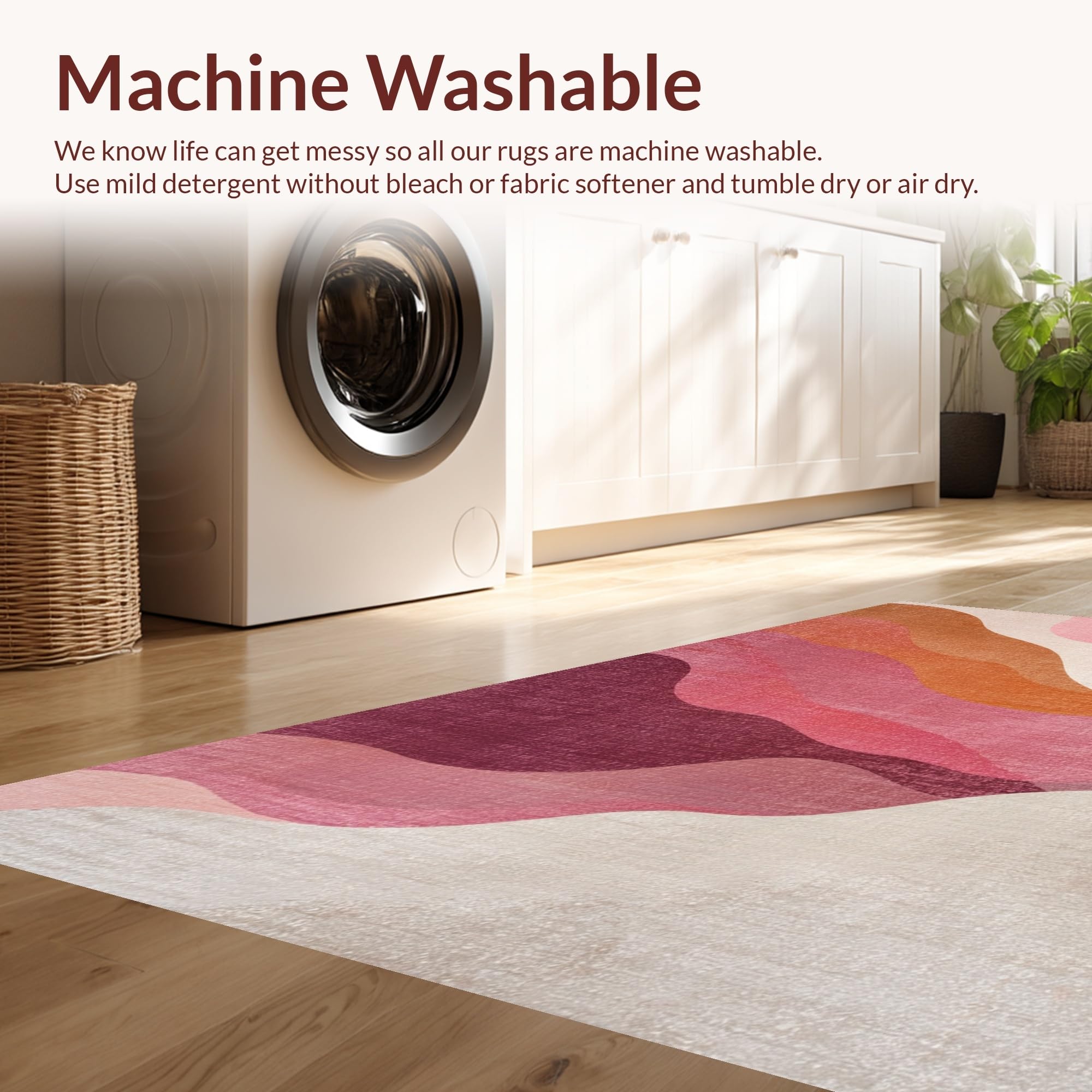 - Machine Washable: Our rugs can be easily thrown in the wash machine.