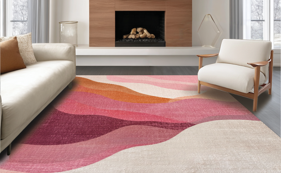 Ultra Soft Area Rug, Non Slip, Stain Resistant, Washable Area Rugs for Living Room, Bedroom, Soft Macaroon Inspired Plush Accent Rug in Dusty Rose with Kawaii Charm(Pink) Overview: