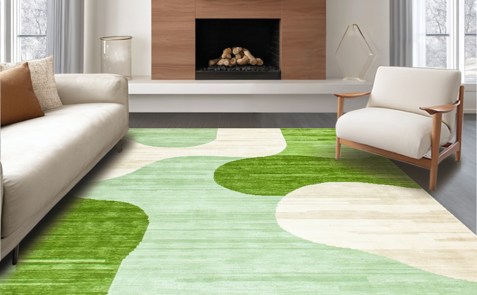 Ultra Soft Area Rug, Non Slip, Stain Resistant, Washable Area Rugs for Living Room, Bedroom, Soft Modern Abstract Aesthetic(Green) Overview:
