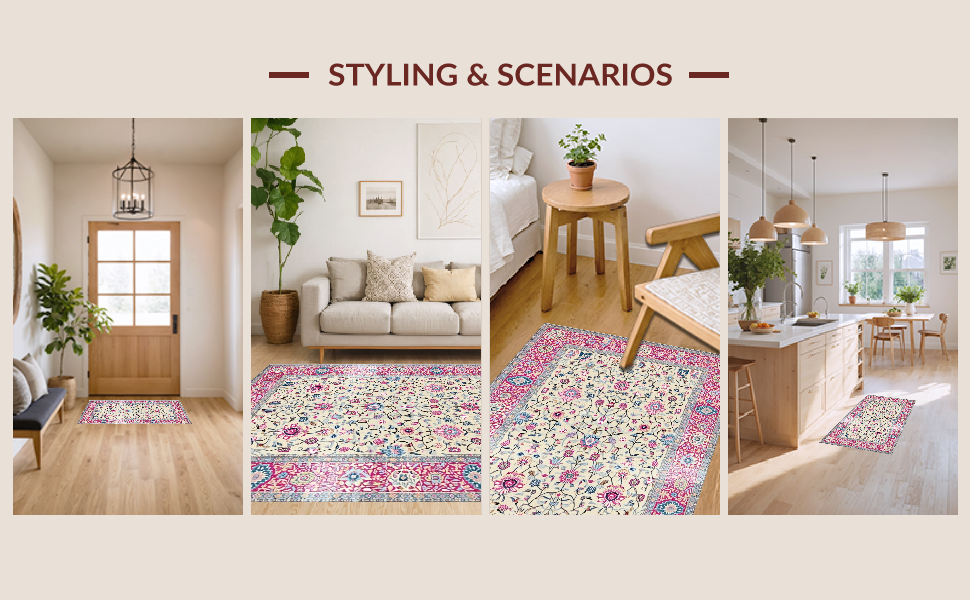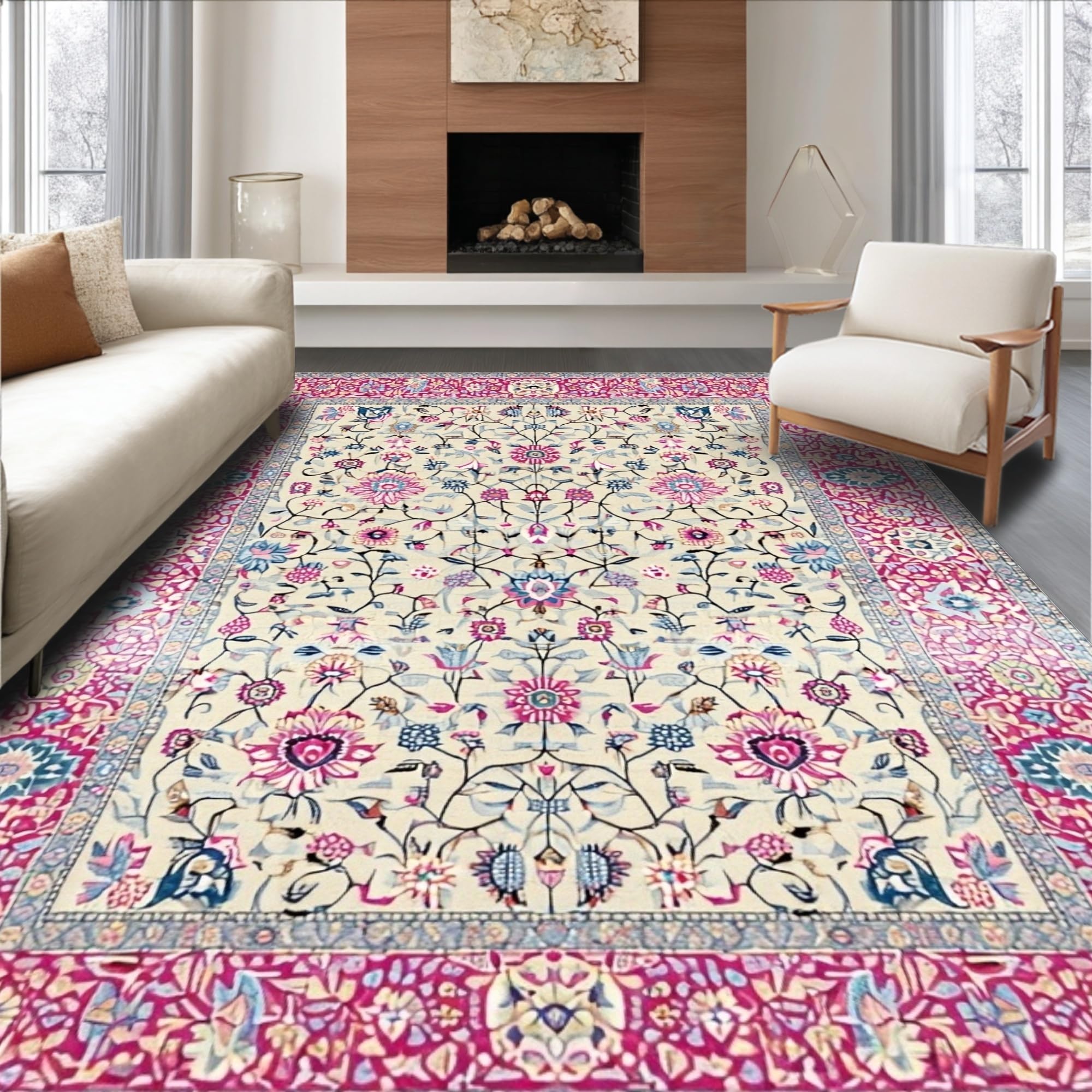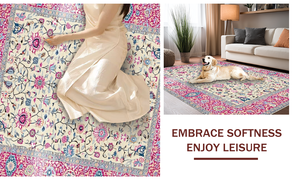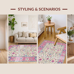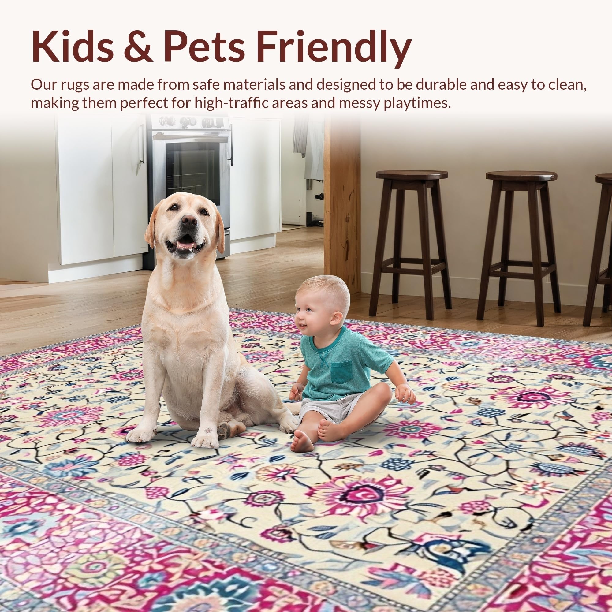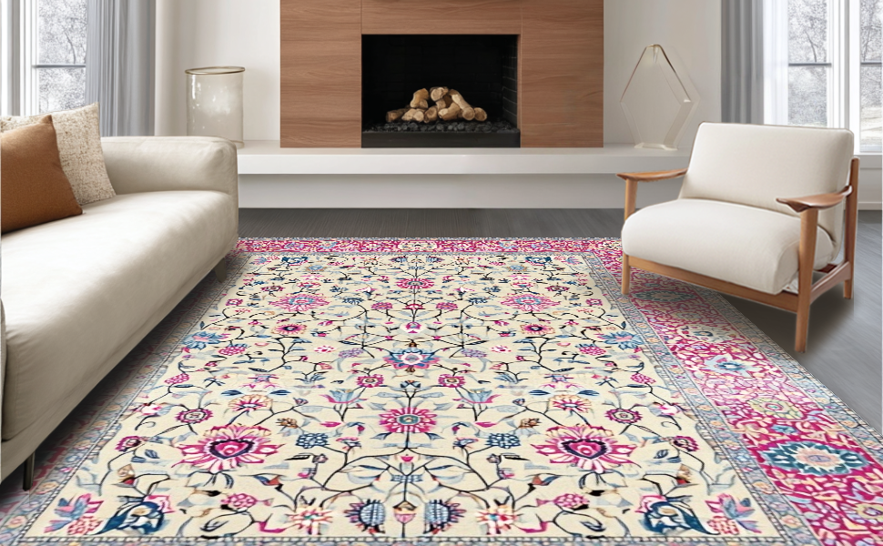 Ultra Soft Area Rug, Non Slip, Stain Resistant, Washable Area Rugs for Living Room, Bedroom, Soft Neutral Rustic Blooms Theme(Ivory) Overview: