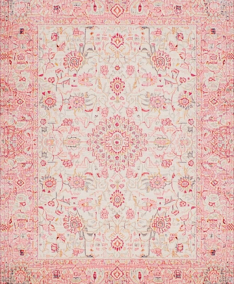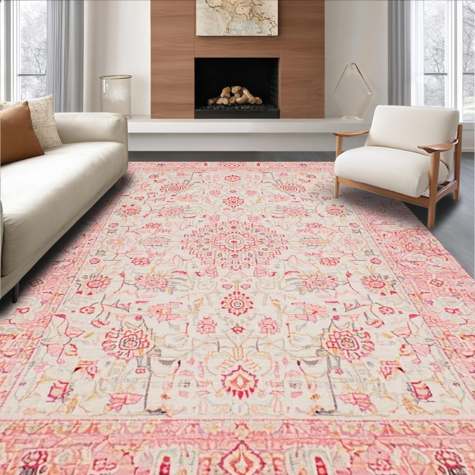 Ultra Soft Area Rug, Non Slip, Stain Resistant, Washable Area Rugs for Living Room, Bedroom, Soft Neutral Toned Organic Patterns(Pink) Overview: