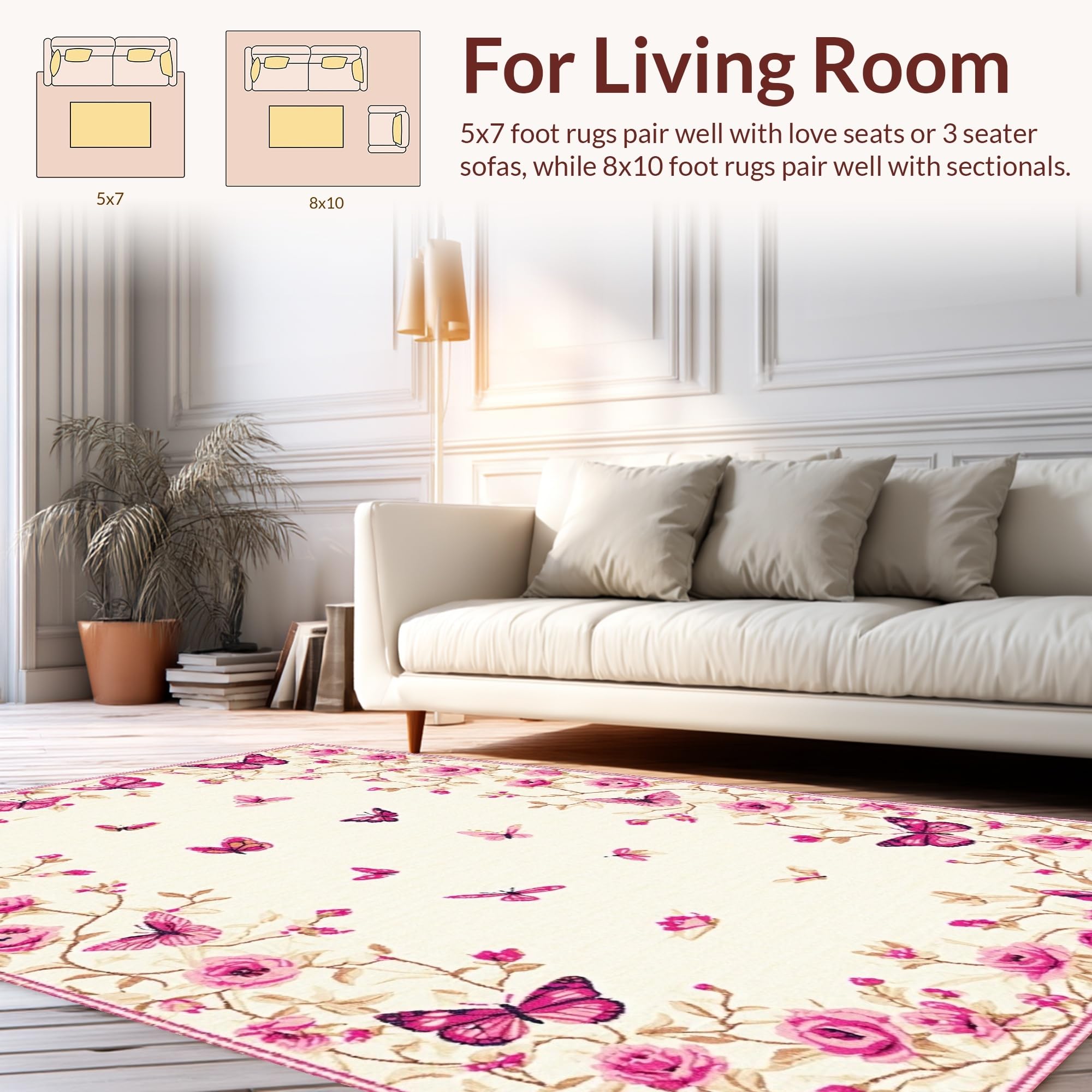 Ultra Soft Area Rug, Non Slip, Stain Resistant, Washable Area Rugs for Living Room, Bedroom, Soft Pastel Boho Elegance(Ivory) Overview: