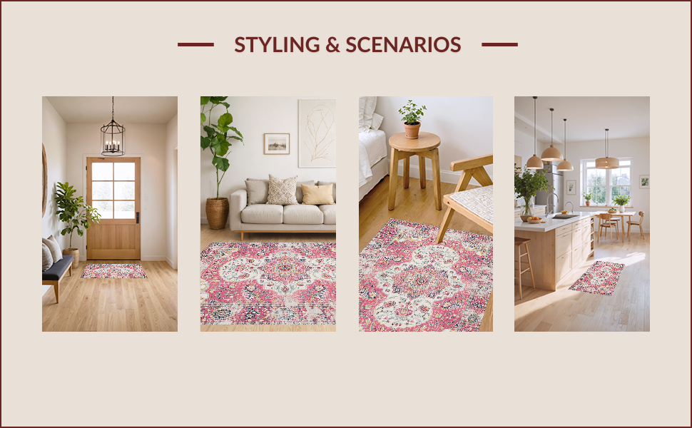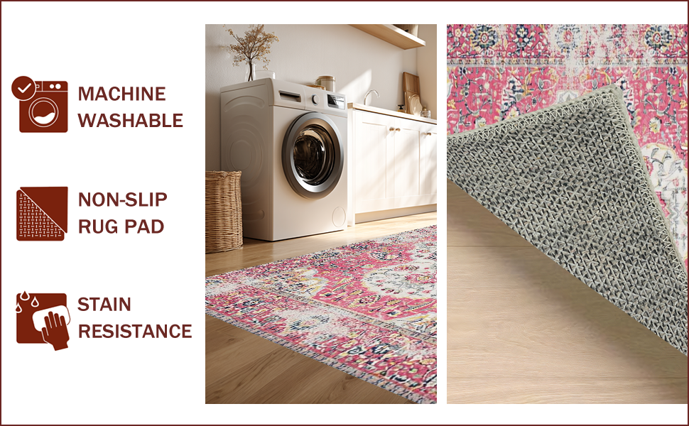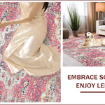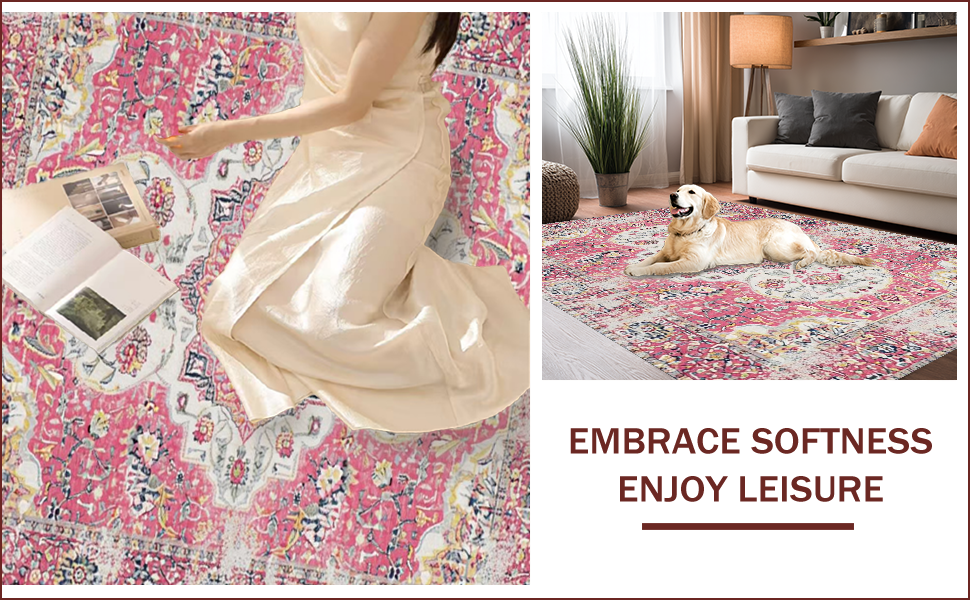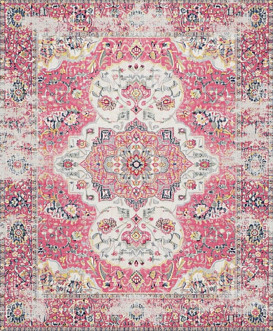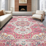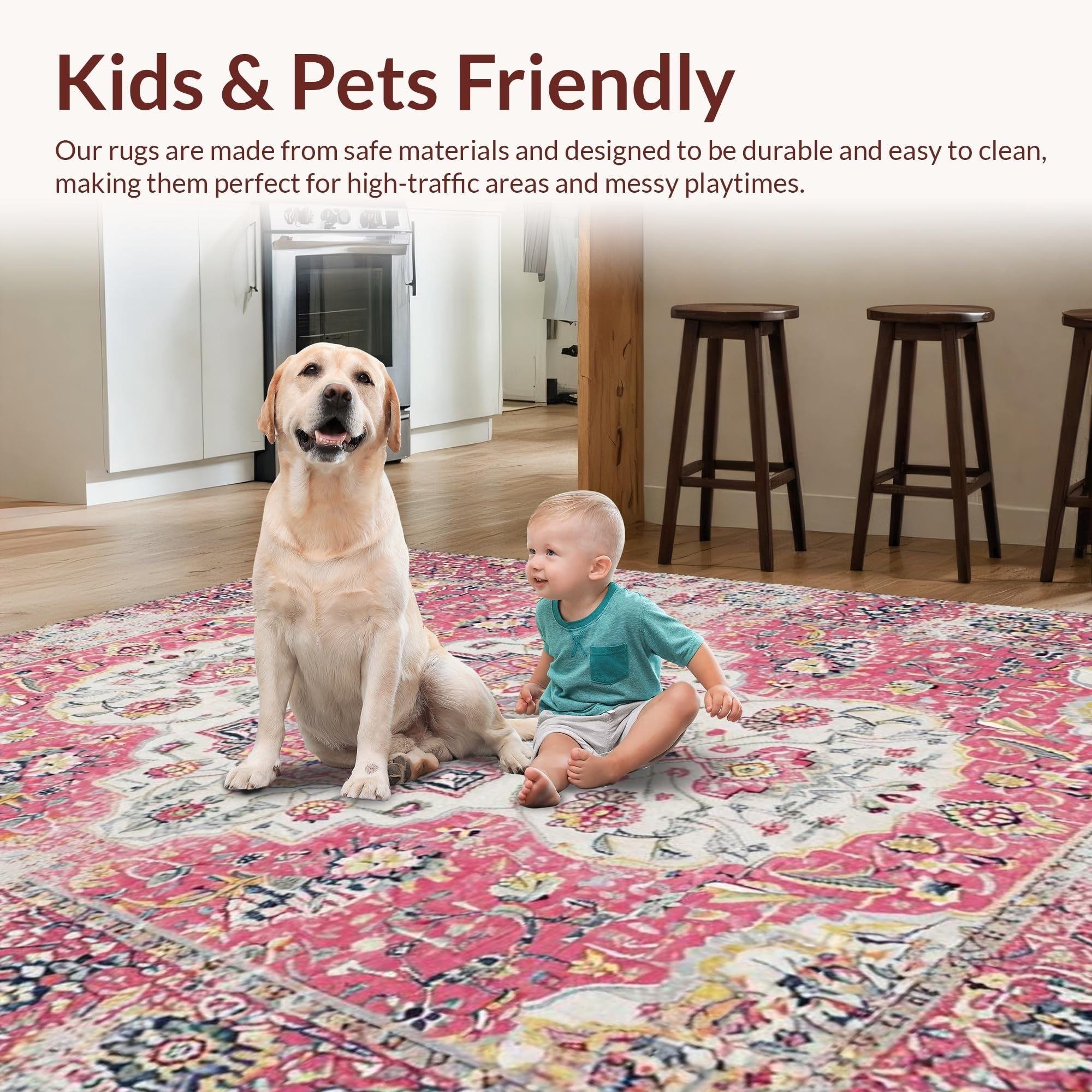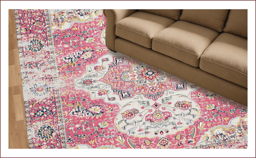 Ultra Soft Area Rug, Non Slip, Stain Resistant, Washable Area Rugs for Living Room, Bedroom, Soft Pastel Distressed Motif(Pink) Overview: