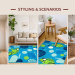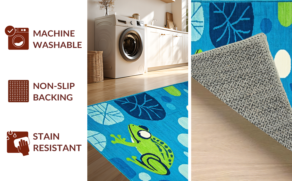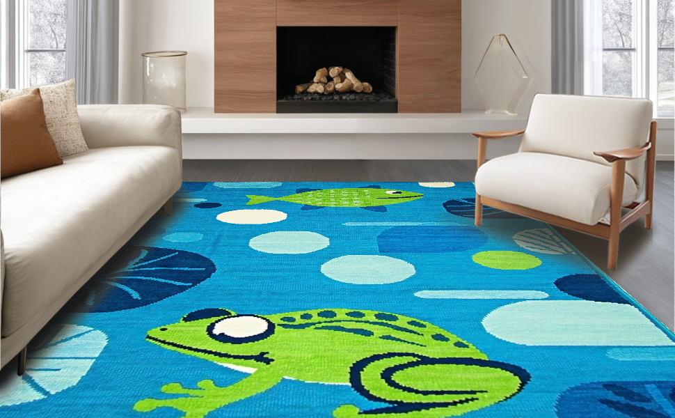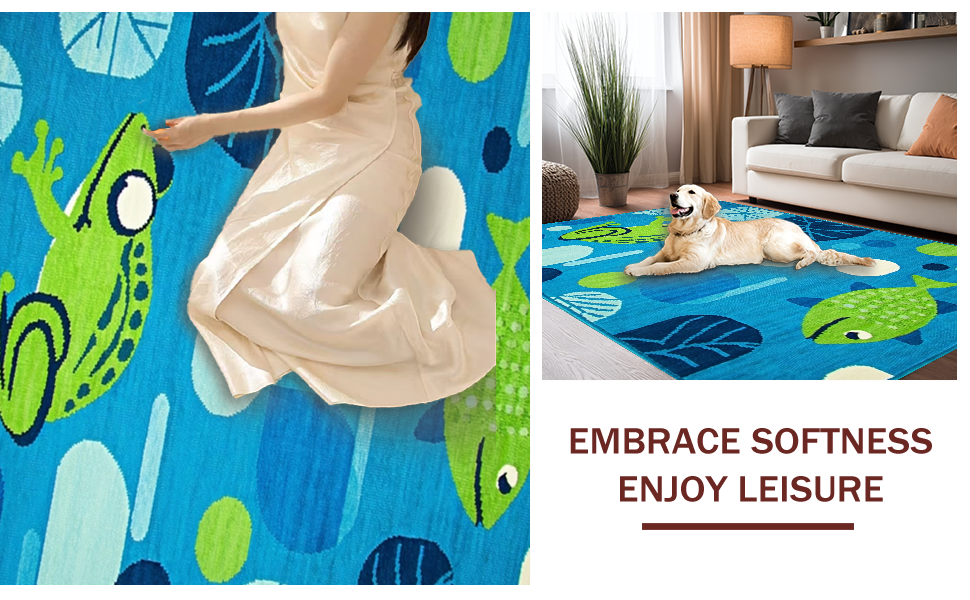 Ultra Soft Area Rug, Non Slip, Stain Resistant, Washable Area Rugs for Living Room, Bedroom, Soft Pastel Frog Patterned Mat(Blue) Overview: