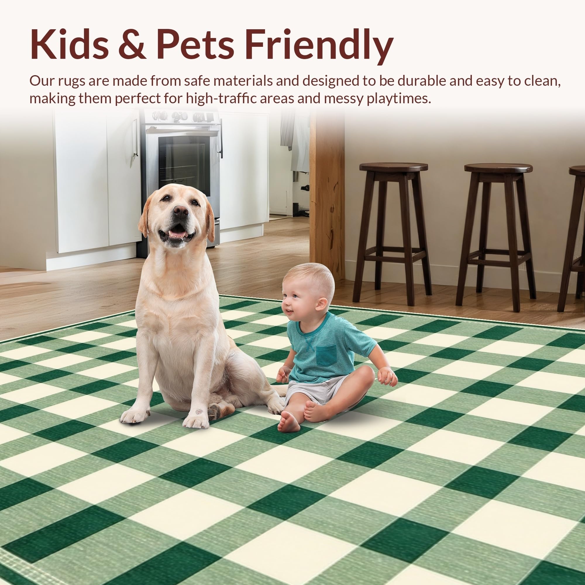 Ultra Soft Area Rug, Non Slip, Stain Resistant, Washable Area Rugs for Living Room, Bedroom, Soft Pastel Round Patterned Accent(Green) Overview: