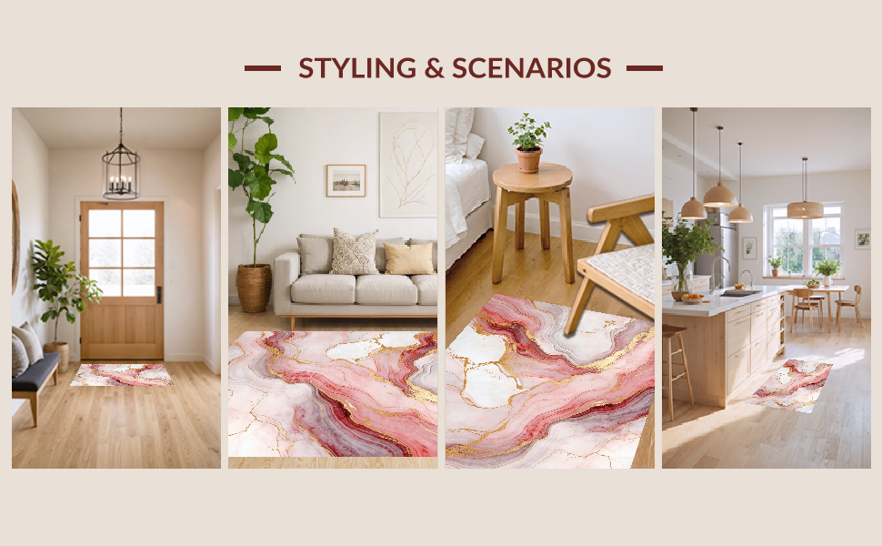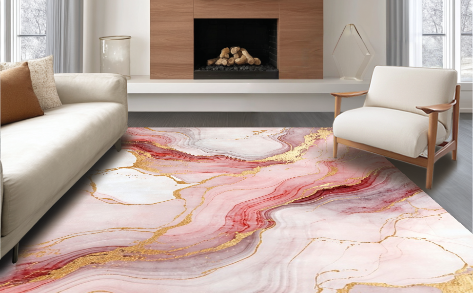 Ultra Soft Area Rug, Non Slip, Stain Resistant, Washable Area Rugs for Living Room, Bedroom, Soft Pastel Swirl Design(Pink) Overview: