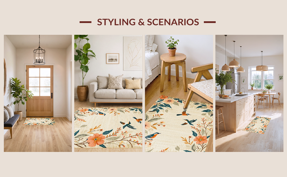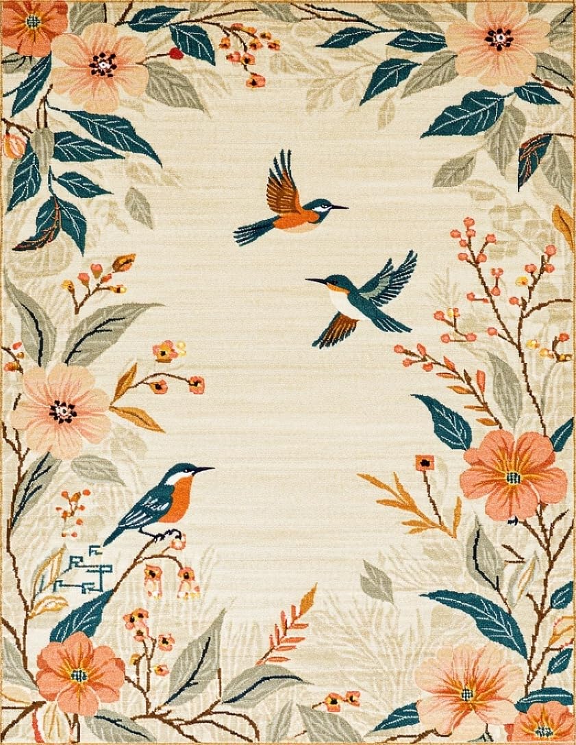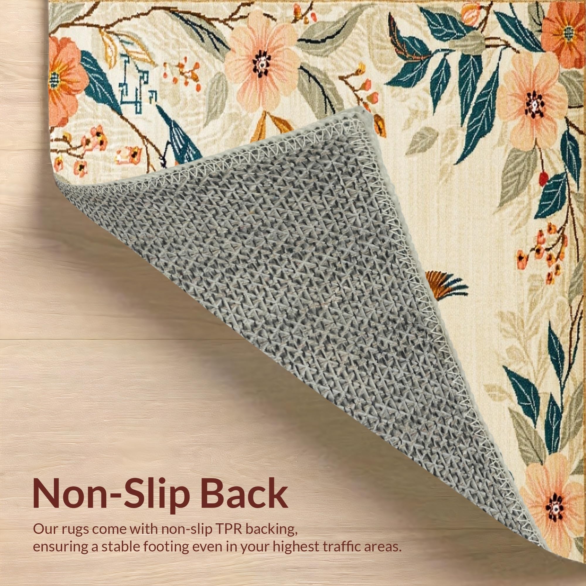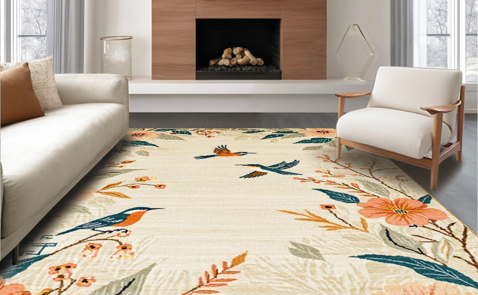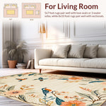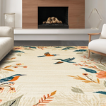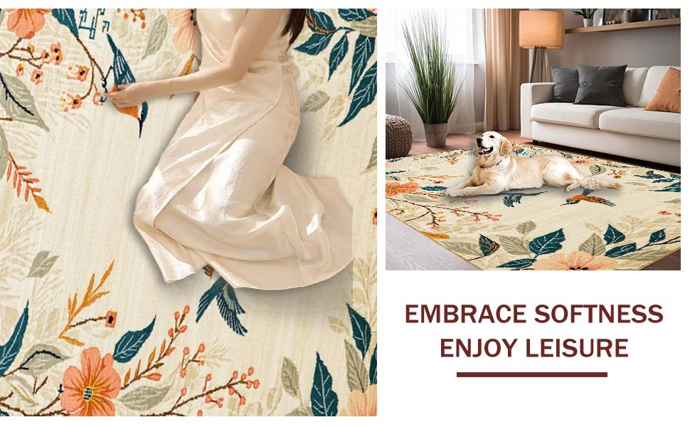 Ultra Soft Area Rug, Non Slip, Stain Resistant, Washable Area Rugs for Living Room, Bedroom, Soft Pastel Tropical Accents(Ivory) Overview: