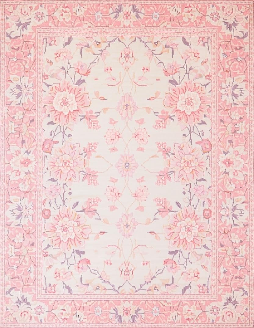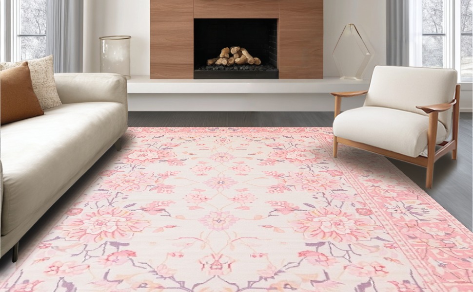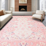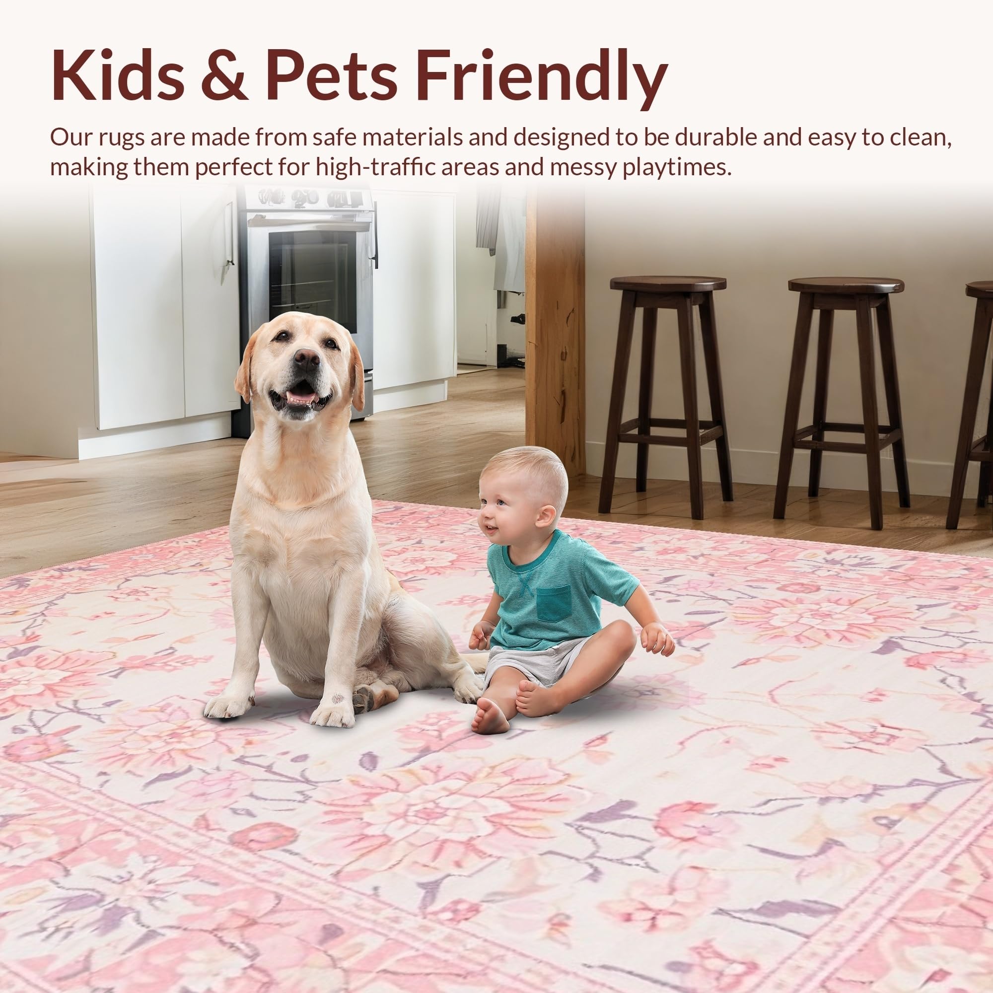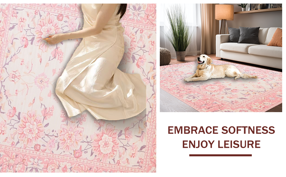 Ultra Soft Area Rug, Non Slip, Stain Resistant, Washable Area Rugs for Living Room, Bedroom, Soft Retro Flower Motif(Pink) Overview: