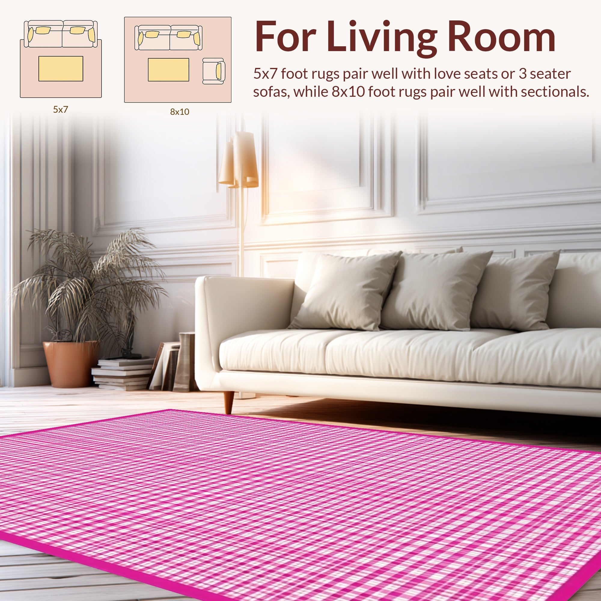 Flatwoven High Traffic Area Rug, Romantic Motif, Non Slip, Stain Resistant, Washable Area Rugs for Living Room, Bedroom (Pink) Overview: