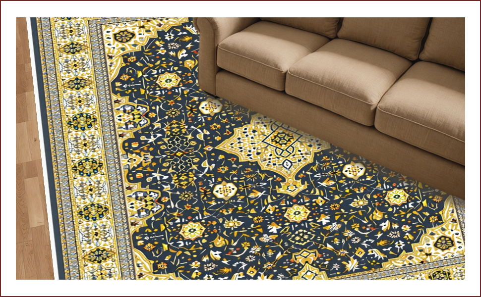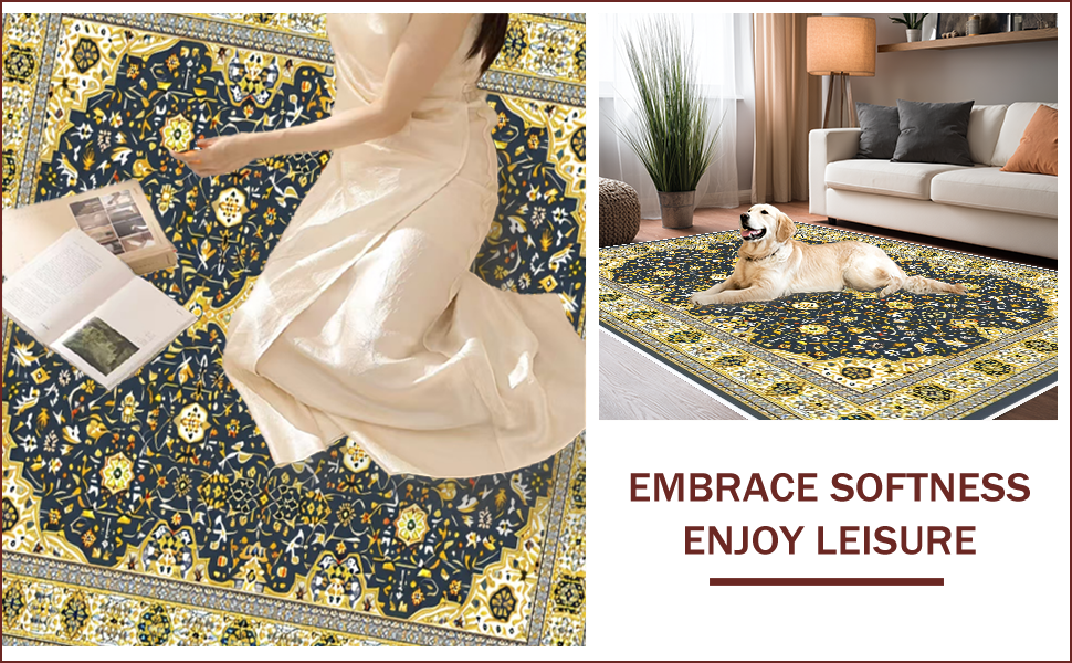Ultra Soft Area Rug, Non Slip, Stain Resistant, Washable Area Rugs for Living Room, Bedroom, Soft Velvet Arabic Meditation Mat(Blue) Overview: