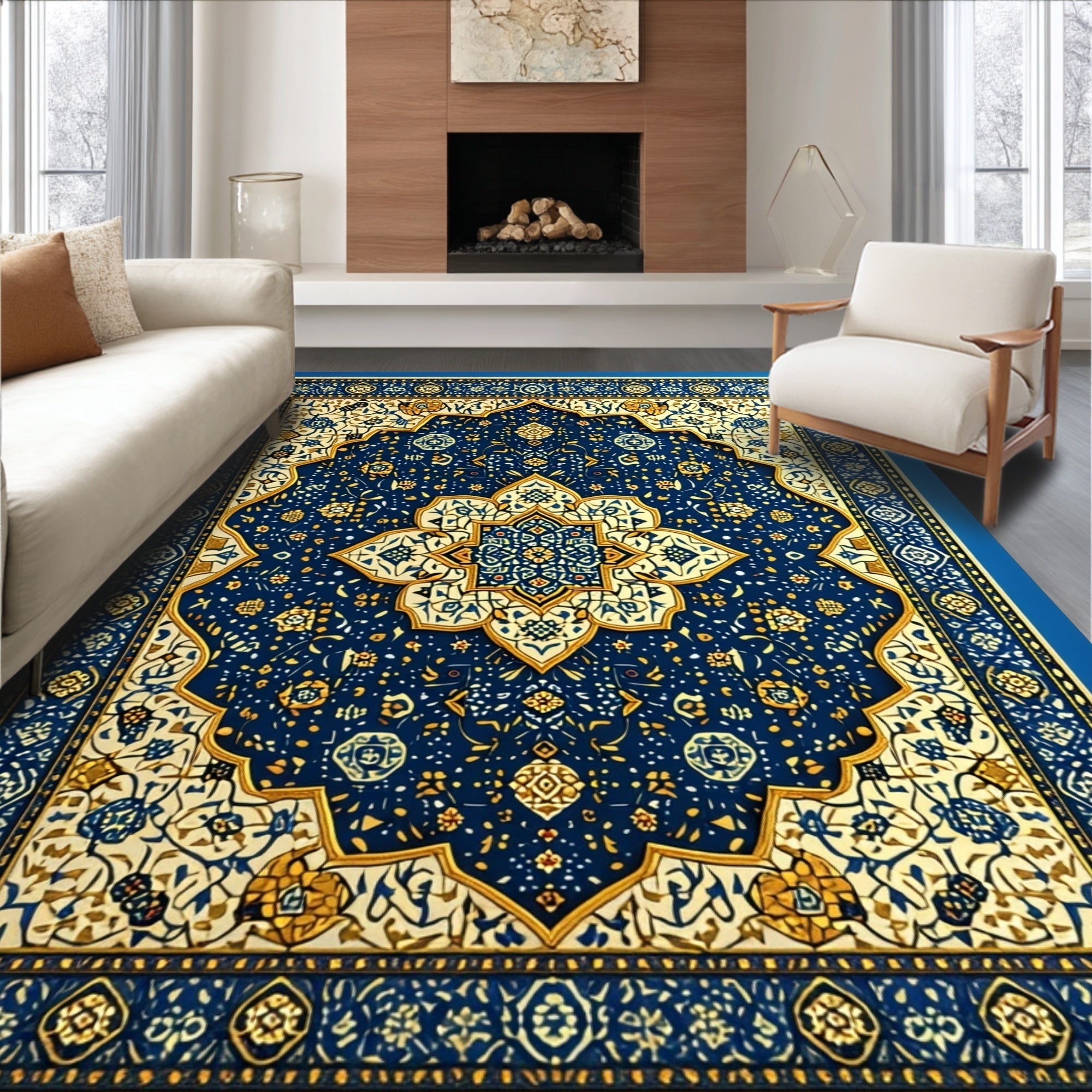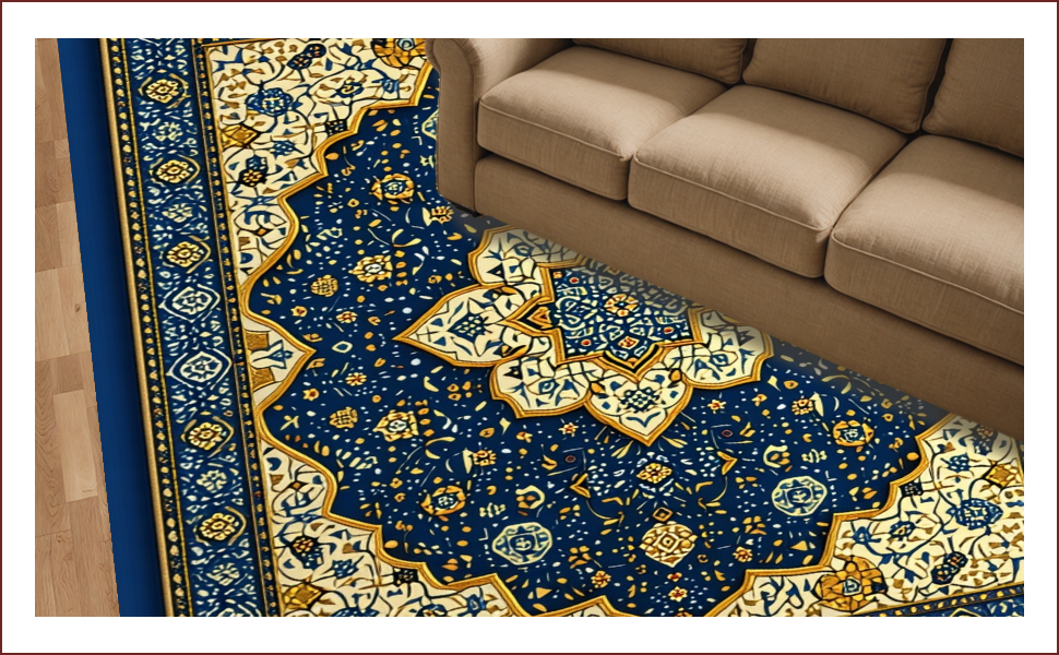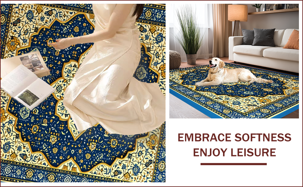 Ultra Soft Area Rug, Non Slip, Stain Resistant, Washable Area Rugs for Living Room, Bedroom, Soft Velvet Islamic Prayer Meditation(Blue) Overview: