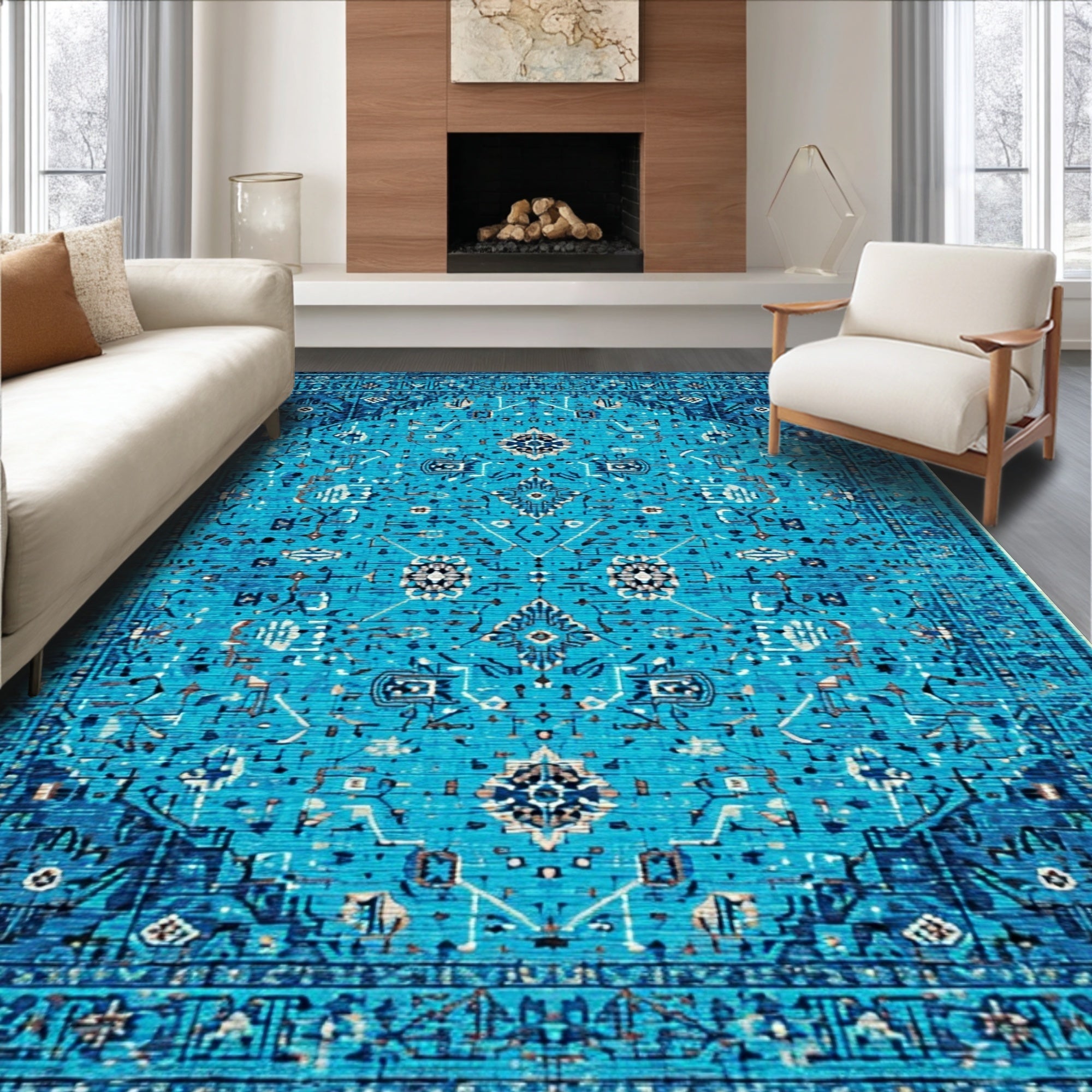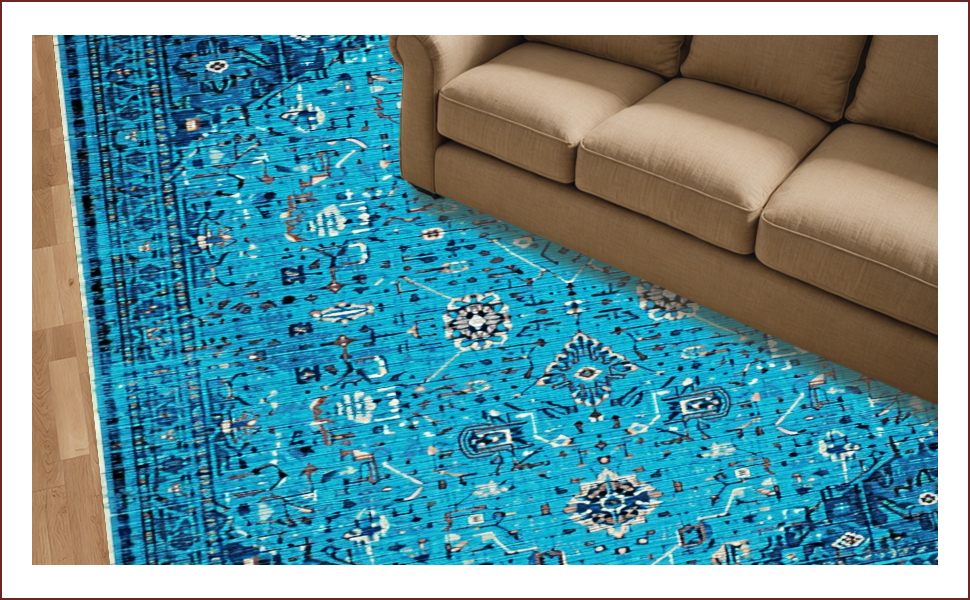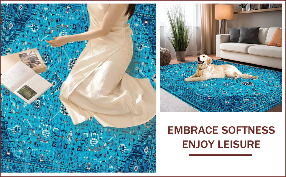 Ultra Soft Area Rug, Non Slip, Stain Resistant, Washable Area Rugs for Living Room, Bedroom, Soft Vintage Distressed Living Room Rug(Blue) Overview: