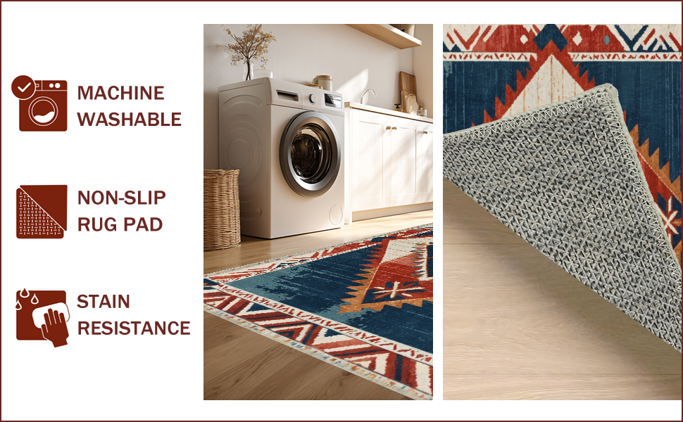 Ultra Soft Area Rug, Non Slip, Stain Resistant, Washable Area Rugs for Living Room, Bedroom, Soft Vintage Southwestern Reading Nook(Red) Overview: