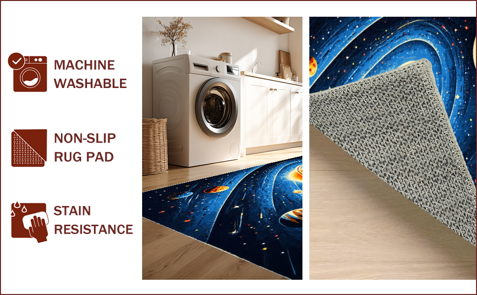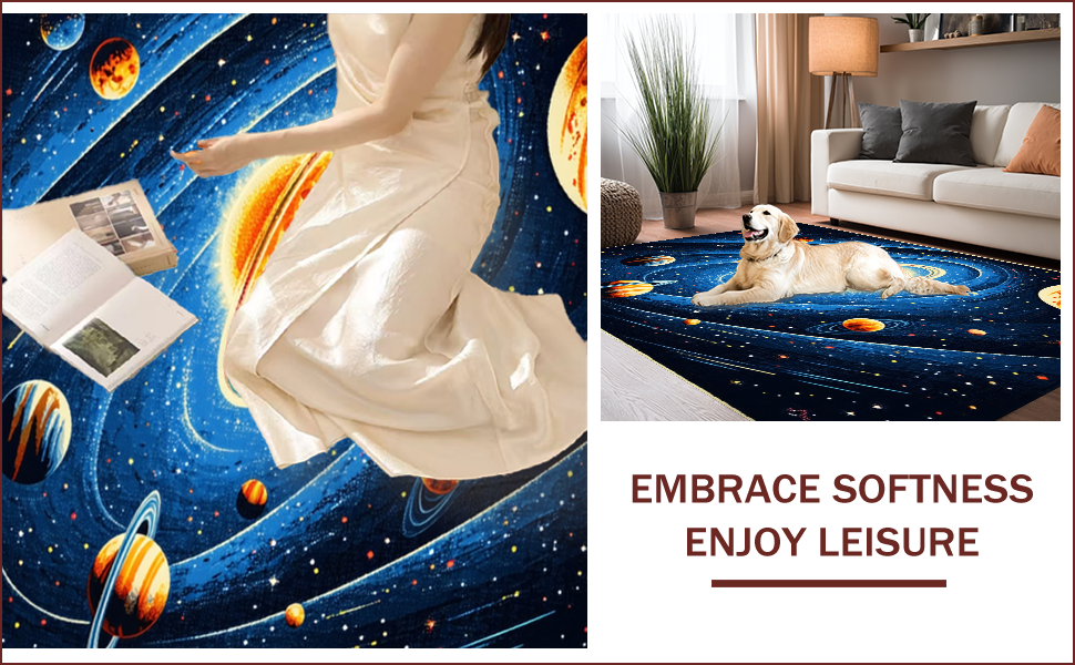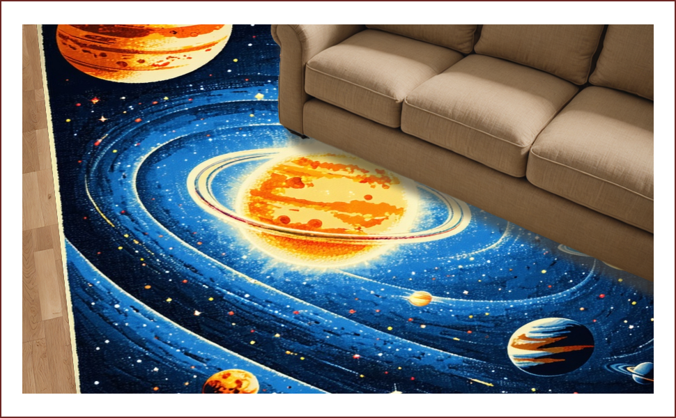 Ultra Soft Area Rug, Non Slip, Stain Resistant, Washable Area Rugs for Living Room, Bedroom, Solar System Planets Playmat(Blue) Overview: