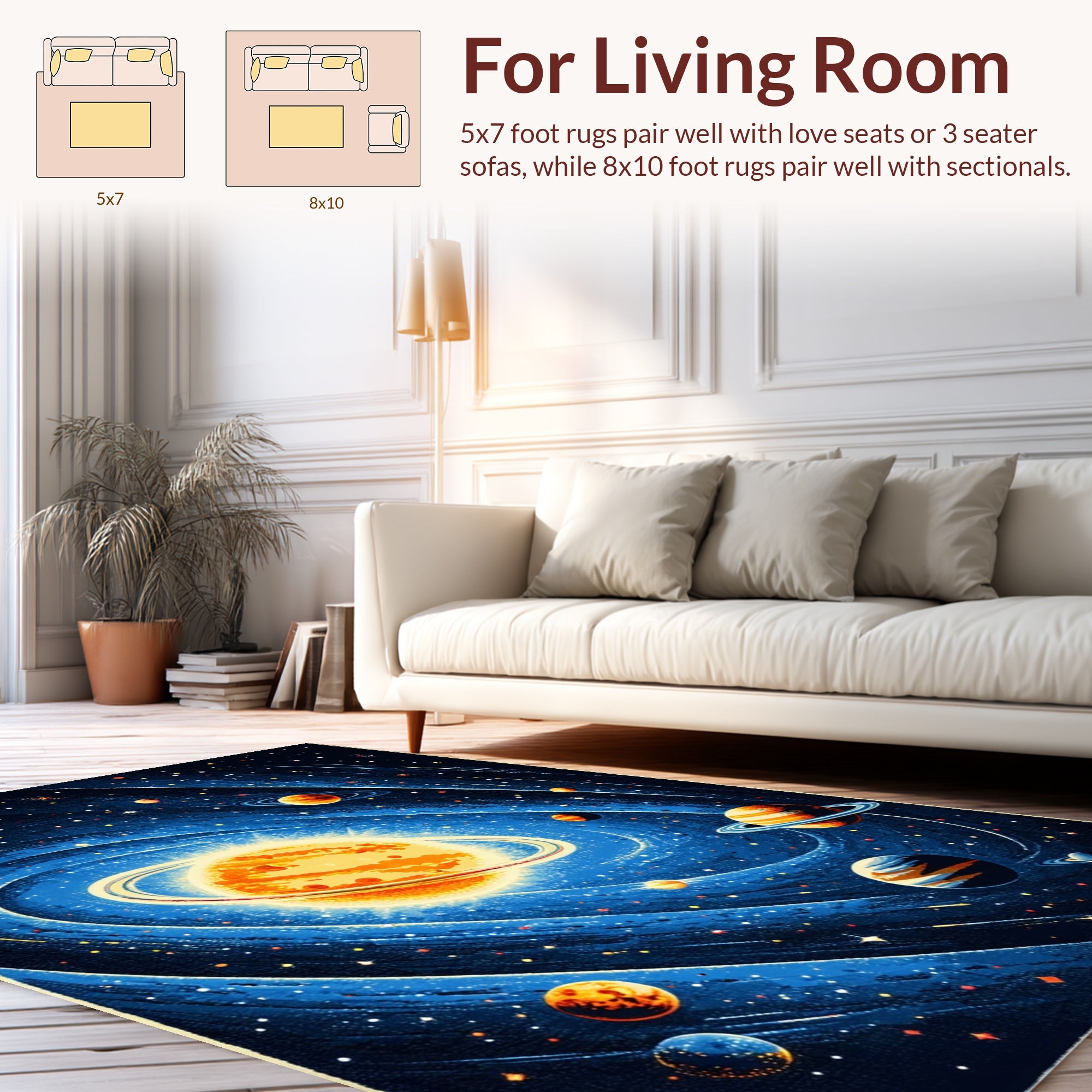 Flatwoven High Traffic Area Rug, Solar System Planets Playmat, Non Slip, Stain Resistant, Washable Area Rugs for Living Room, Bedroom (Blue) Overview: