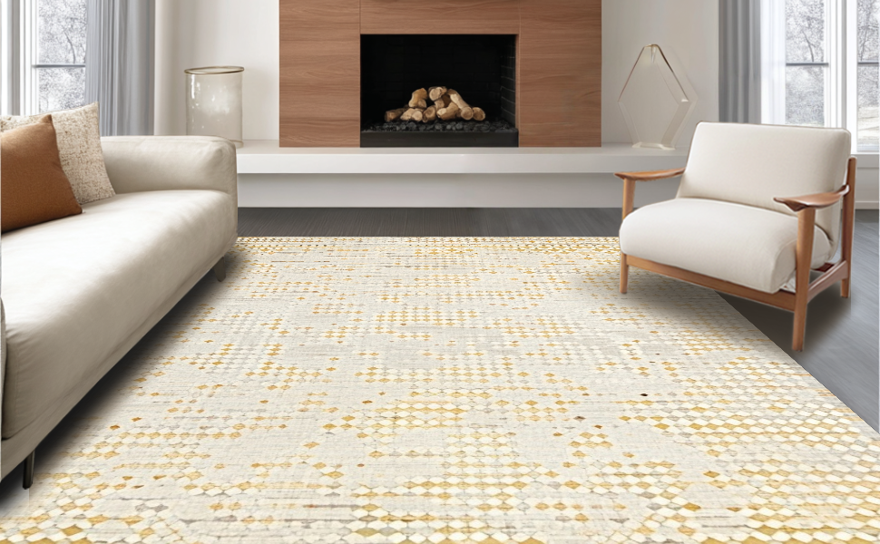 Ultra Soft Area Rug, Non Slip, Stain Resistant, Washable Area Rugs for Living Room, Bedroom, Sophisticated Abstract Beige Pattern(Beige) Overview: