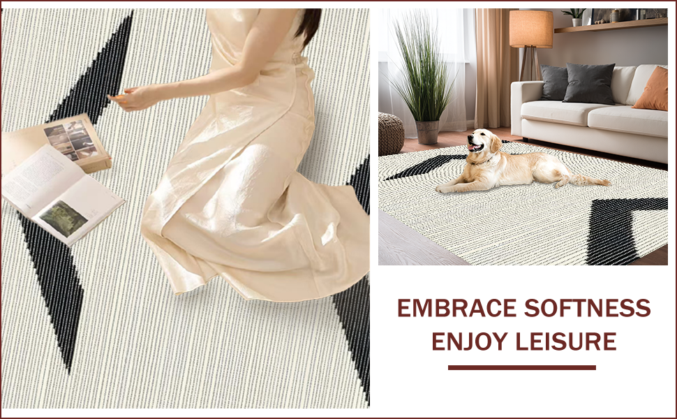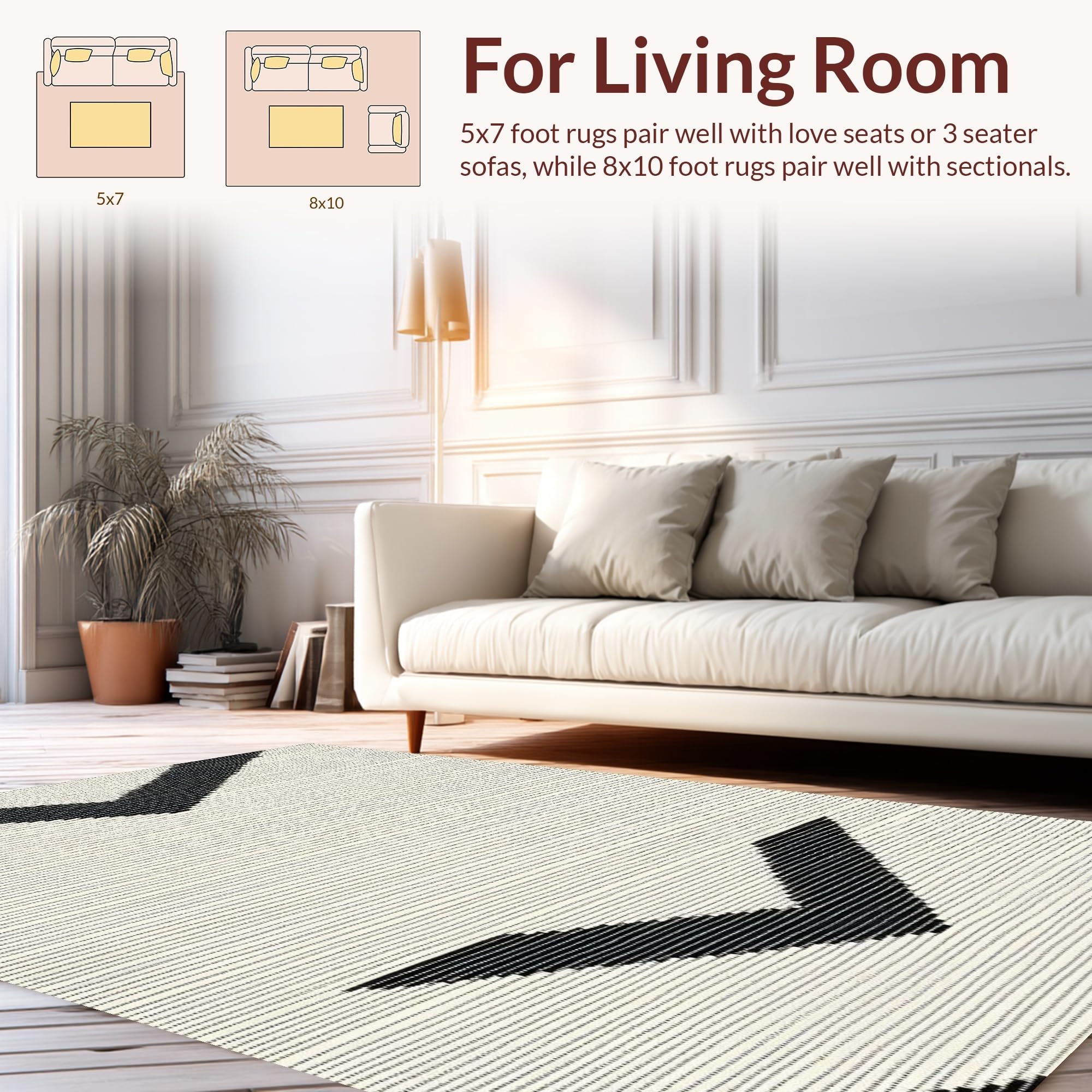 Ultra Soft Area Rug, Non Slip, Stain Resistant, Washable Area Rugs for Living Room, Bedroom, Sophisticated Abstract Black and Ivory(Black) Overview: