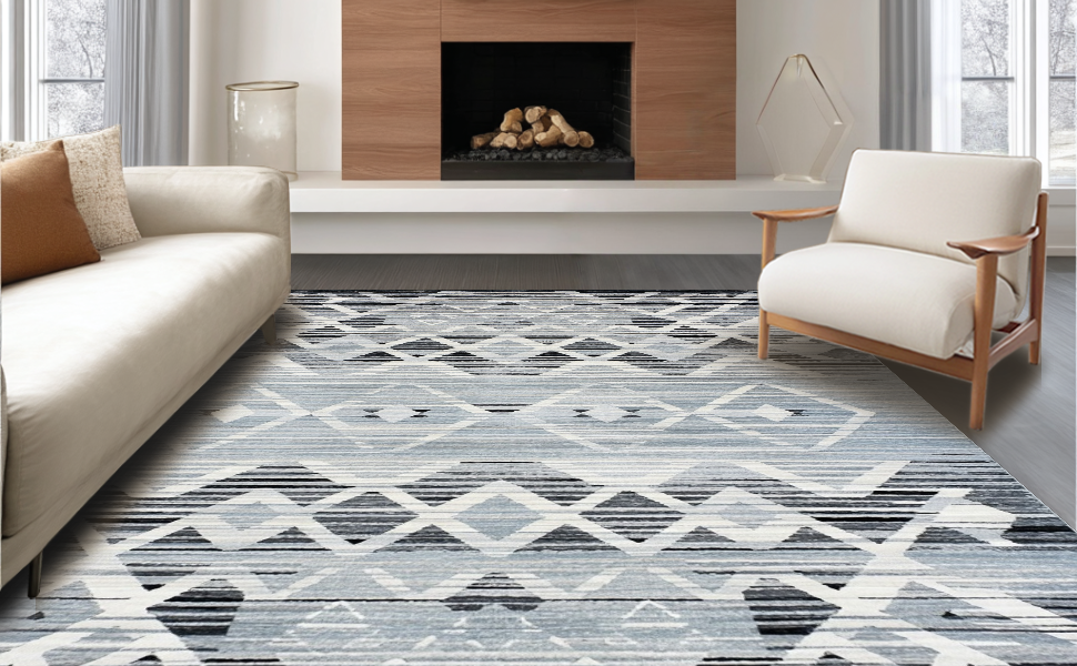 Ultra Soft Area Rug, Non Slip, Stain Resistant, Washable Area Rugs for Living Room, Bedroom, Sophisticated Abstract Diamond Composition(Gray) Overview: