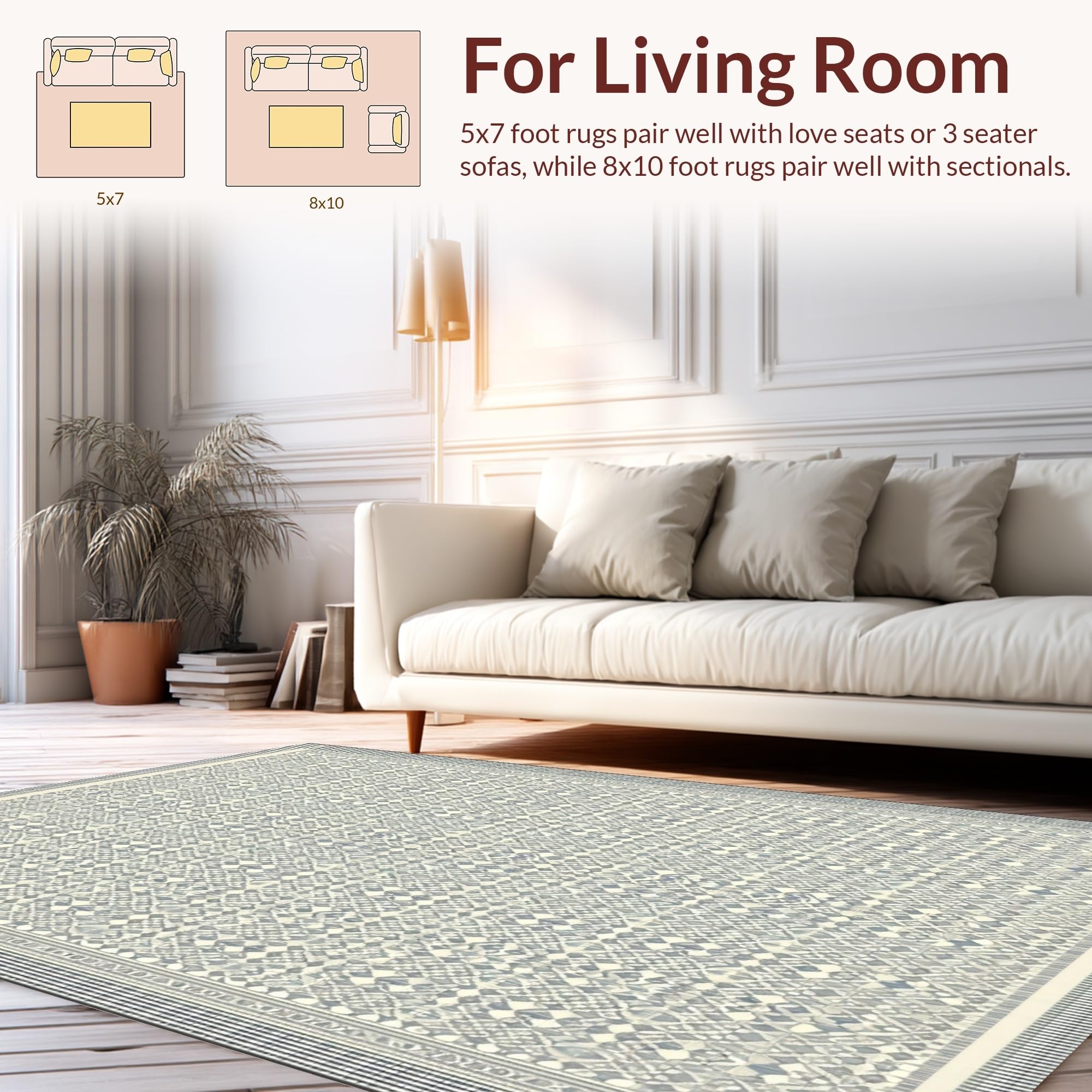 Ultra Soft Area Rug, Non Slip, Stain Resistant, Washable Area Rugs for Living Room, Bedroom, Sophisticated Abstract Diamond Motif(Beige) Overview: