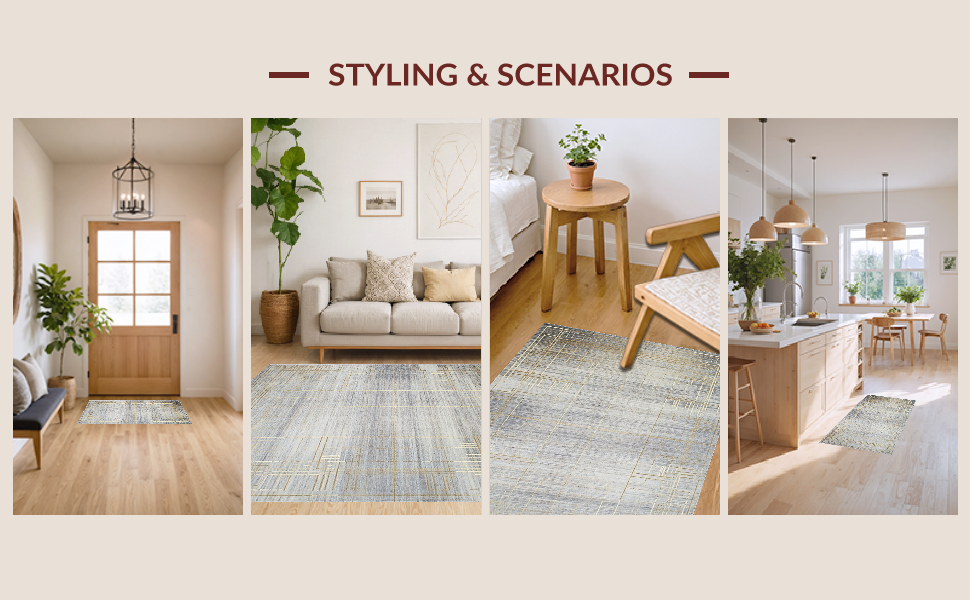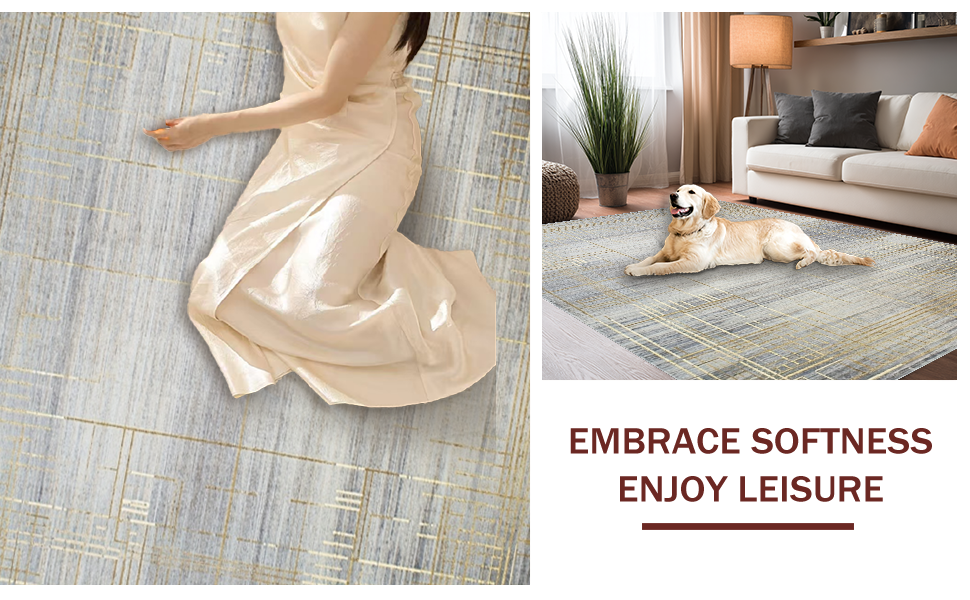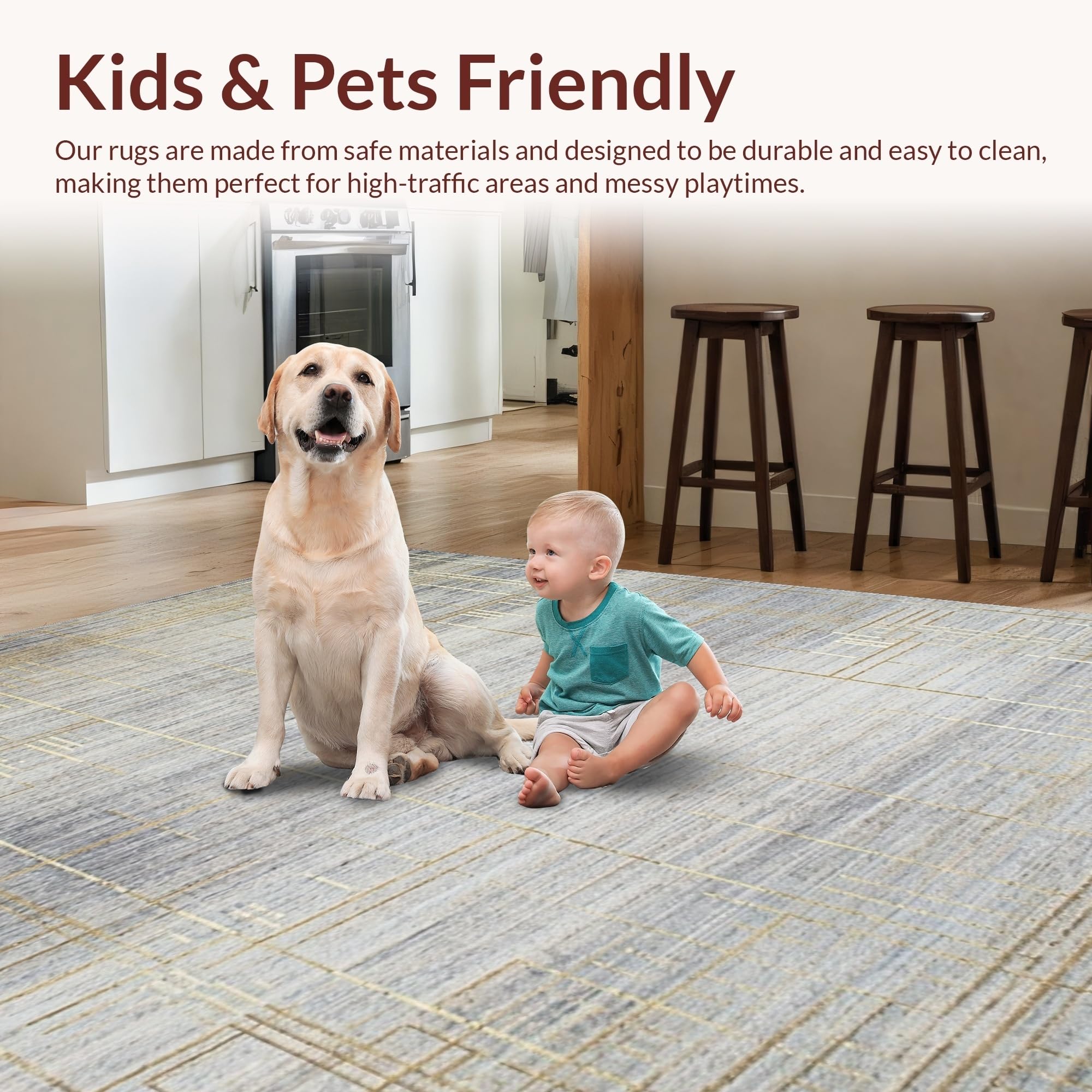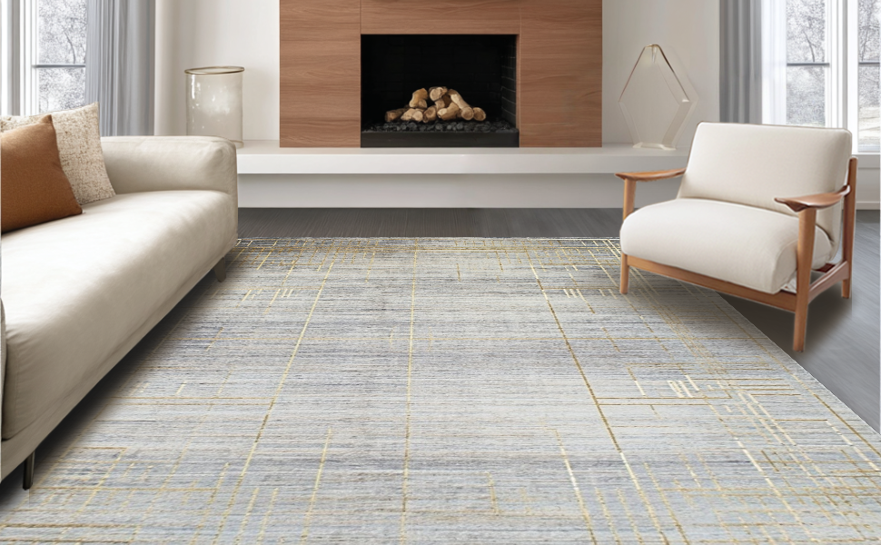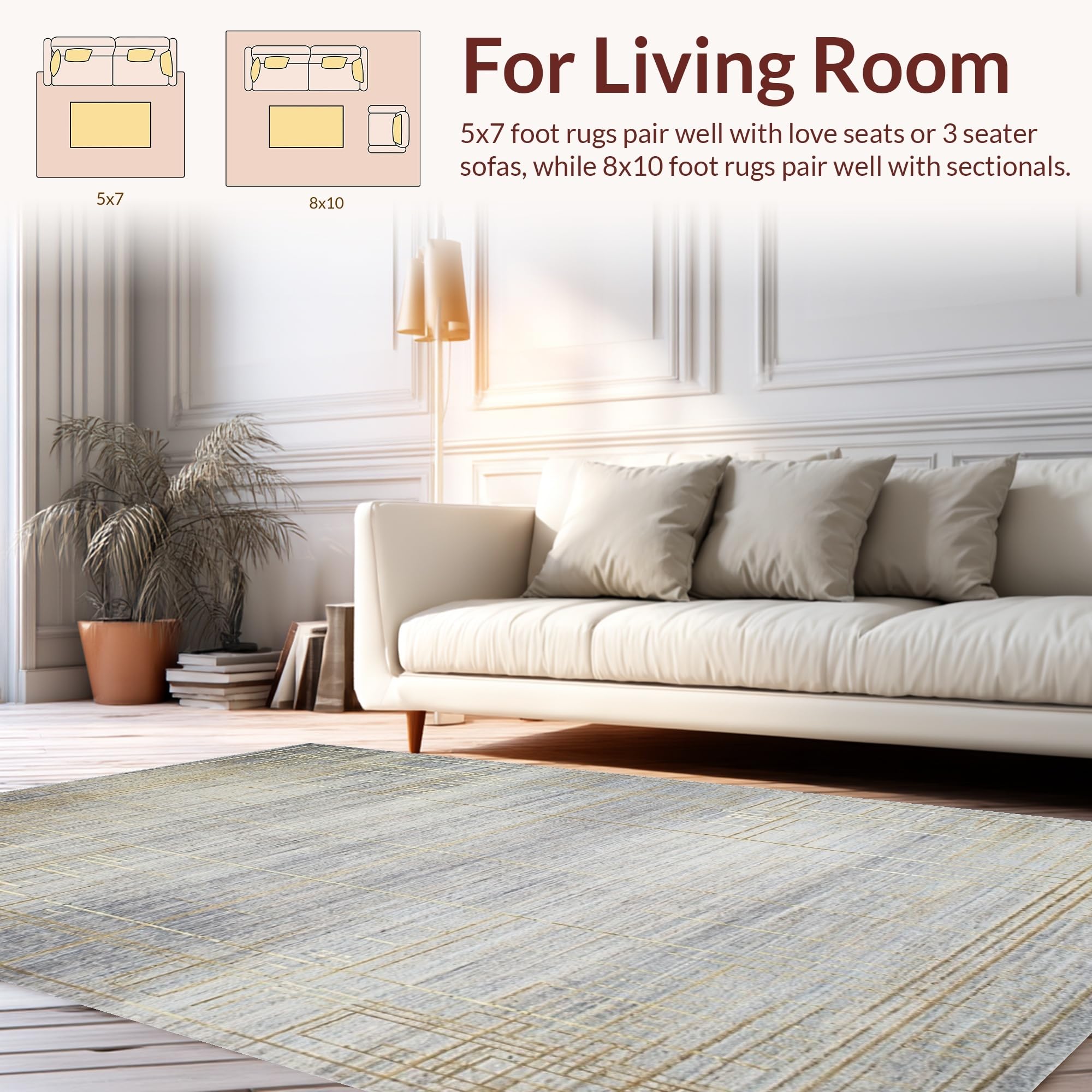 Ultra Soft Area Rug, Non Slip, Stain Resistant, Washable Area Rugs for Living Room, Bedroom, Sophisticated Abstract Geometric Motif(Gray) Overview: