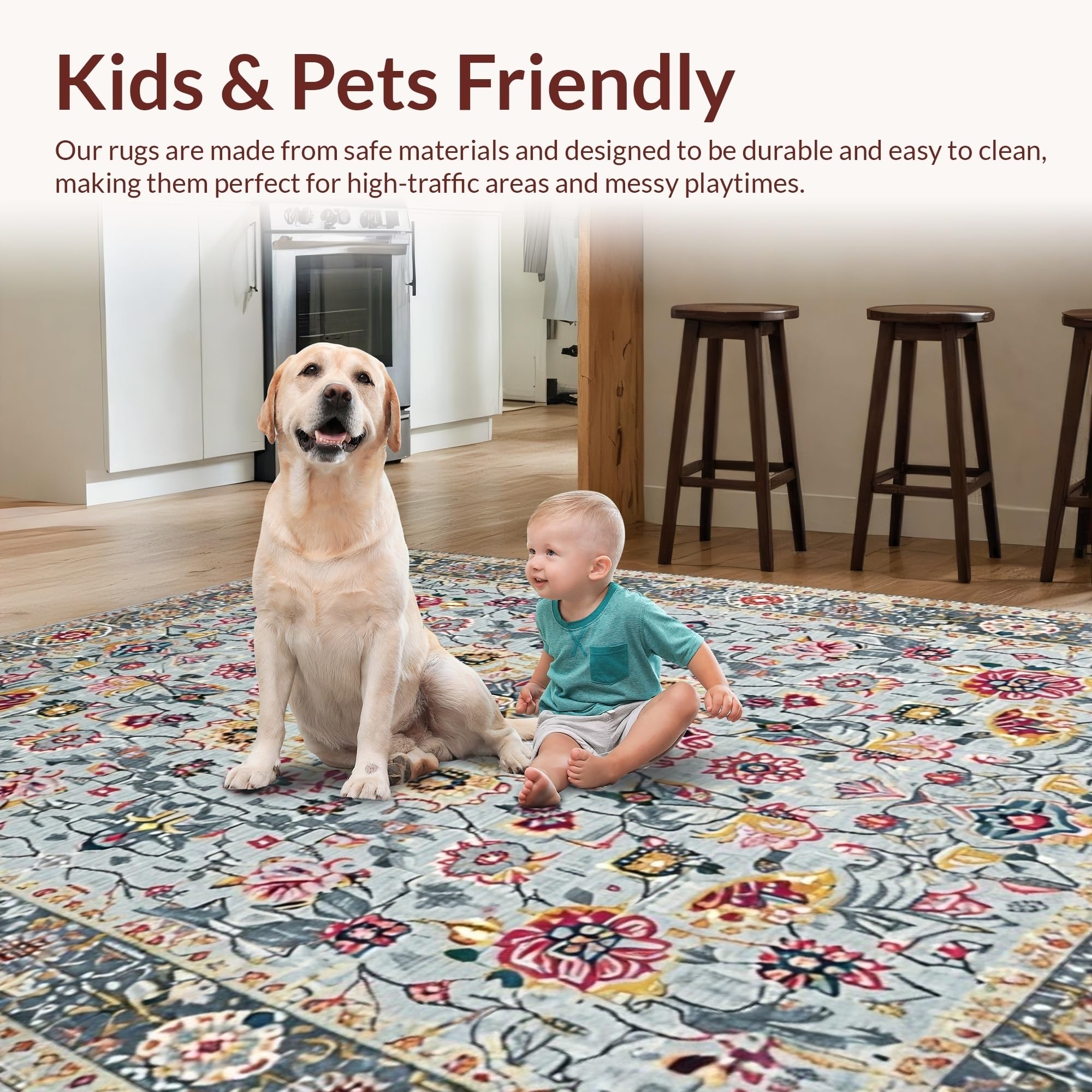 Ultra Soft Area Rug, Non Slip, Stain Resistant, Washable Area Rugs for Living Room, Bedroom, Sophisticated Abstract Geometric Style(Gray) Overview: