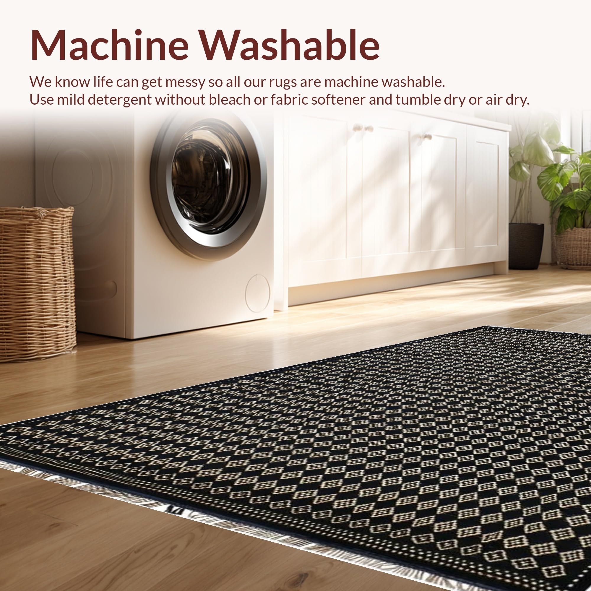 - Machine Washable: Our rugs can be easily thrown in the wash machine.