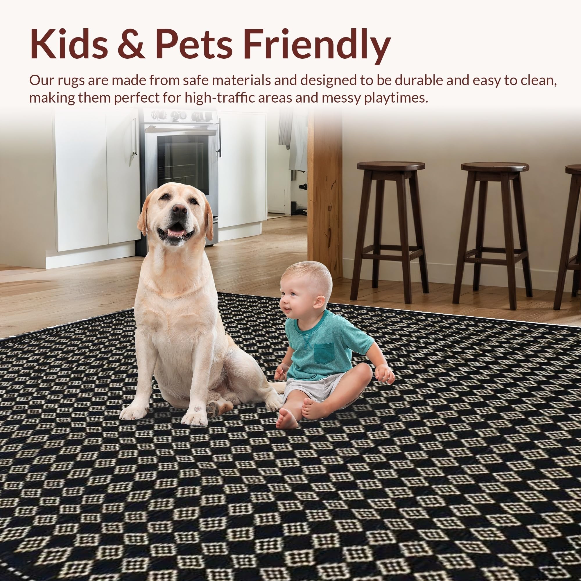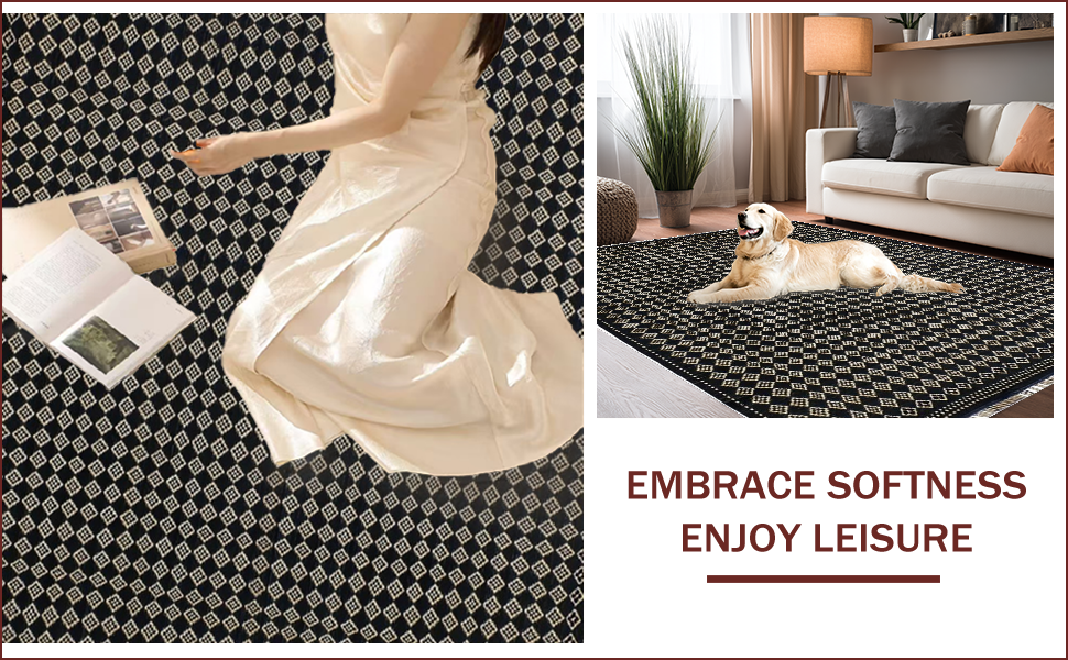 Ultra Soft Area Rug, Non Slip, Stain Resistant, Washable Area Rugs for Living Room, Bedroom, Sophisticated Abstract Trellis Design(Black) Overview: