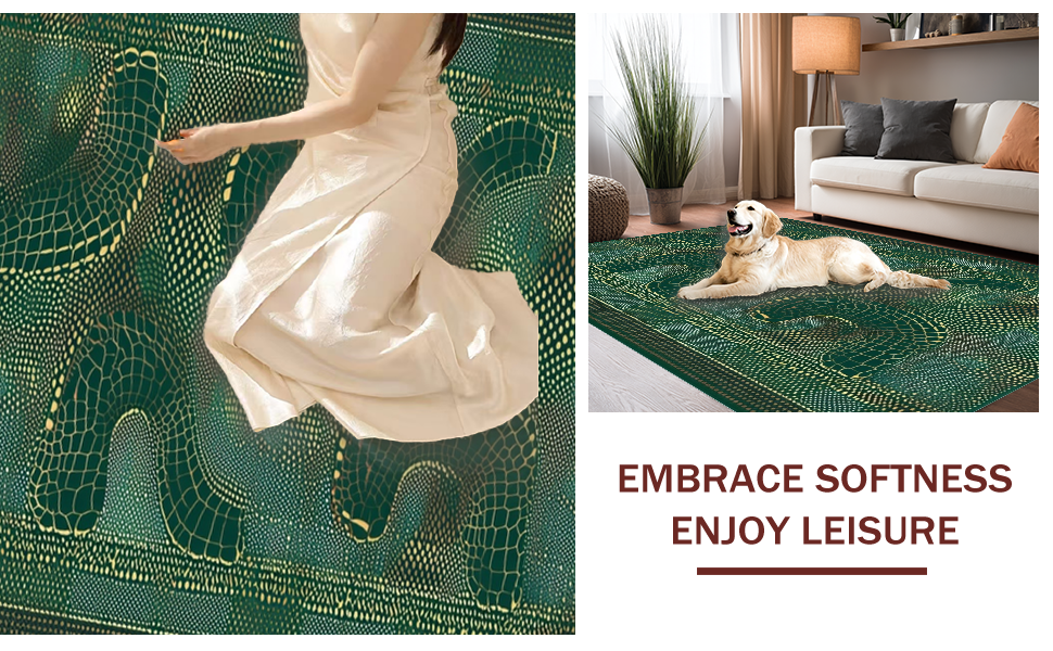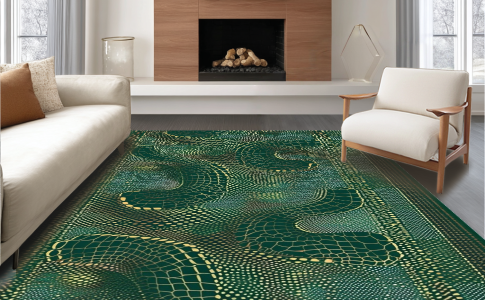 Ultra Soft Area Rug, Non Slip, Stain Resistant, Washable Area Rugs for Living Room, Bedroom, Sophisticated Animal Print Design Element(Green) Overview: