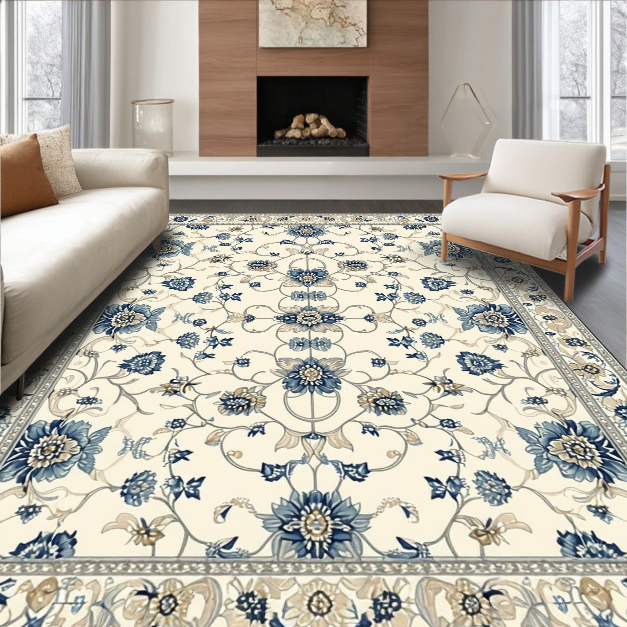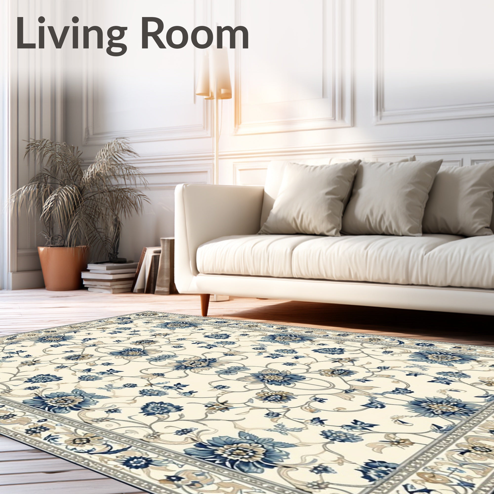 Flatwoven High Traffic Area Rug, Sophisticated Featuring Elegant Beige and Floral Designs, Non Slip, Stain Resistant, Washable Area Rugs for Living Room, Bedroom (Beige) Overview:
