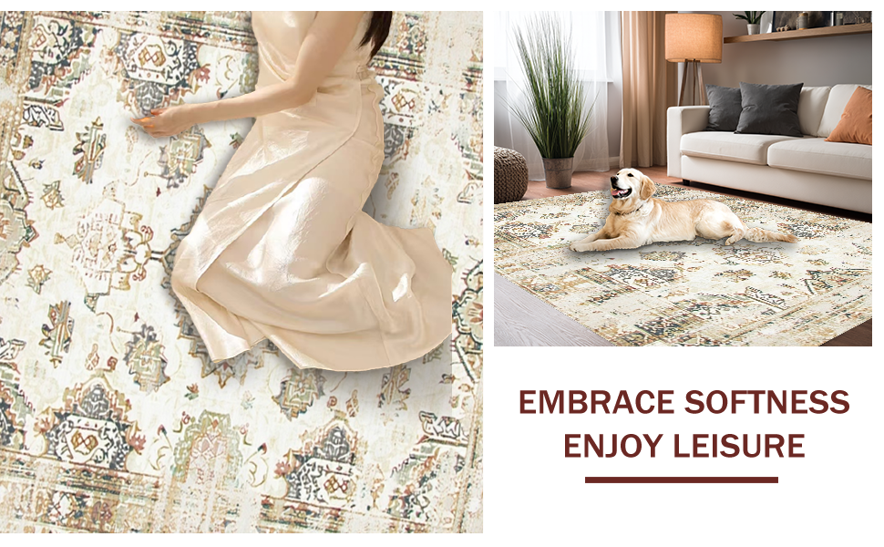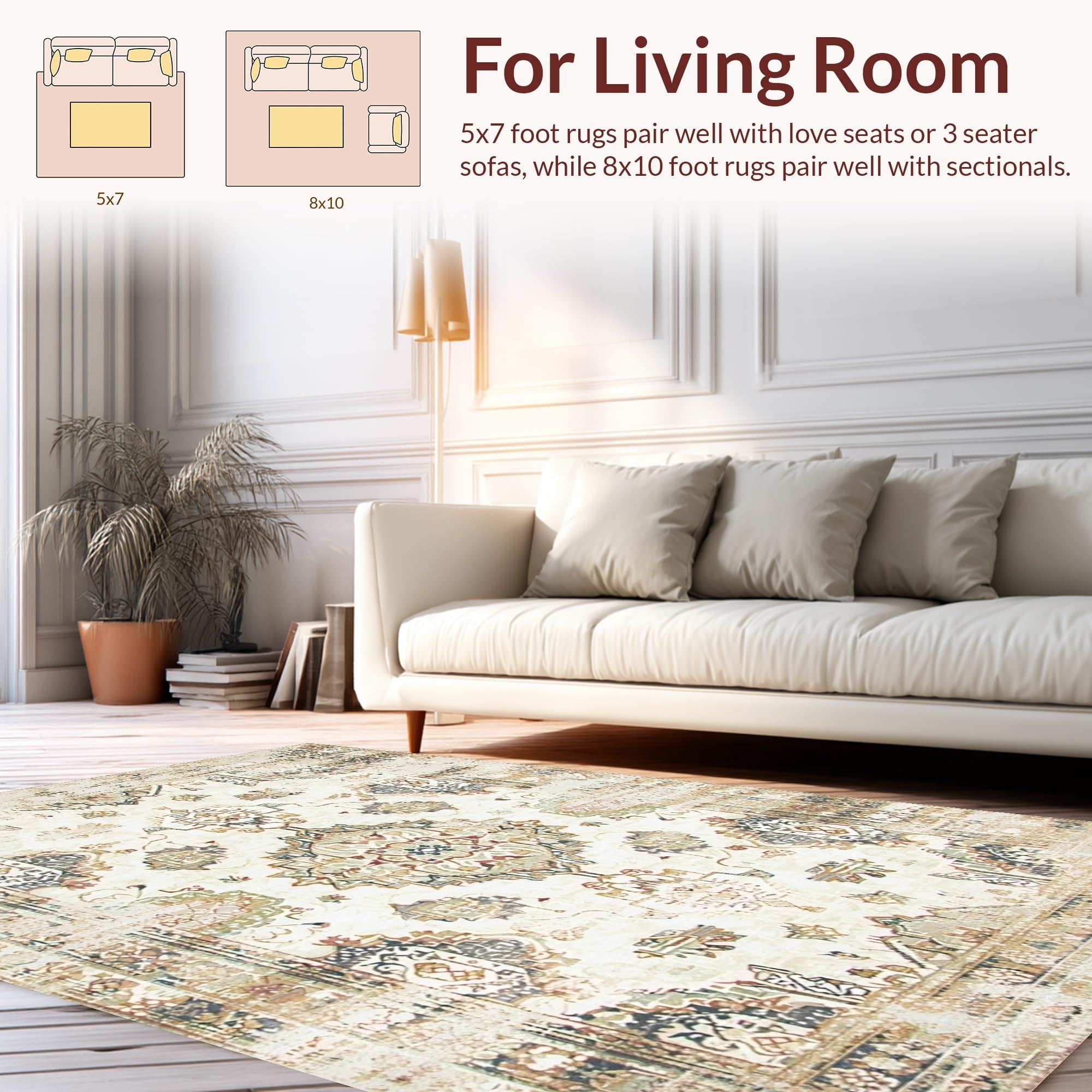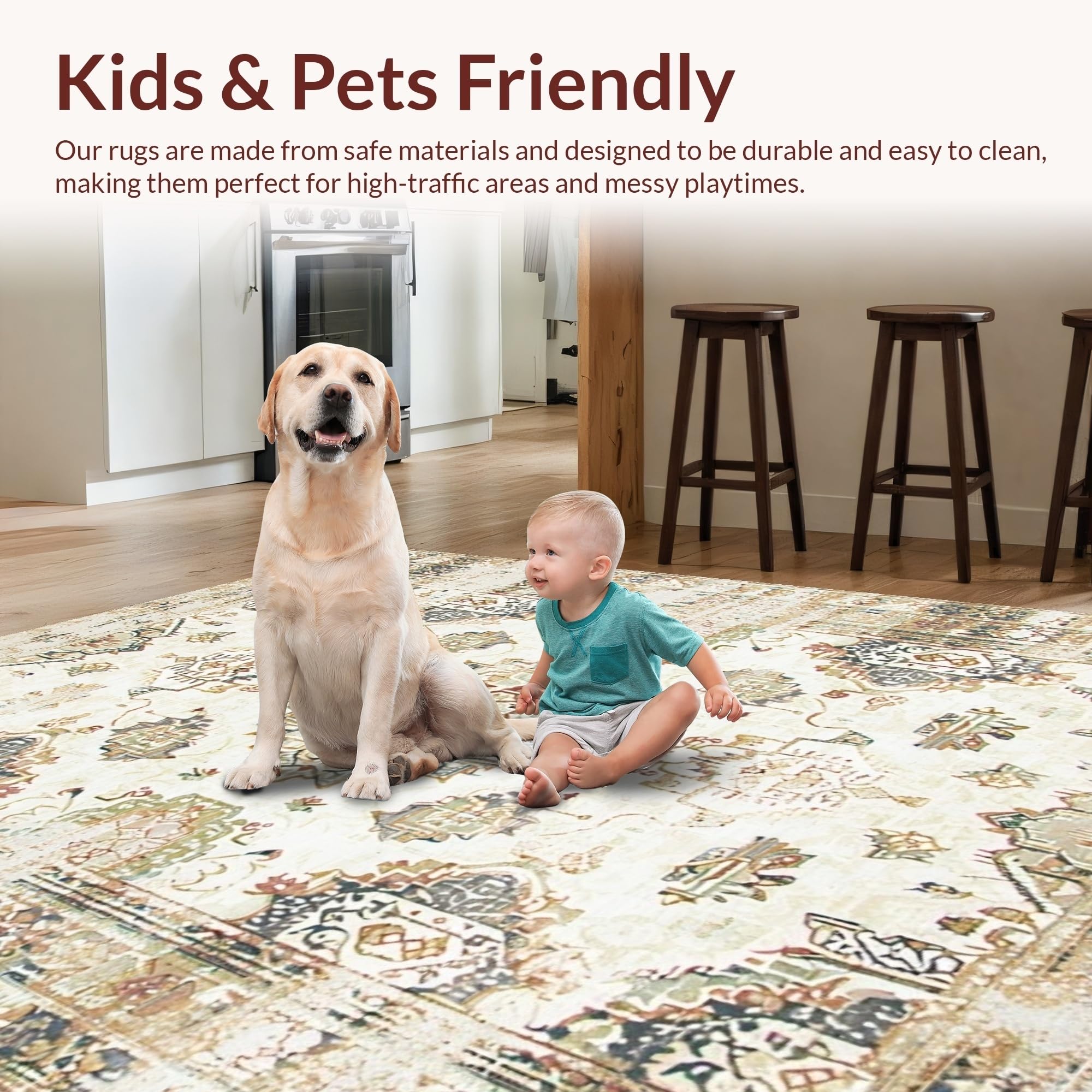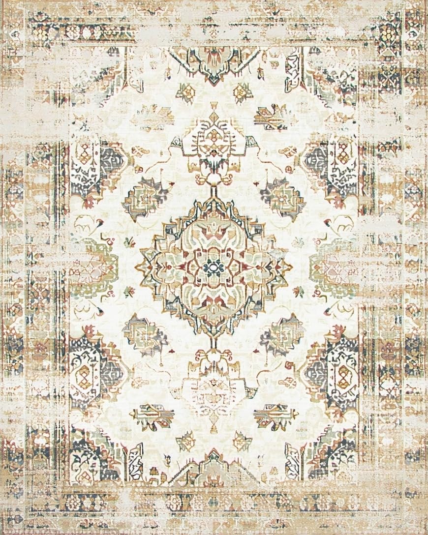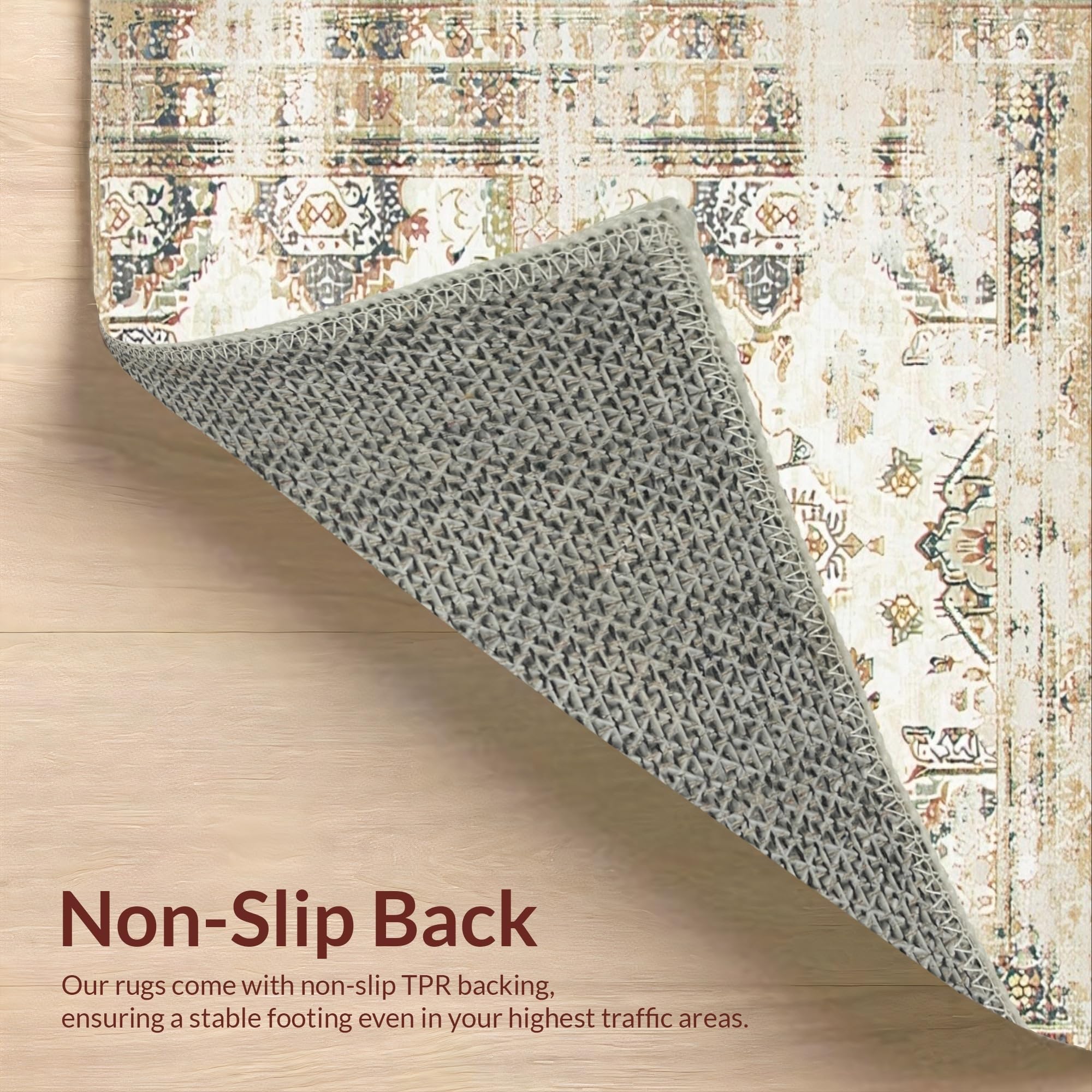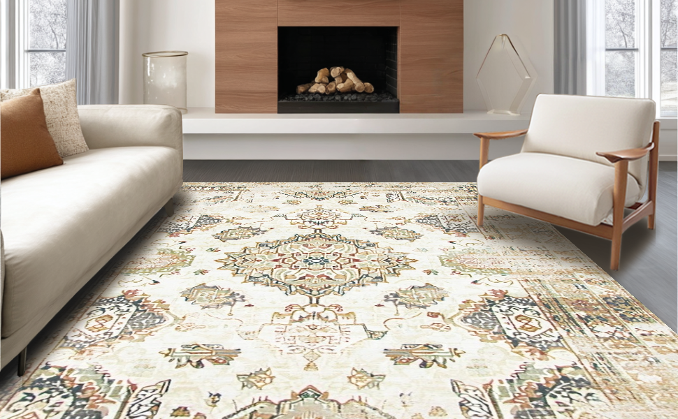 Ultra Soft Area Rug, Non Slip, Stain Resistant, Washable Area Rugs for Living Room, Bedroom, Sophisticated Artful Tiled Configuration(Beige) Overview: