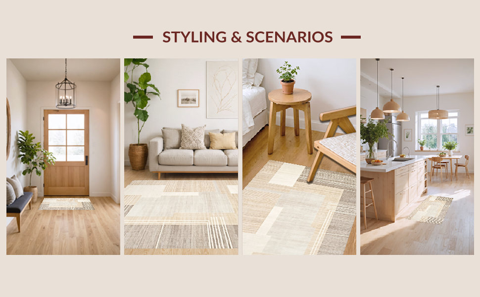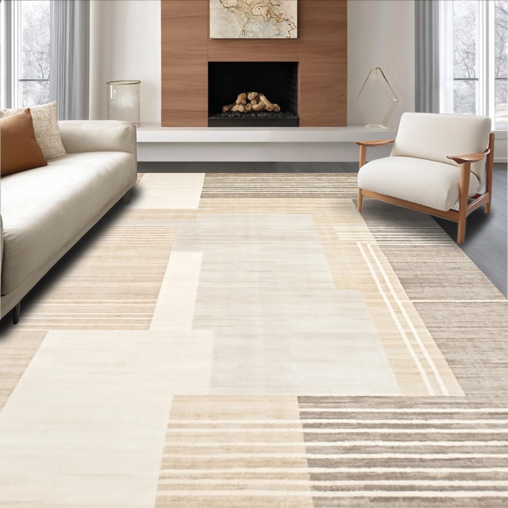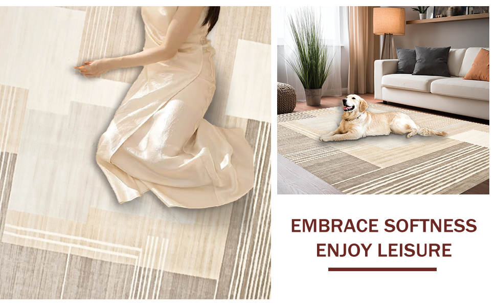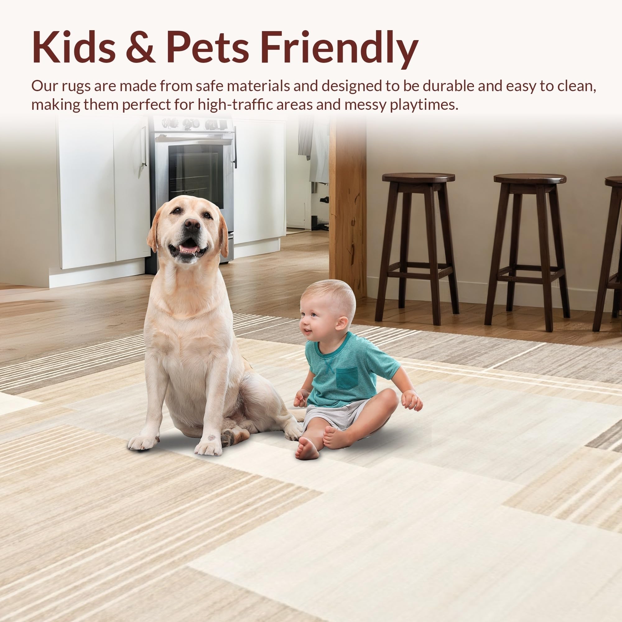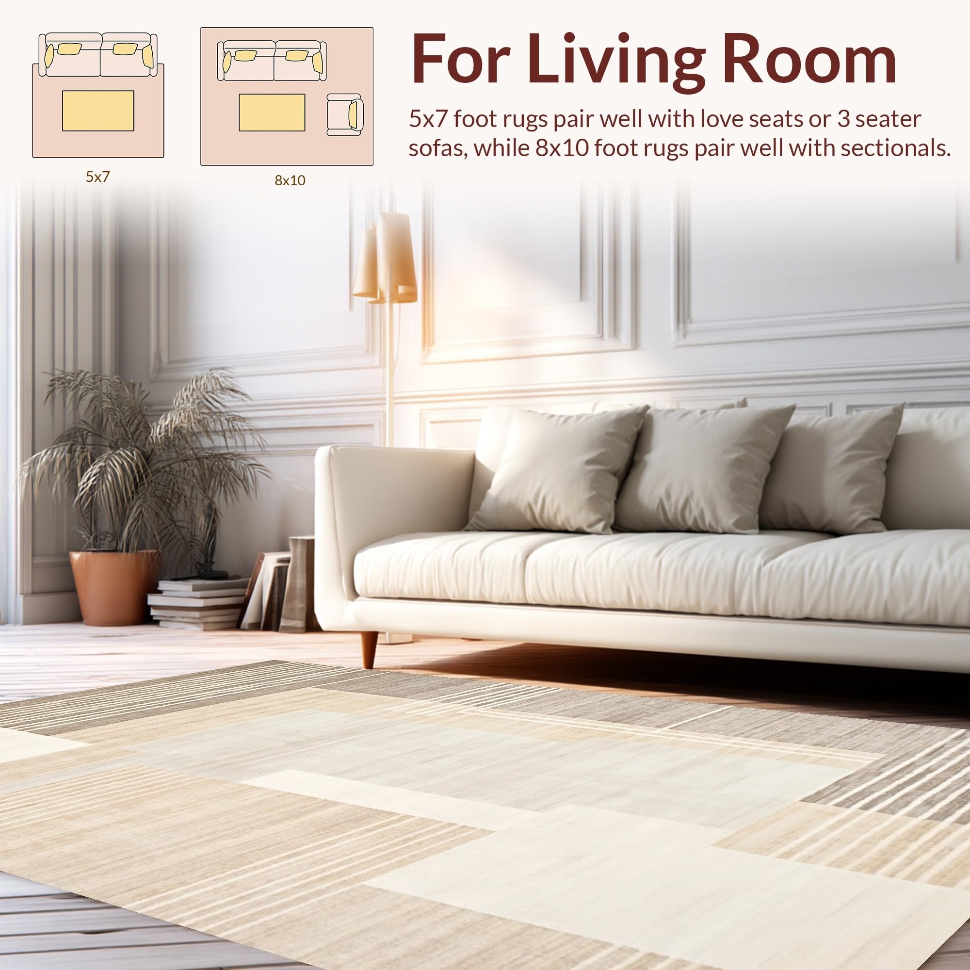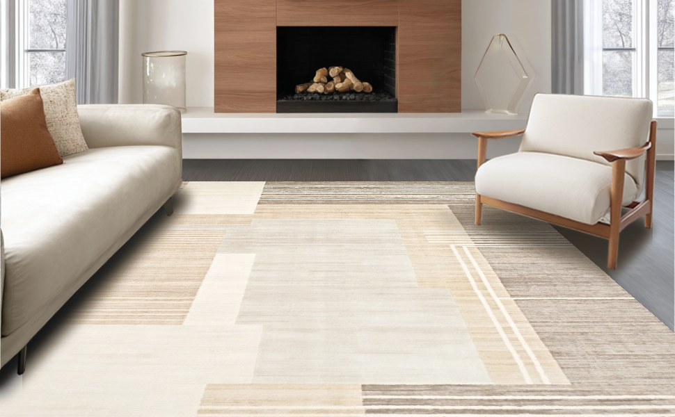 Ultra Soft Area Rug, Non Slip, Stain Resistant, Washable Area Rugs for Living Room, Bedroom, Sophisticated Beige Artful Arrangement(Beige) Overview:
