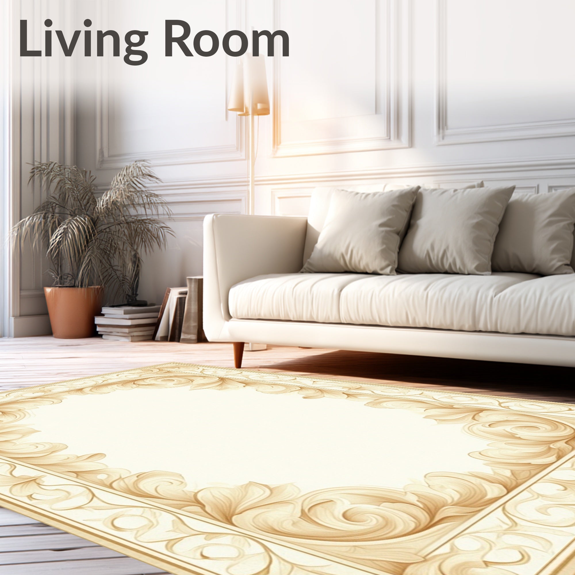 Flatwoven High Traffic Area Rug, Sophisticated Beige Bathroom With Scroll Design For, Non Slip, Stain Resistant, Washable Area Rugs for Living Room, Bedroom (Beige) Overview: