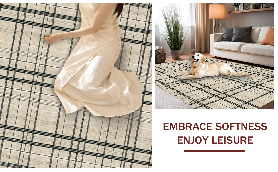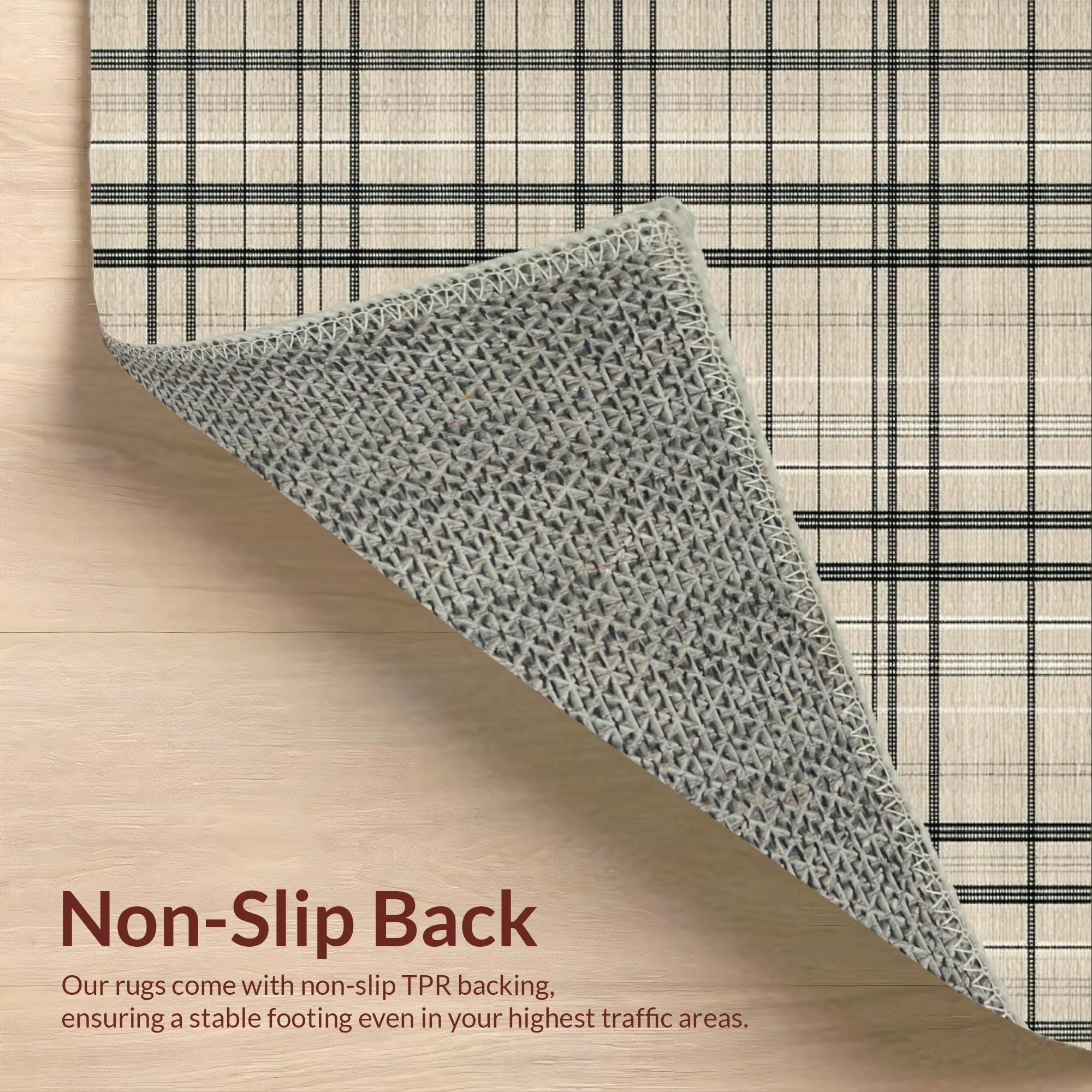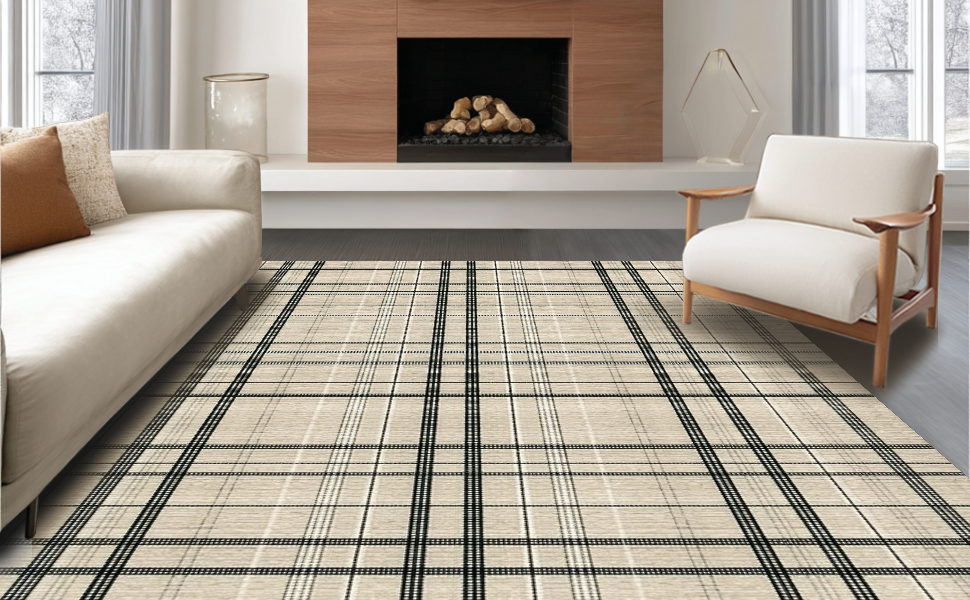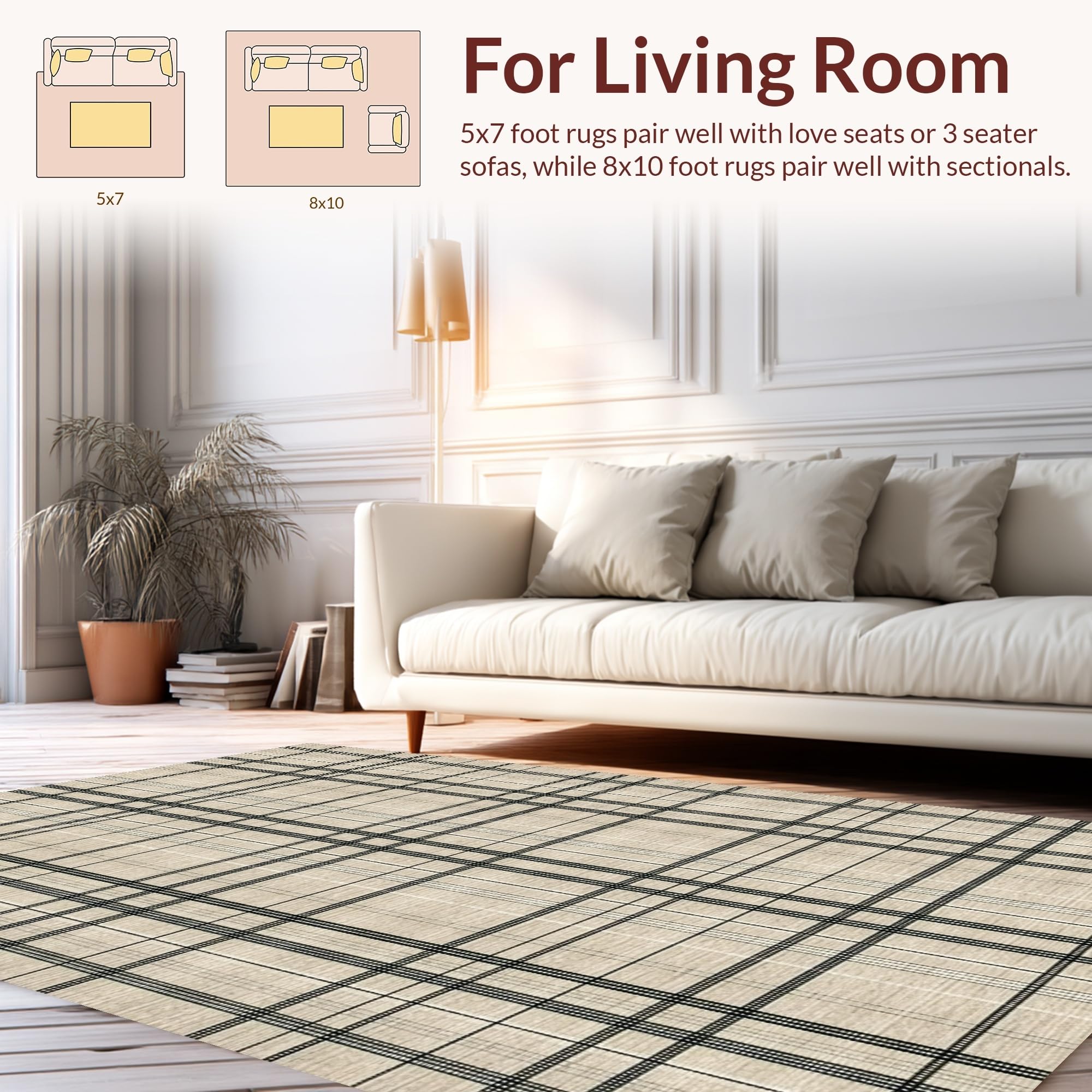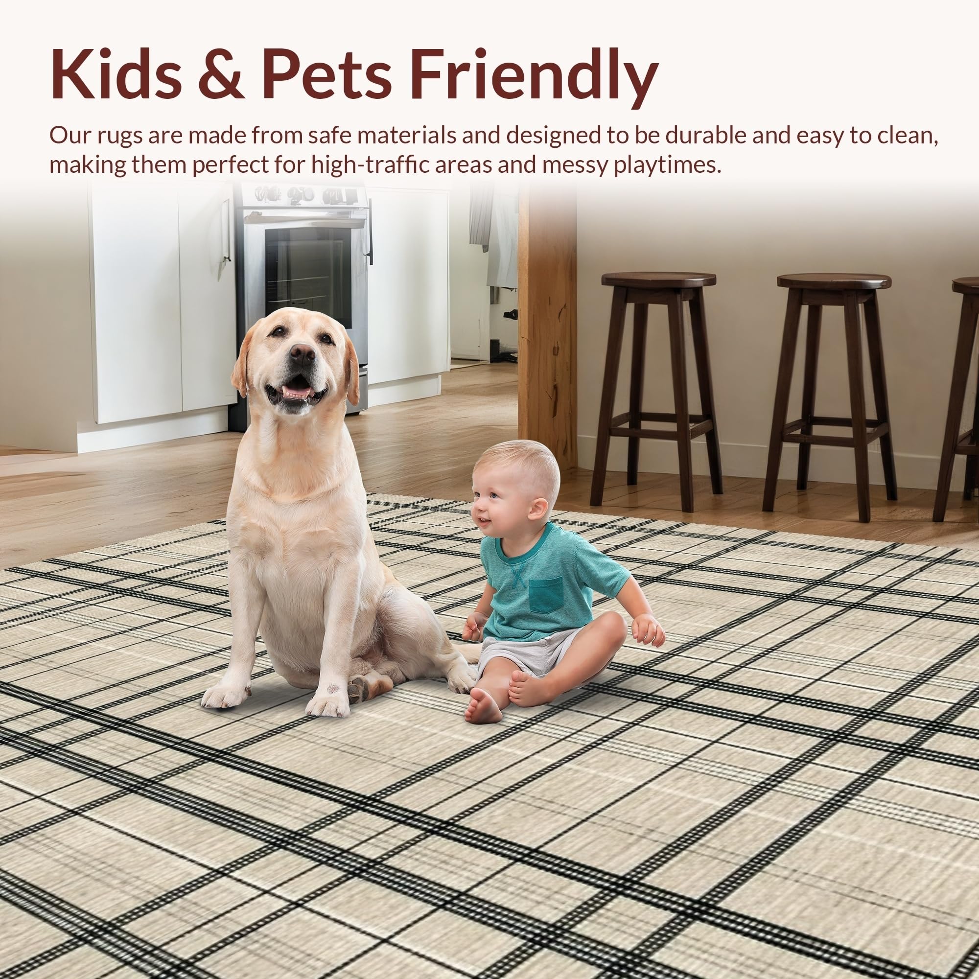 Ultra Soft Area Rug, Non Slip, Stain Resistant, Washable Area Rugs for Living Room, Bedroom, Sophisticated Black Accented Patterns(Beige) Overview: