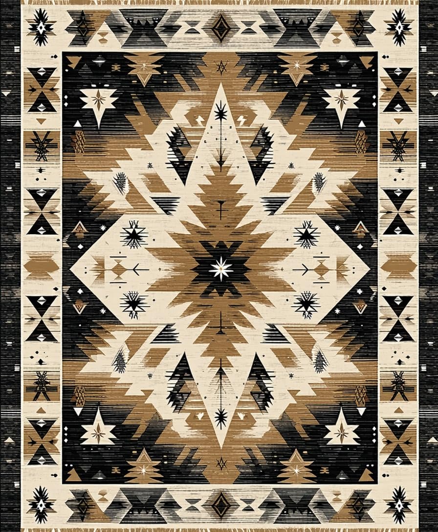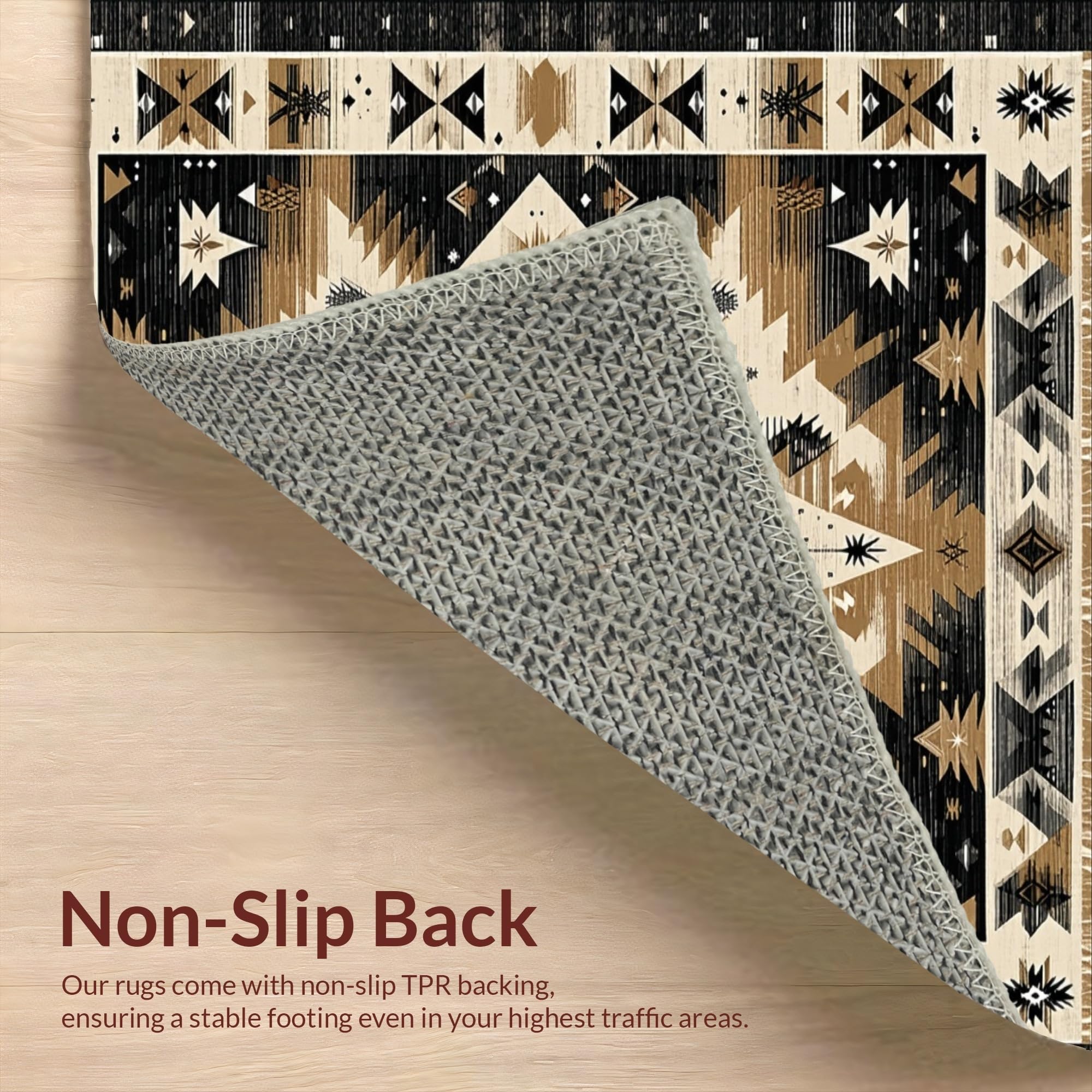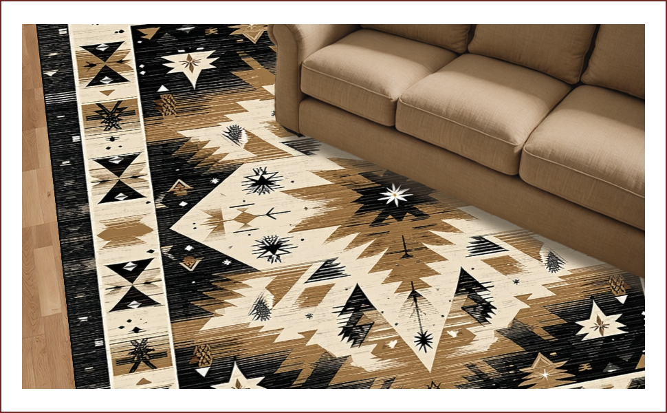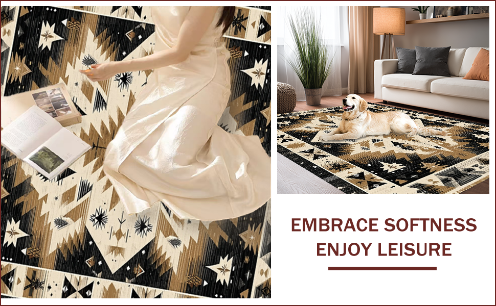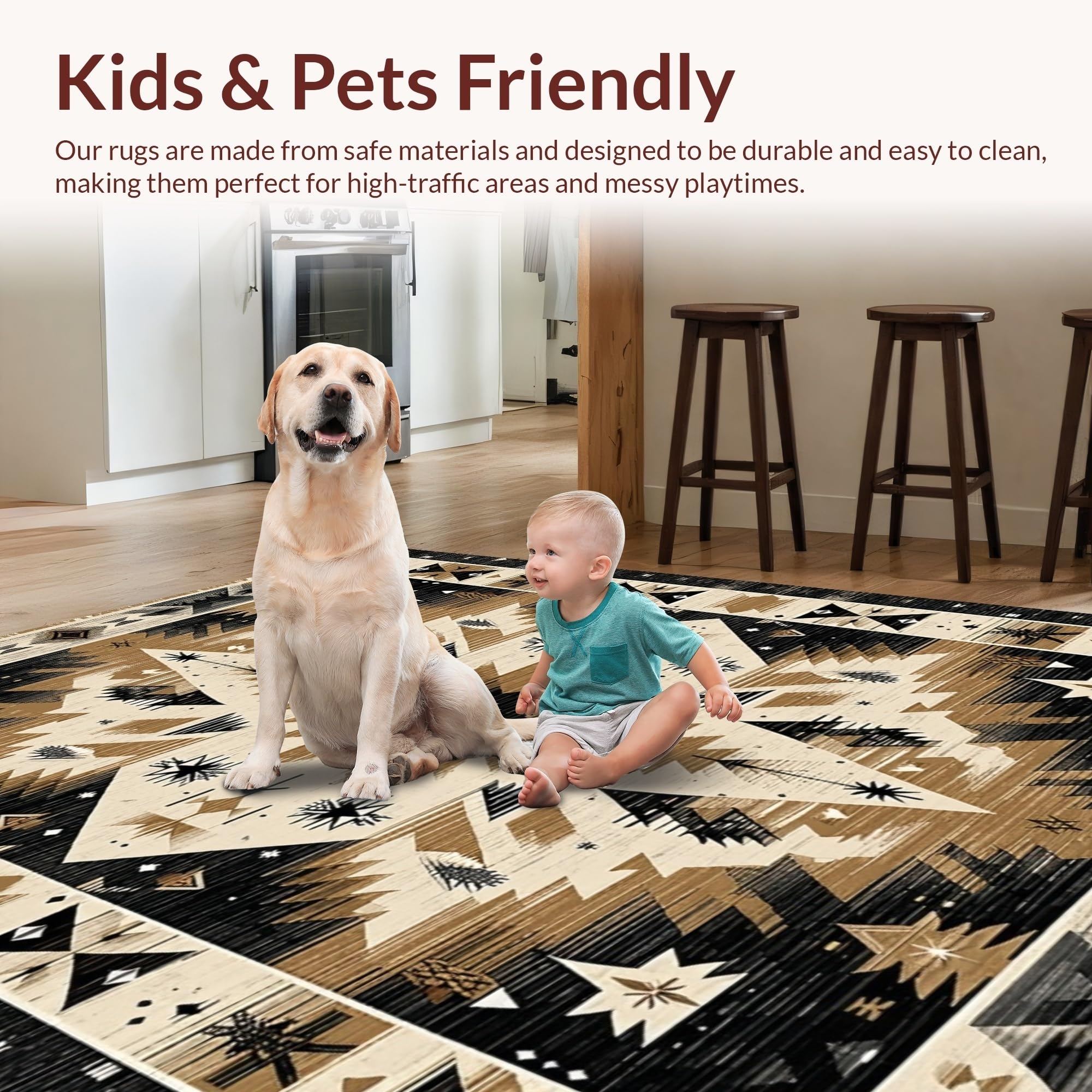 Ultra Soft Area Rug, Non Slip, Stain Resistant, Washable Area Rugs for Living Room, Bedroom, Sophisticated Black and Brown Palette(Black) Overview: