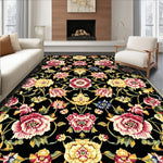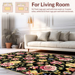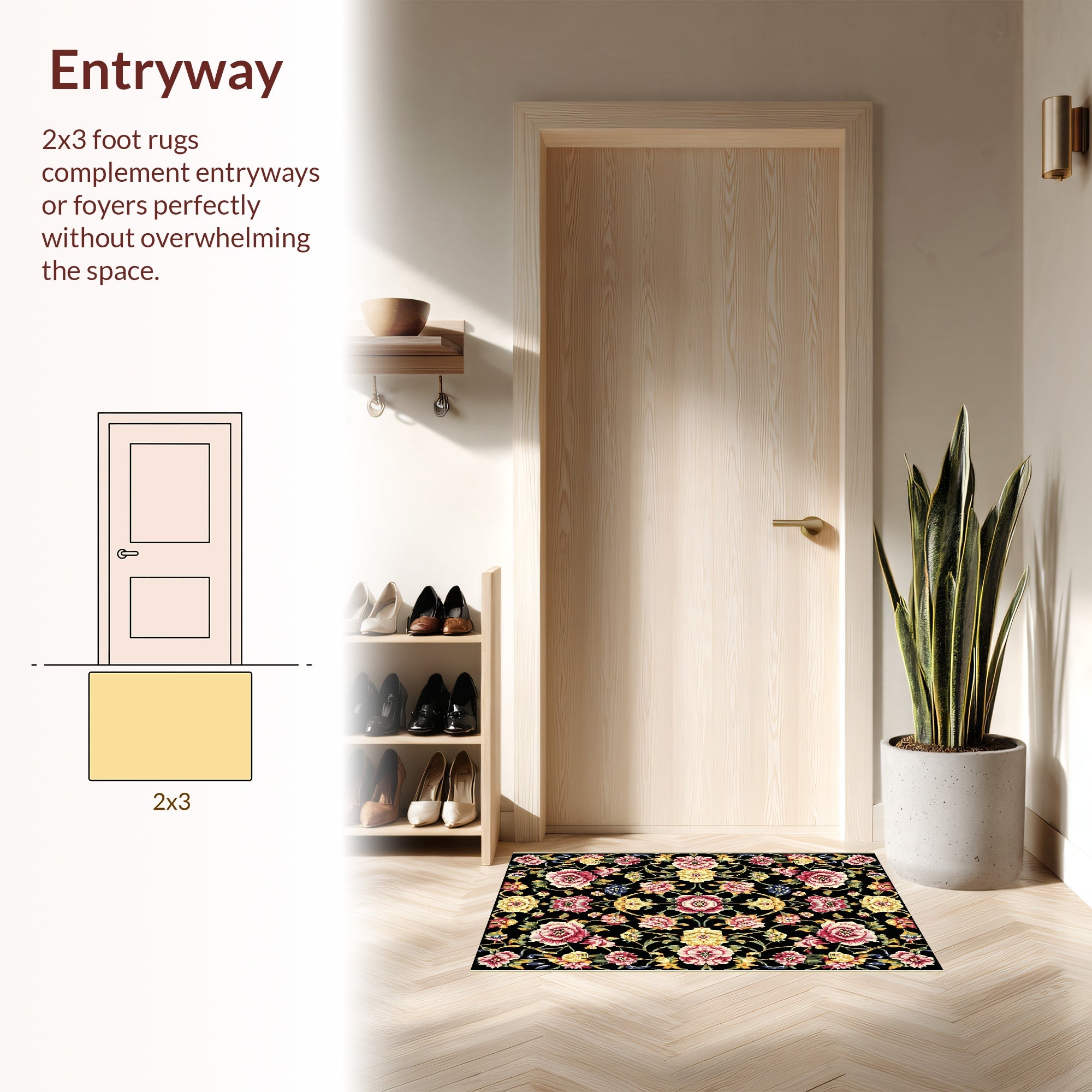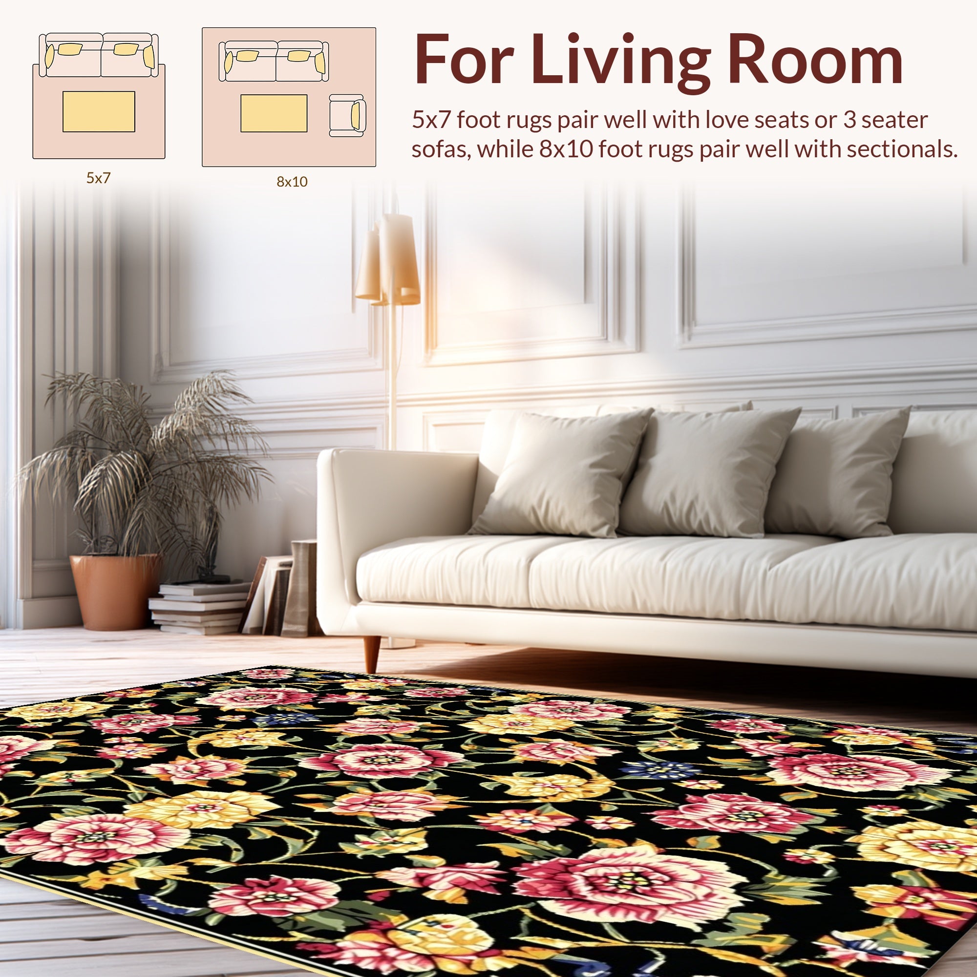 Flatwoven High Traffic Area Rug, Sophisticated Black and Pink Blossom, Non Slip, Stain Resistant, Washable Area Rugs for Living Room, Bedroom (Black) Overview: