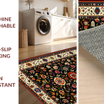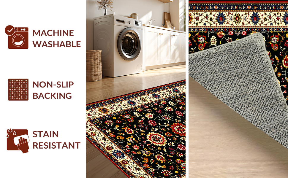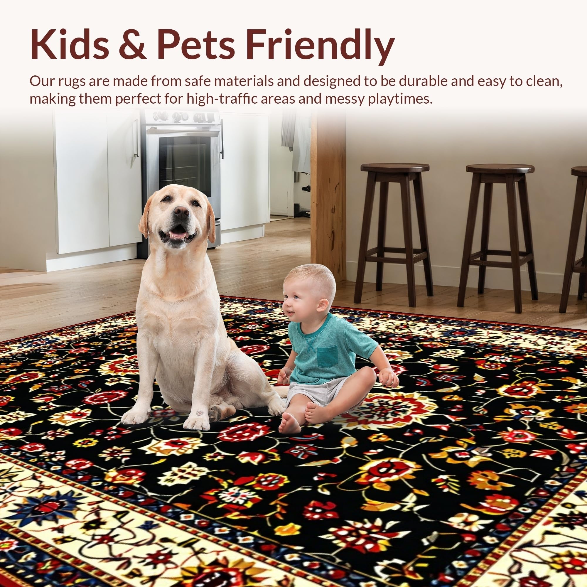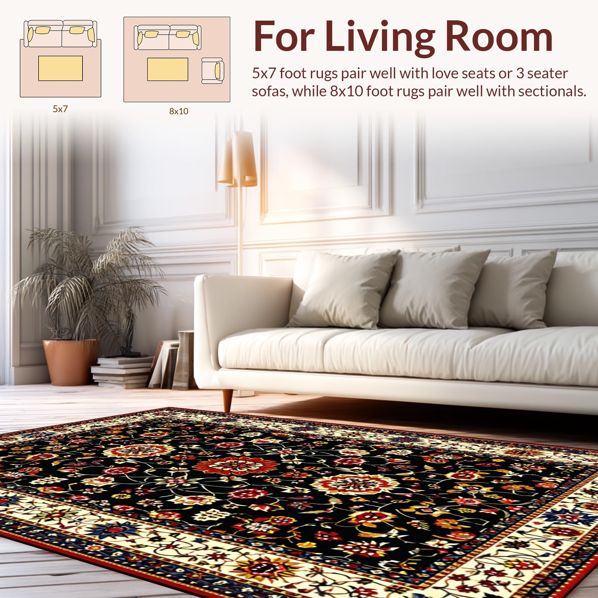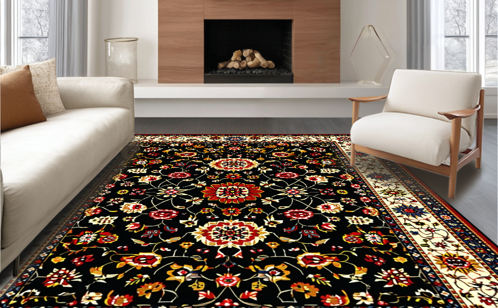 Ultra Soft Area Rug, Non Slip, Stain Resistant, Washable Area Rugs for Living Room, Bedroom, Sophisticated Black Floral Accents(Black) Overview: