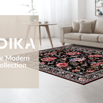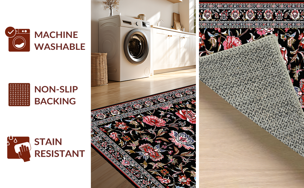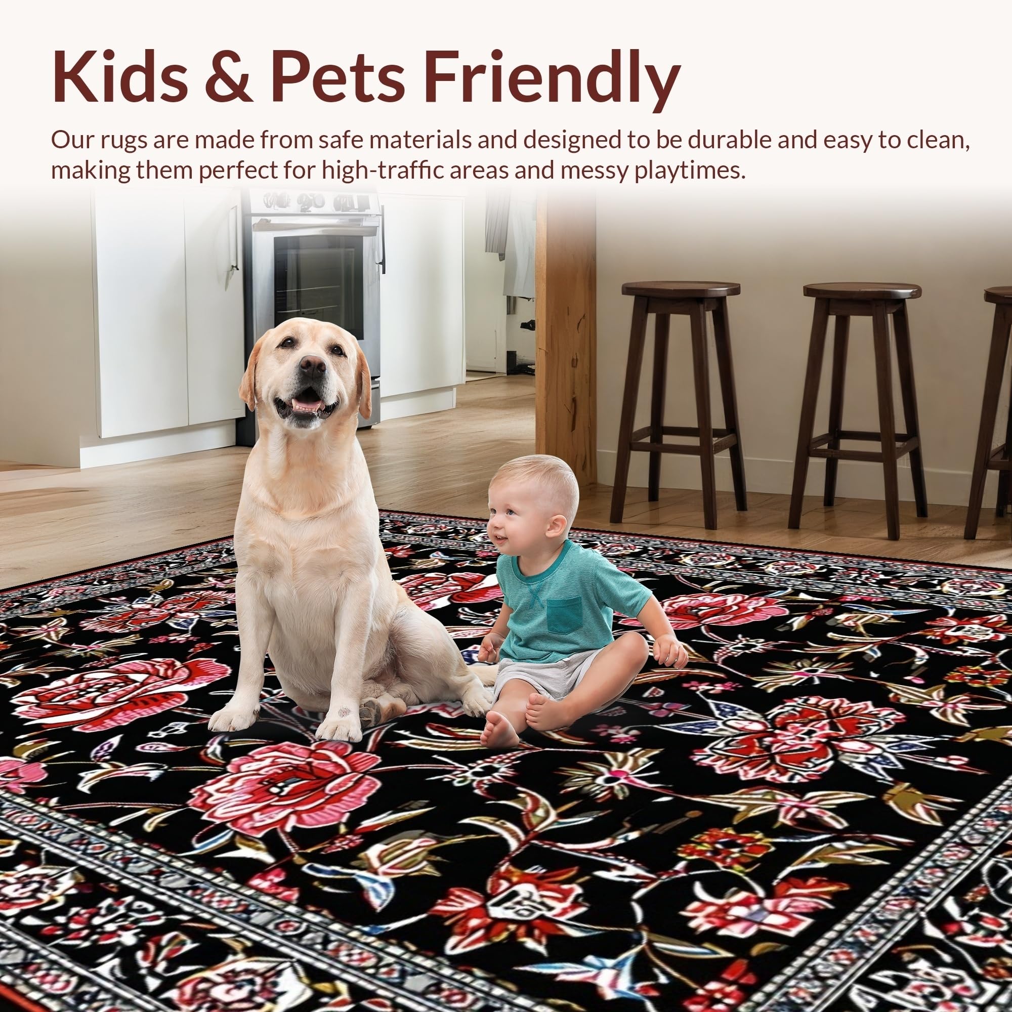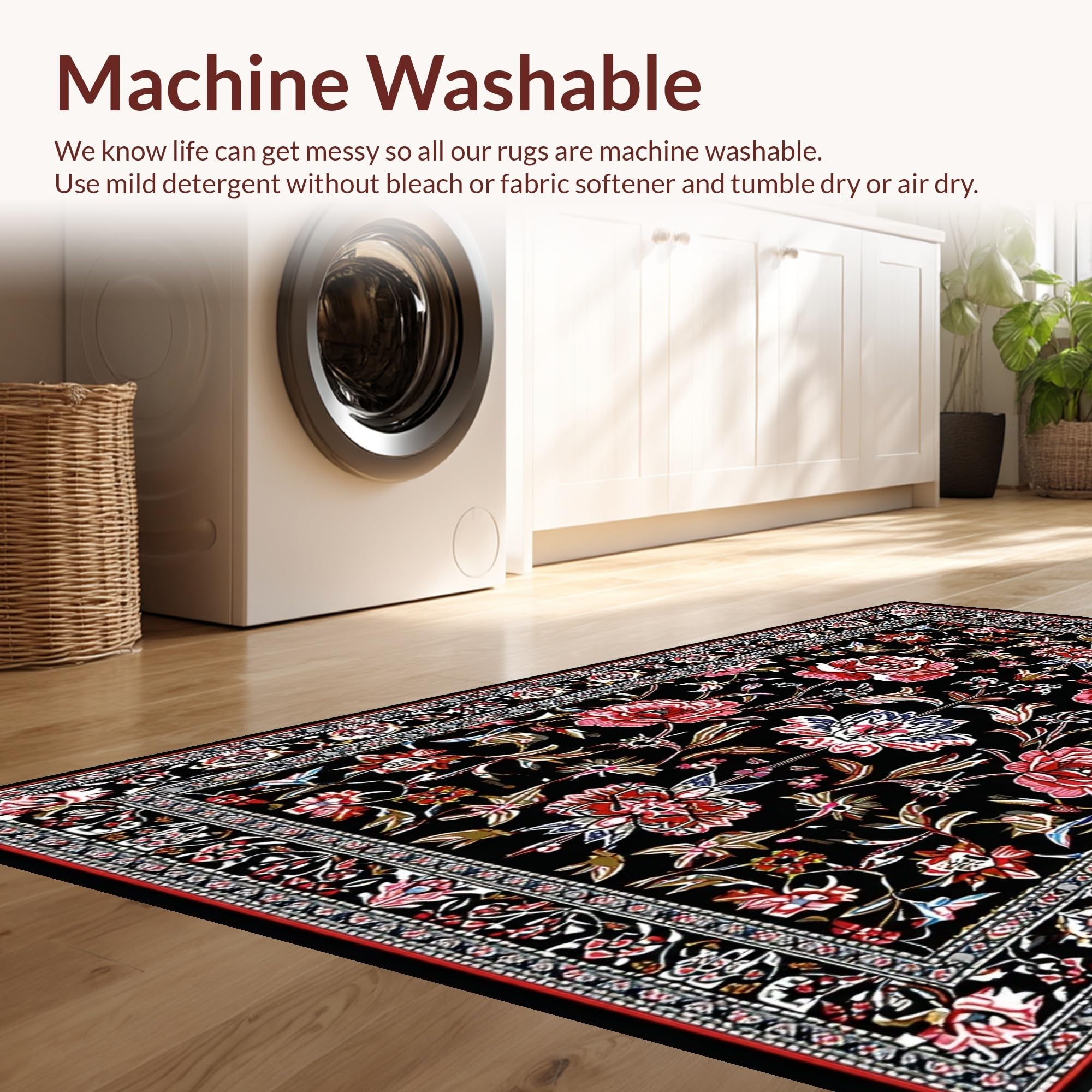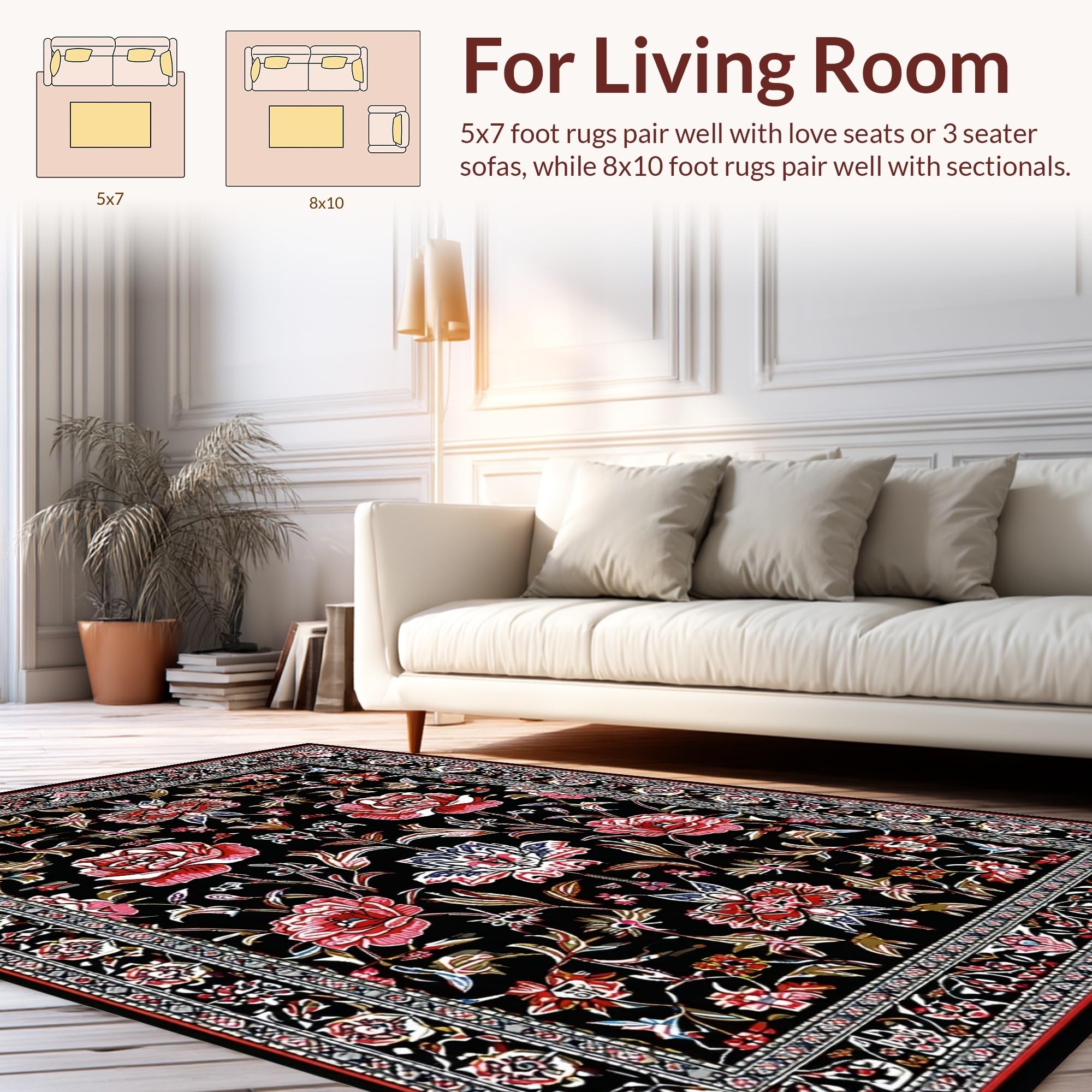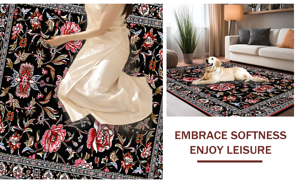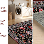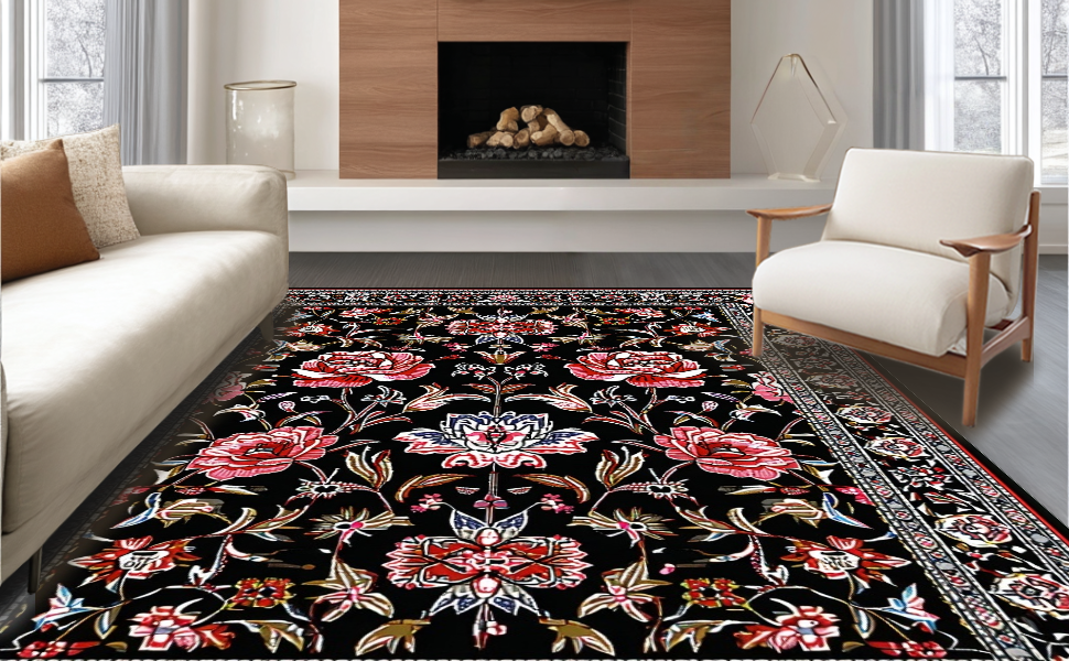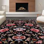 Ultra Soft Area Rug, Non Slip, Stain Resistant, Washable Area Rugs for Living Room, Bedroom, Sophisticated Black Floral Aesthetic(Black) Overview: