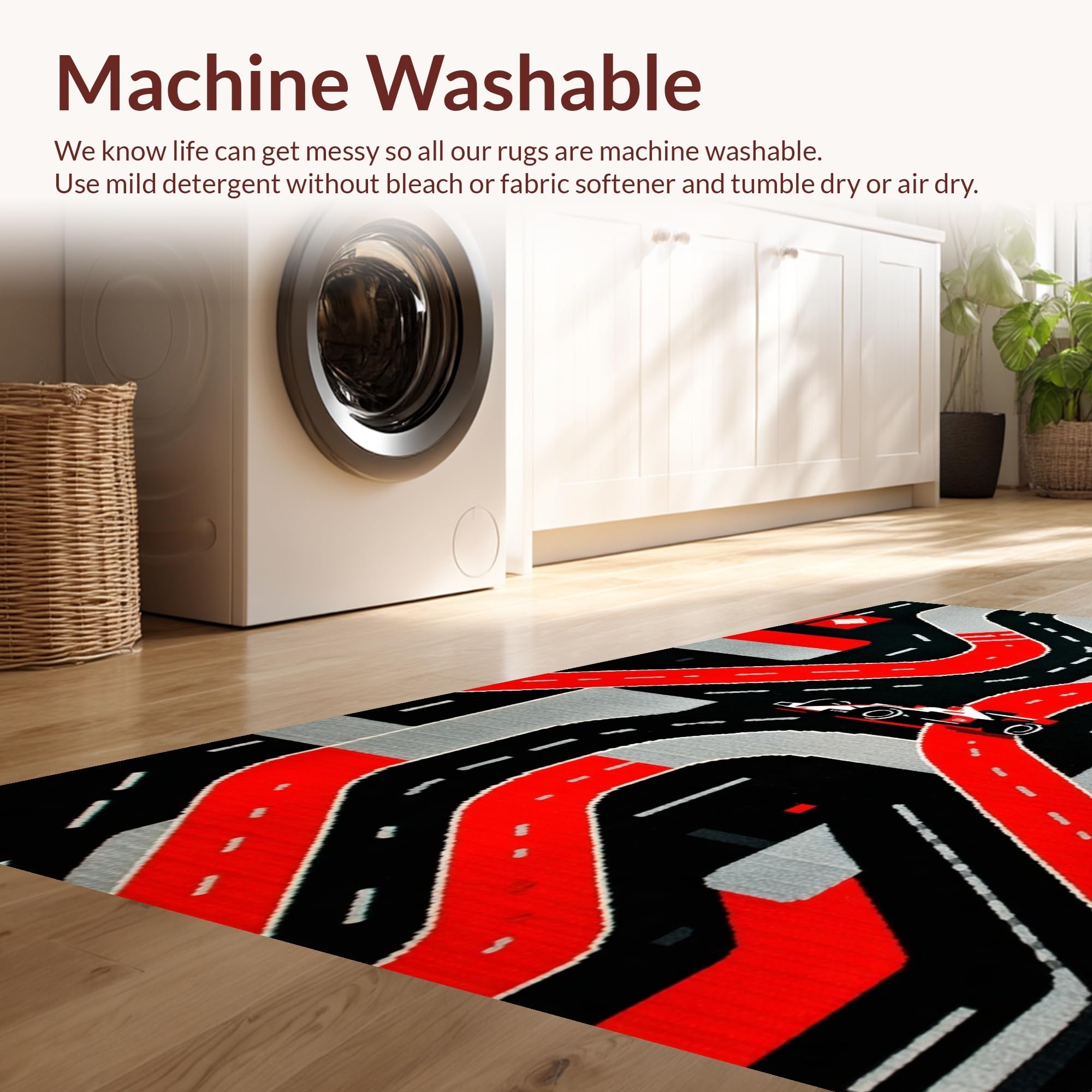 - Machine Washable: Our rugs can be easily thrown in the wash machine.