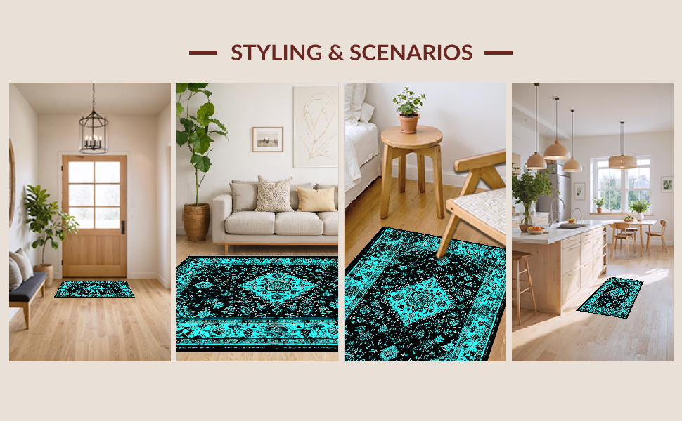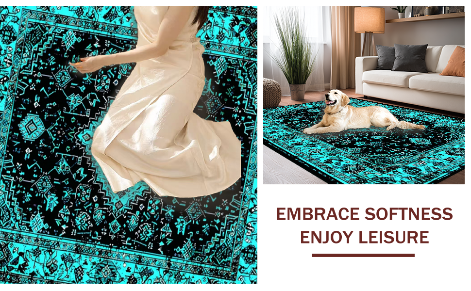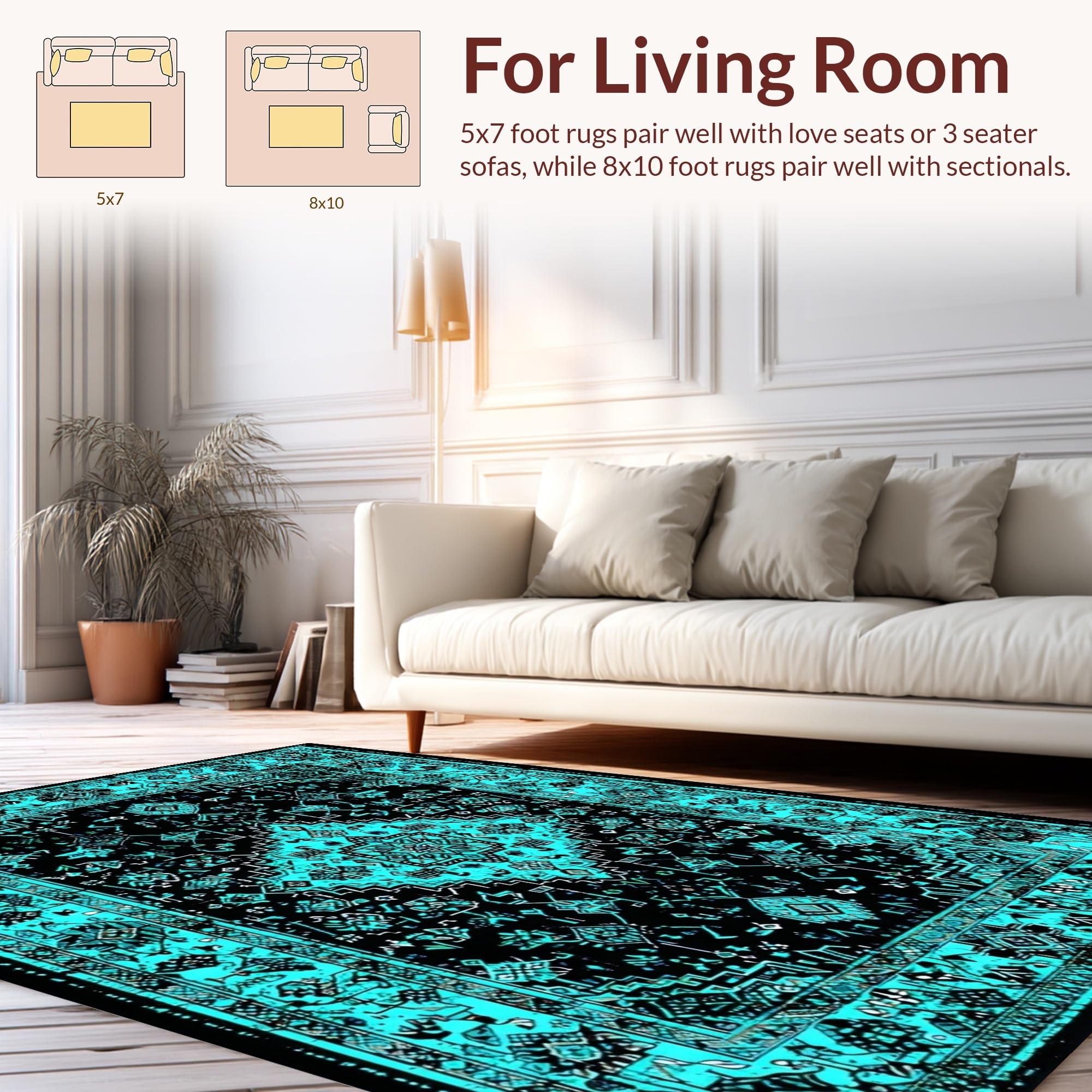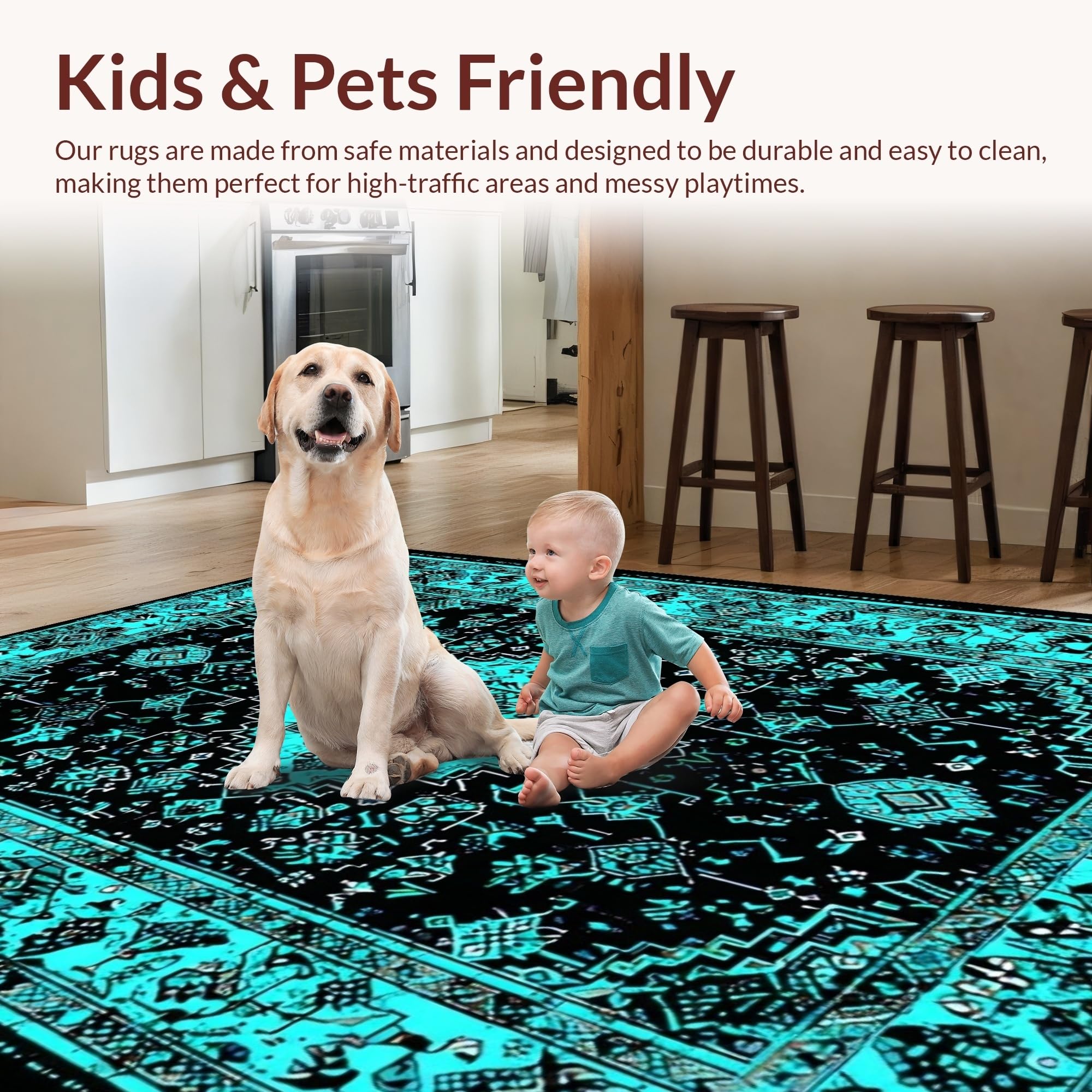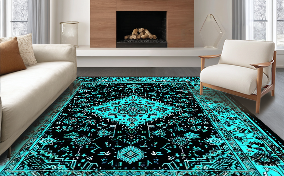 Ultra Soft Area Rug, Non Slip, Stain Resistant, Washable Area Rugs for Living Room, Bedroom, Sophisticated Black Teal Harmony(Black) Overview: