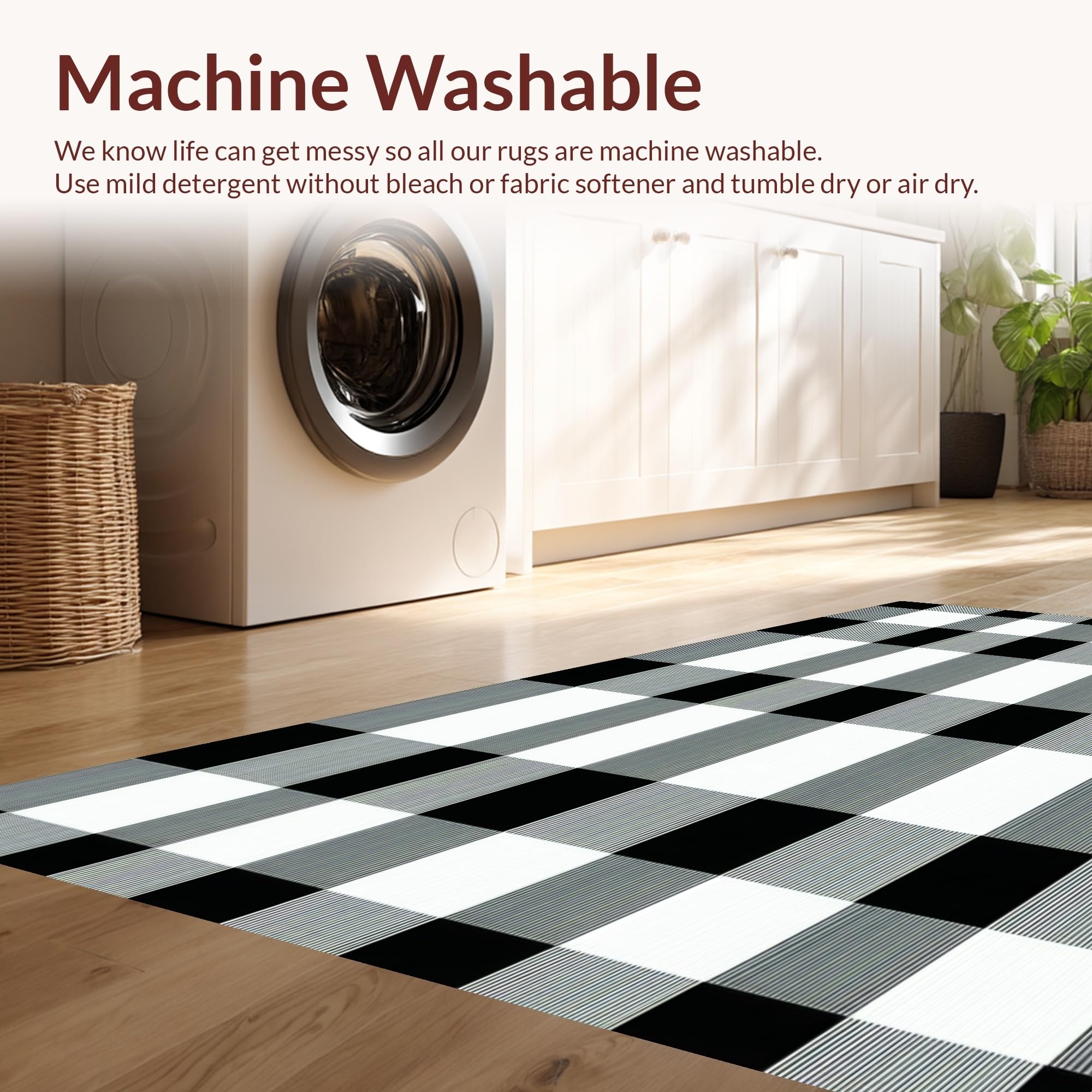 - Machine Washable: Our rugs can be easily thrown in the wash machine.