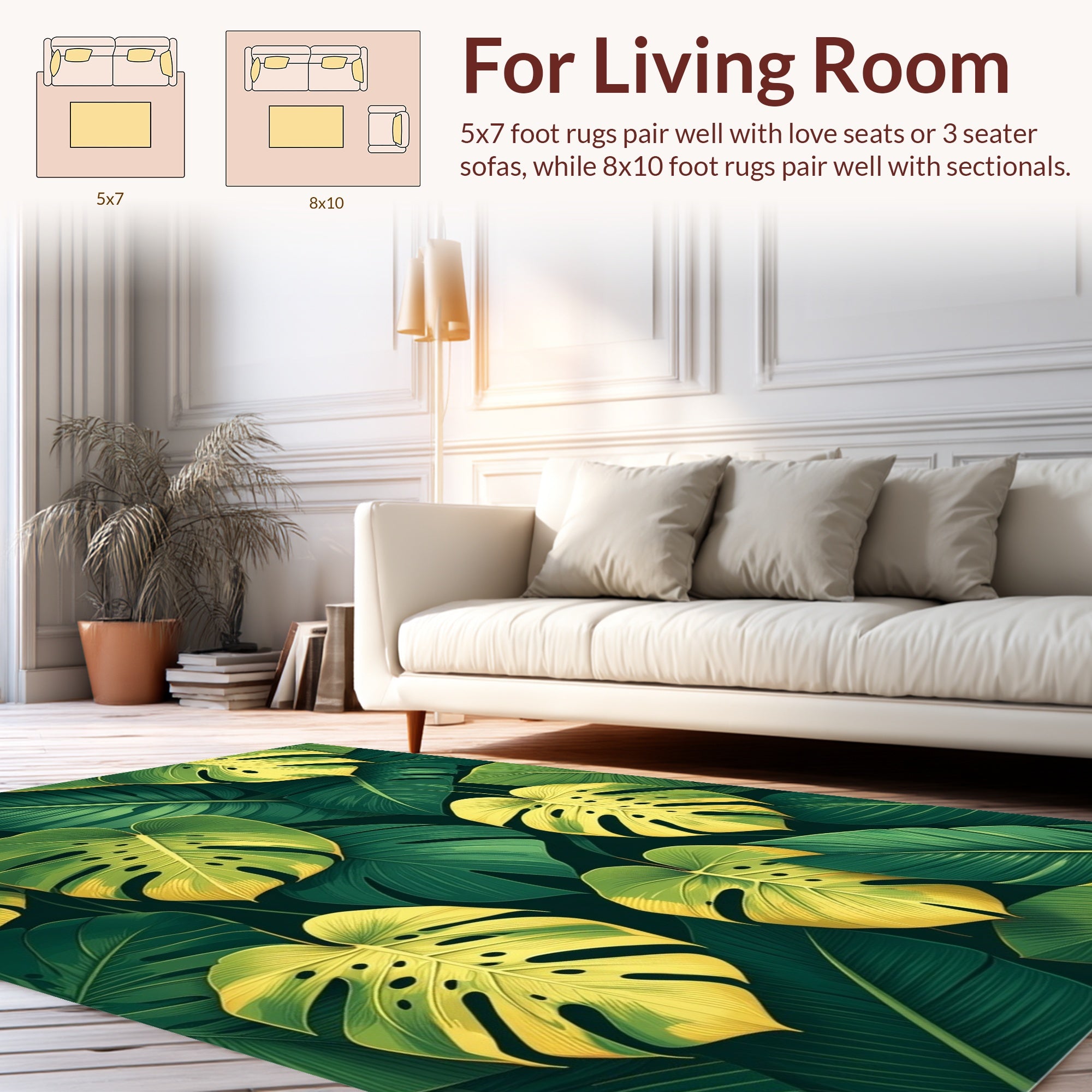 Flatwoven High Traffic Area Rug, Sophisticated Botanical Design Appeal, Non Slip, Stain Resistant, Washable Area Rugs for Living Room, Bedroom (Green) Overview: