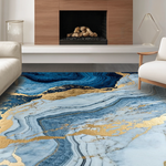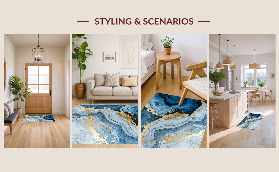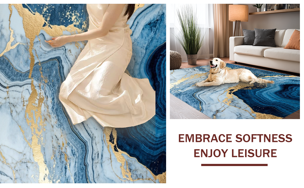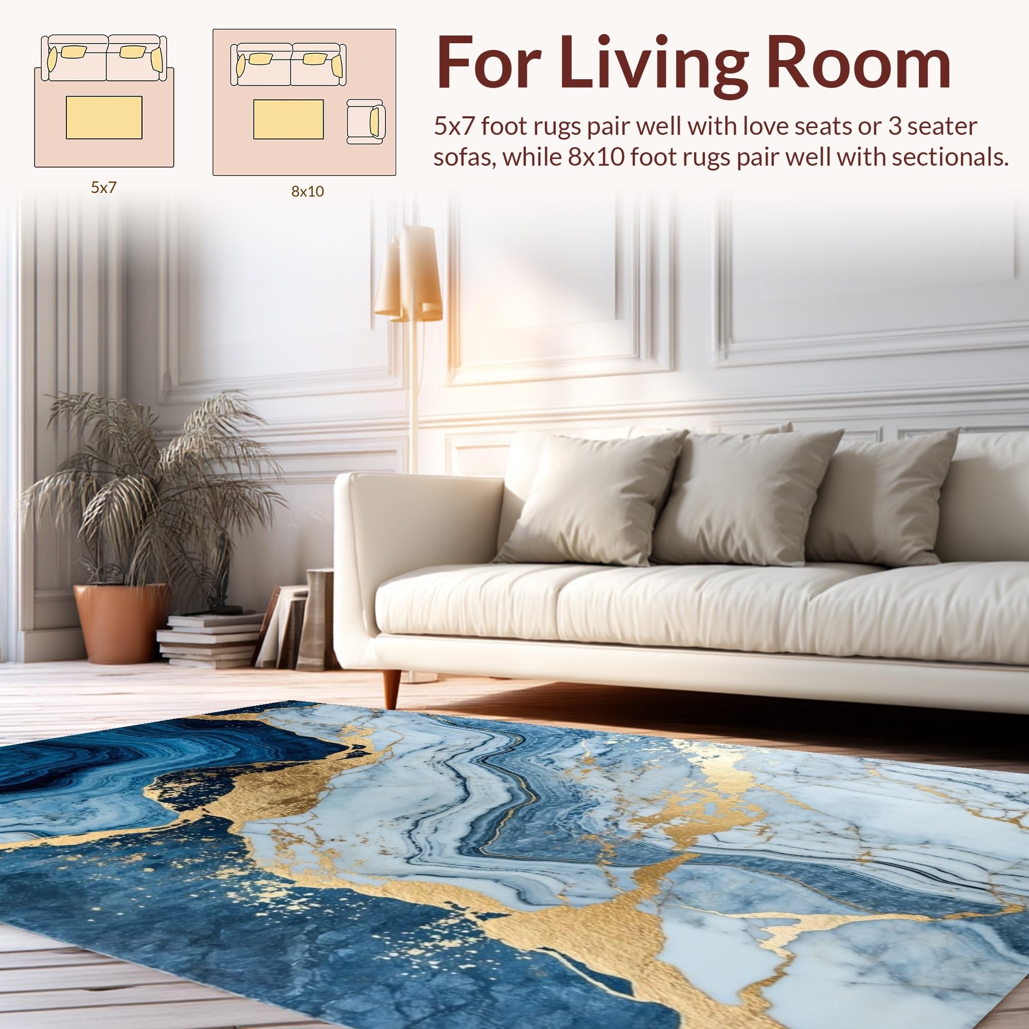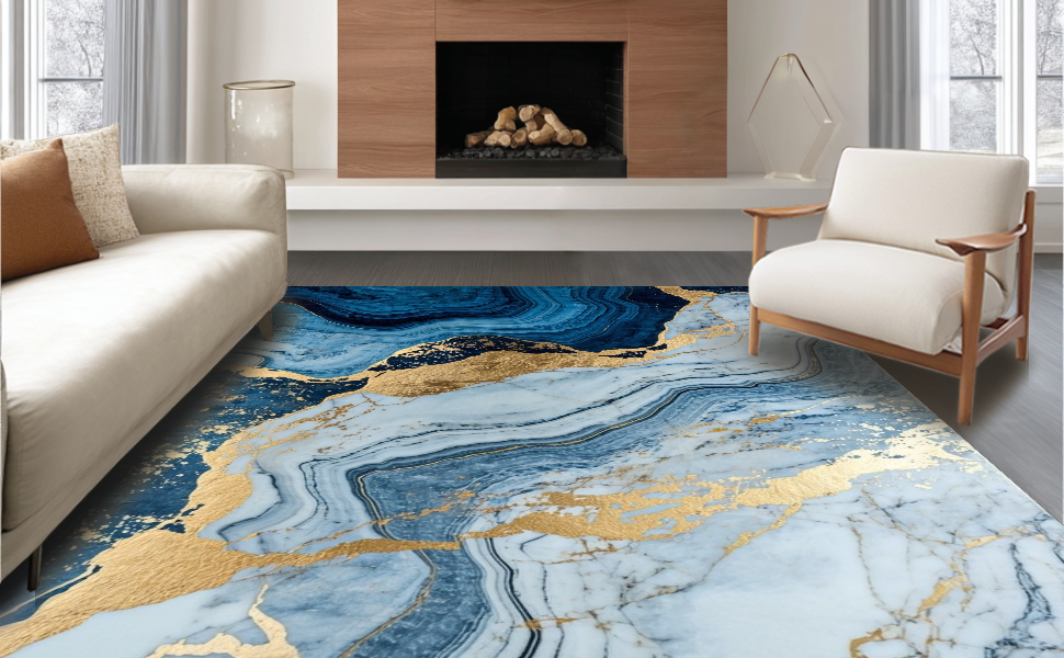 Ultra Soft Area Rug, Non Slip, Stain Resistant, Washable Area Rugs for Living Room, Bedroom, Sophisticated Contemporary Geometric Motif(Blue) Overview: