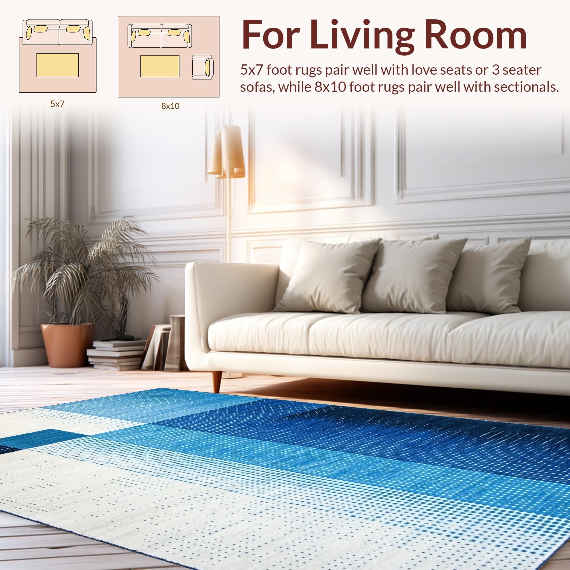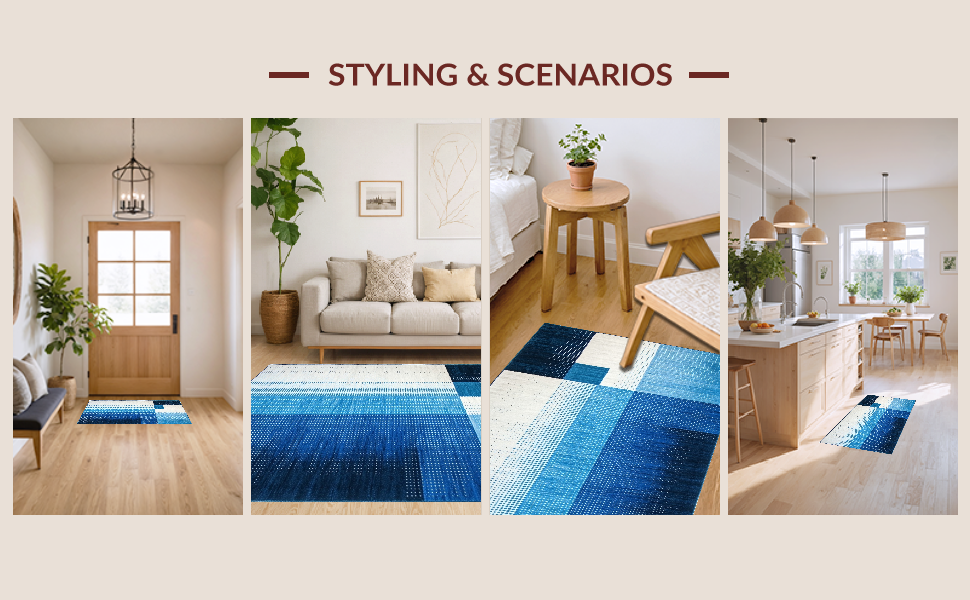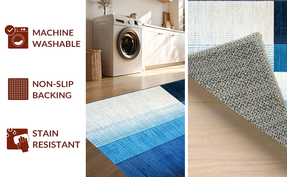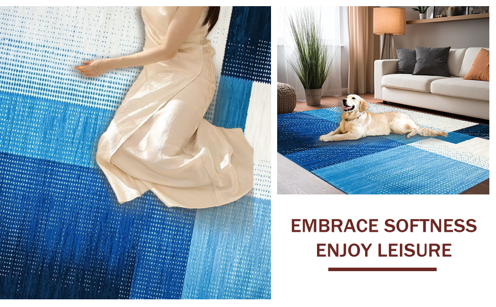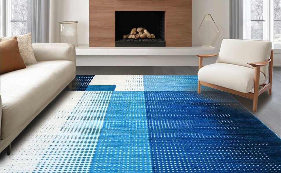 Ultra Soft Area Rug, Non Slip, Stain Resistant, Washable Area Rugs for Living Room, Bedroom, Sophisticated Cool Color Palette(Blue) Overview: