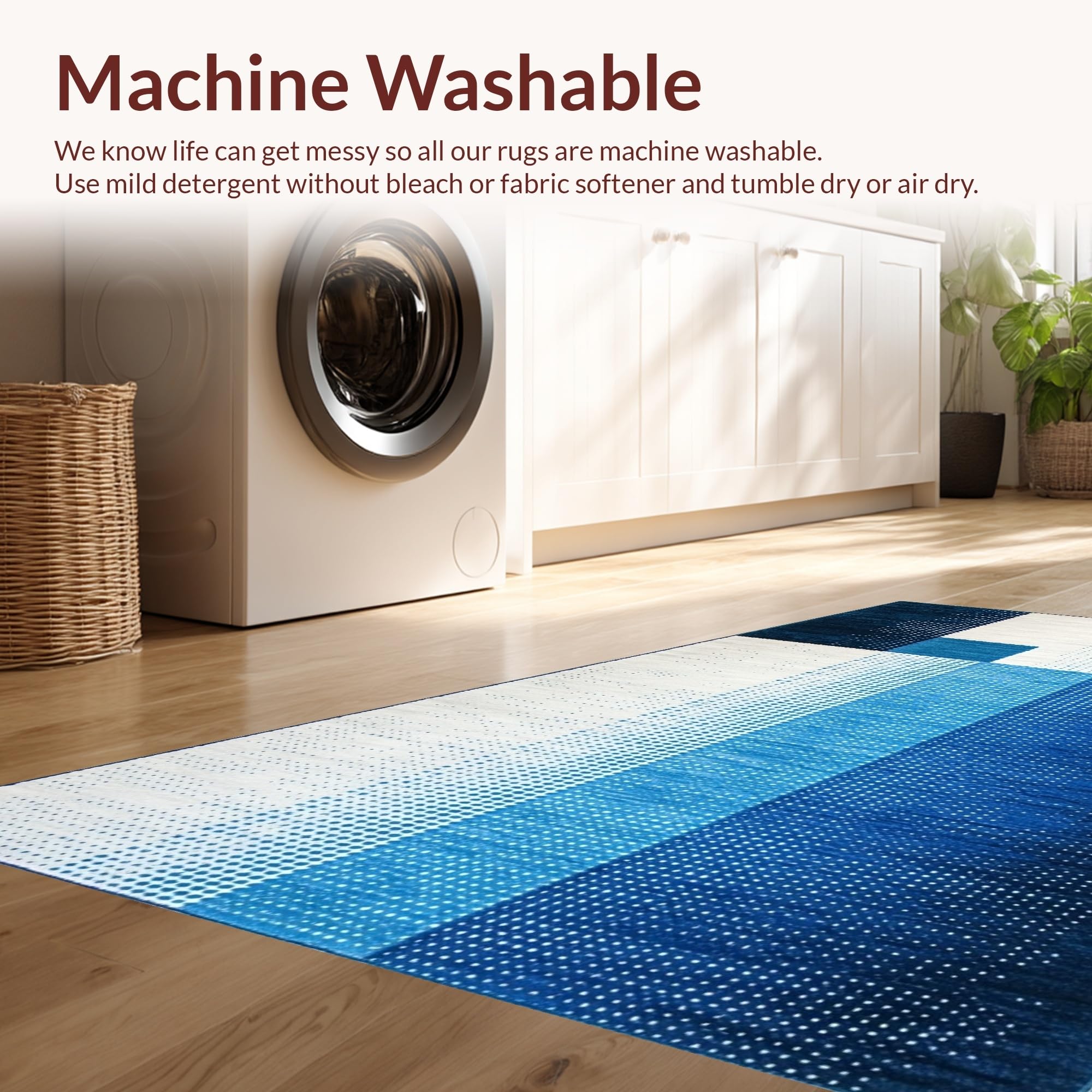 - Machine Washable: Our rugs can be easily thrown in the wash machine.