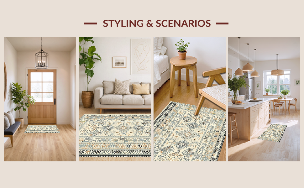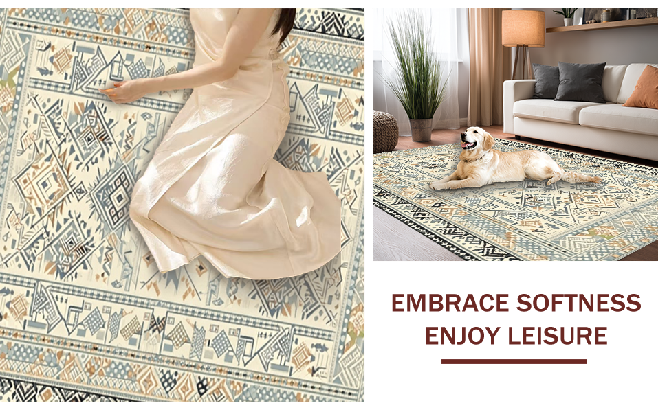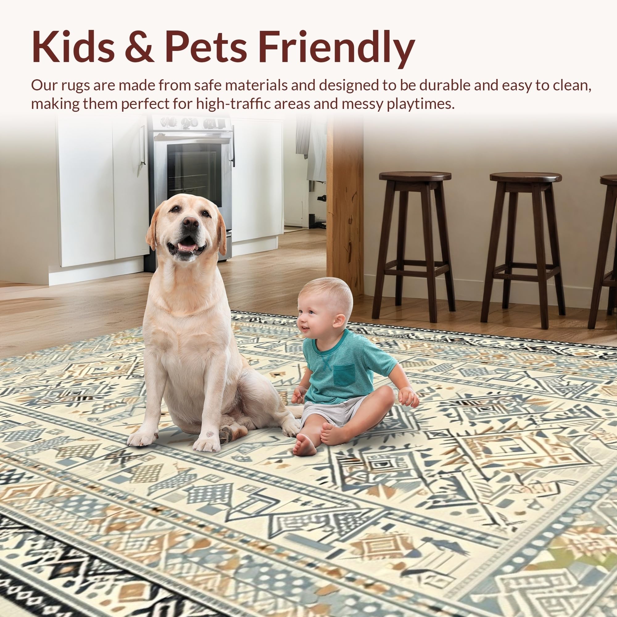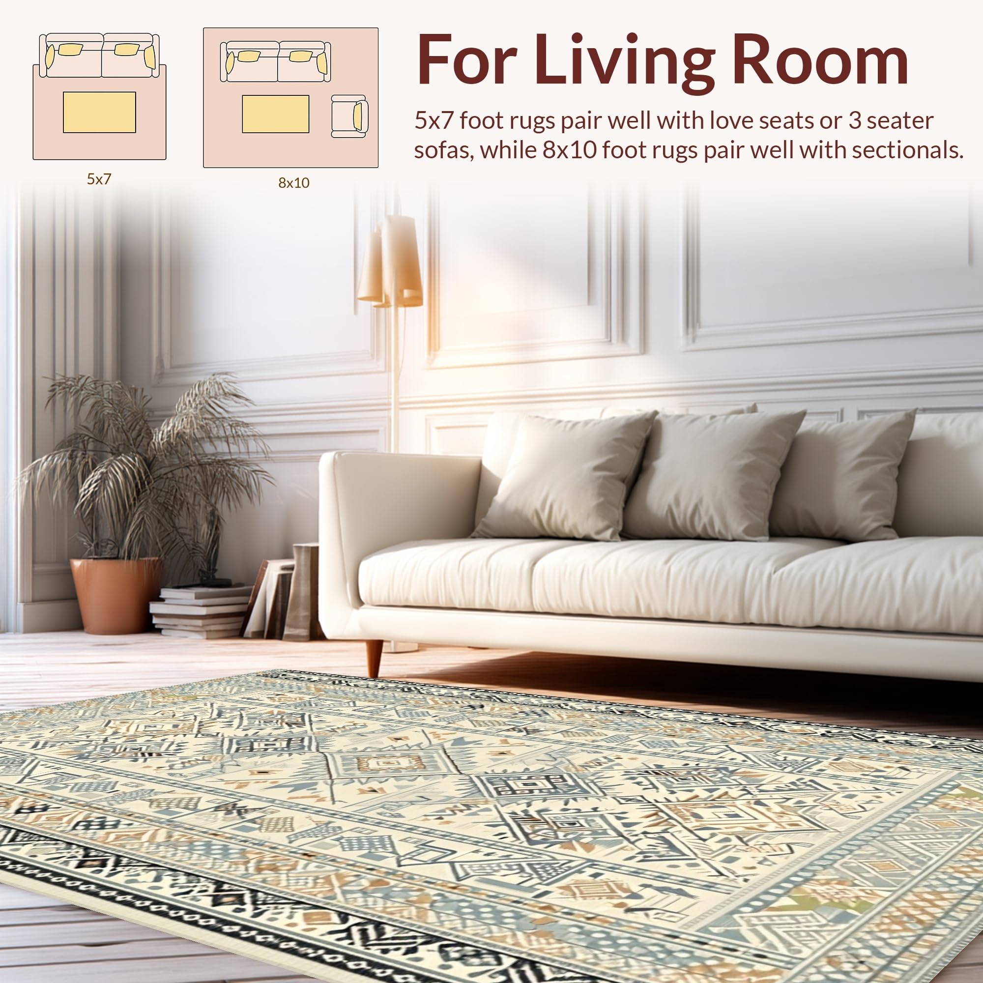 Ultra Soft Area Rug, Non Slip, Stain Resistant, Washable Area Rugs for Living Room, Bedroom, Sophisticated Cream Geometric Design(Beige) Overview:
