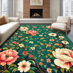 Flatwoven High Traffic Area Rug, Sophisticated Distressed Floral, Non Slip, Stain Resistant, Washable Area Rugs for Living Room, Bedroom (Green) Overview: