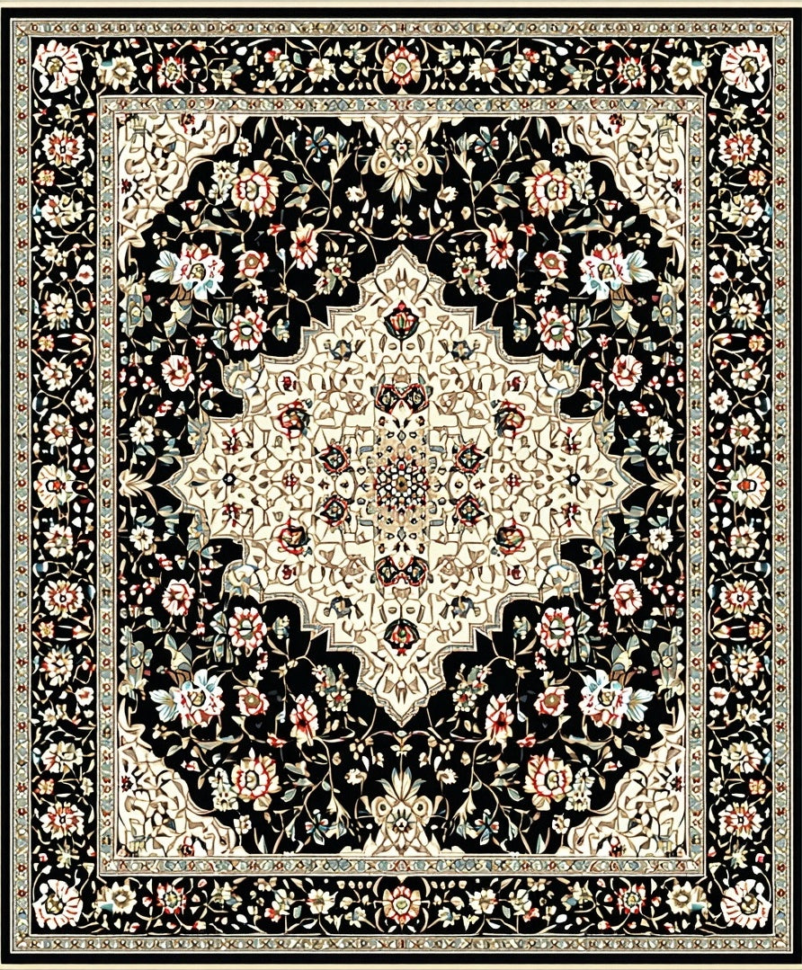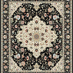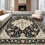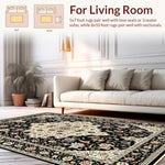 Flatwoven High Traffic Area Rug, Sophisticated Faded Botanical Print, Non Slip, Stain Resistant, Washable Area Rugs for Living Room, Bedroom (Black) Overview: