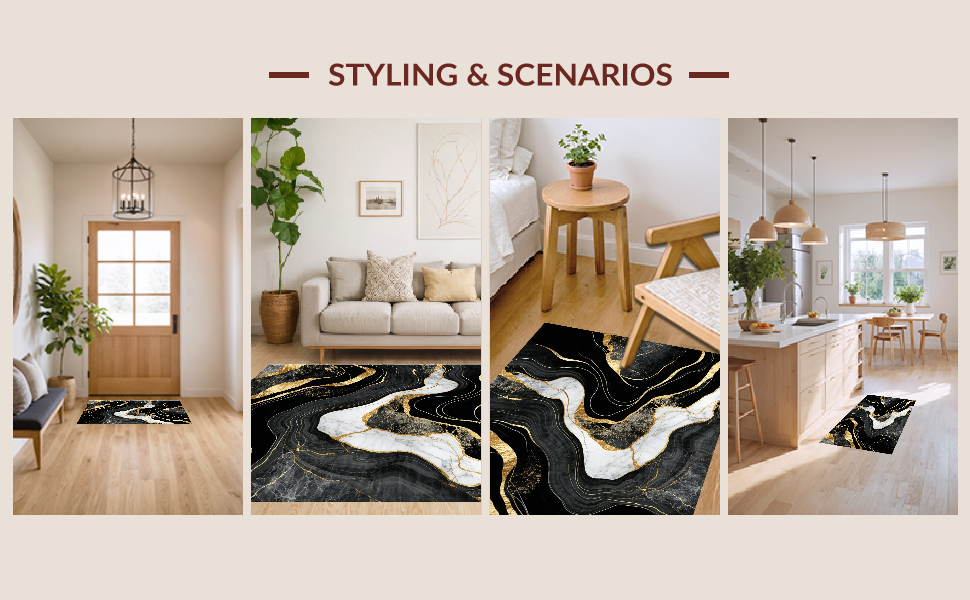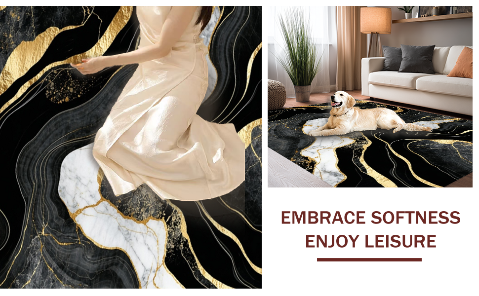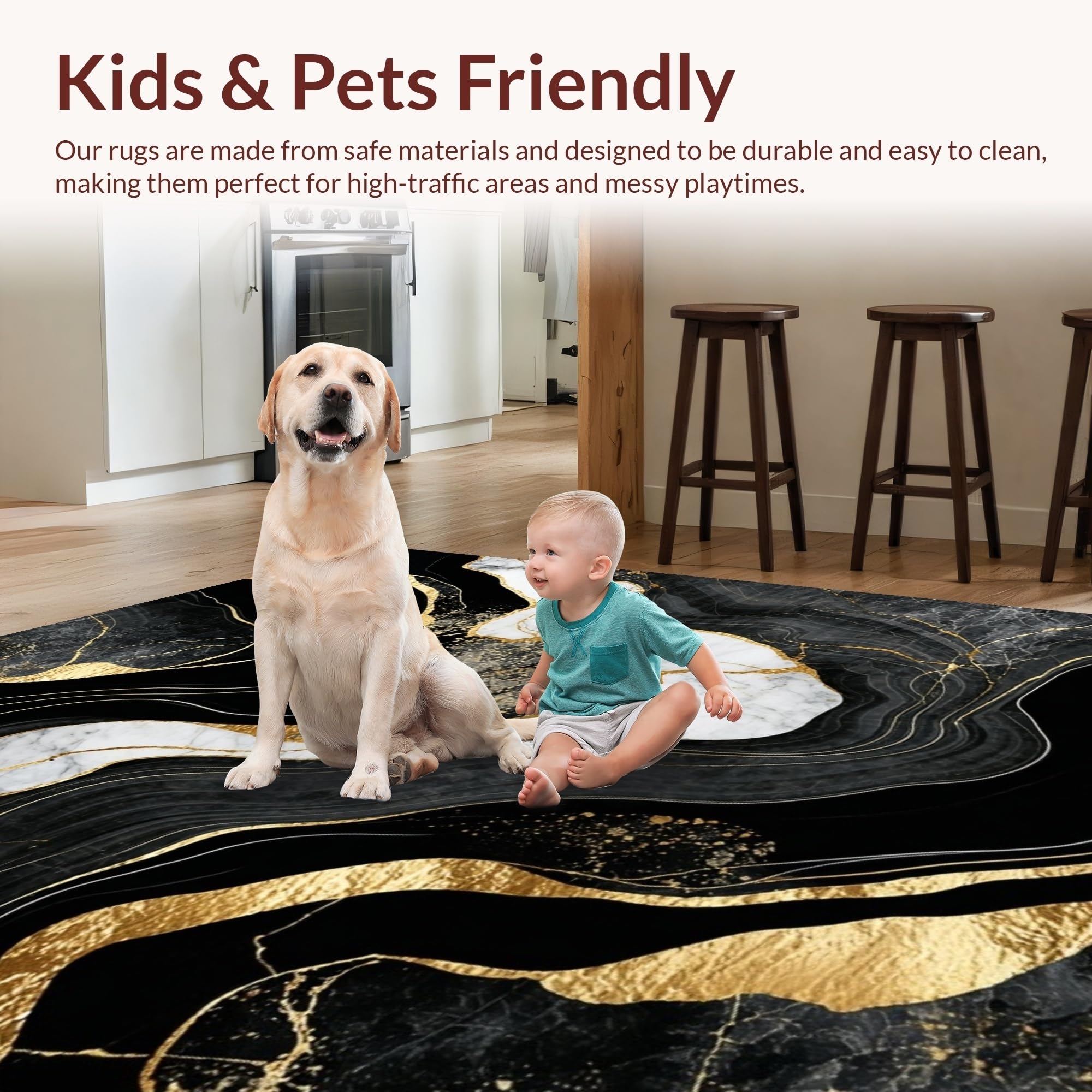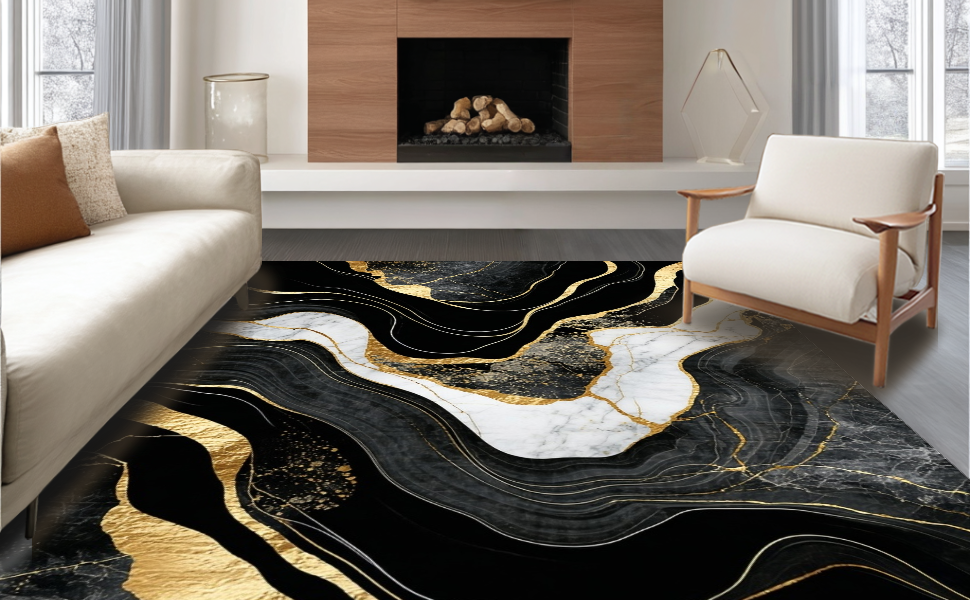 Ultra Soft Area Rug, Non Slip, Stain Resistant, Washable Area Rugs for Living Room, Bedroom, Sophisticated Faded Color Palette(Black) Overview: