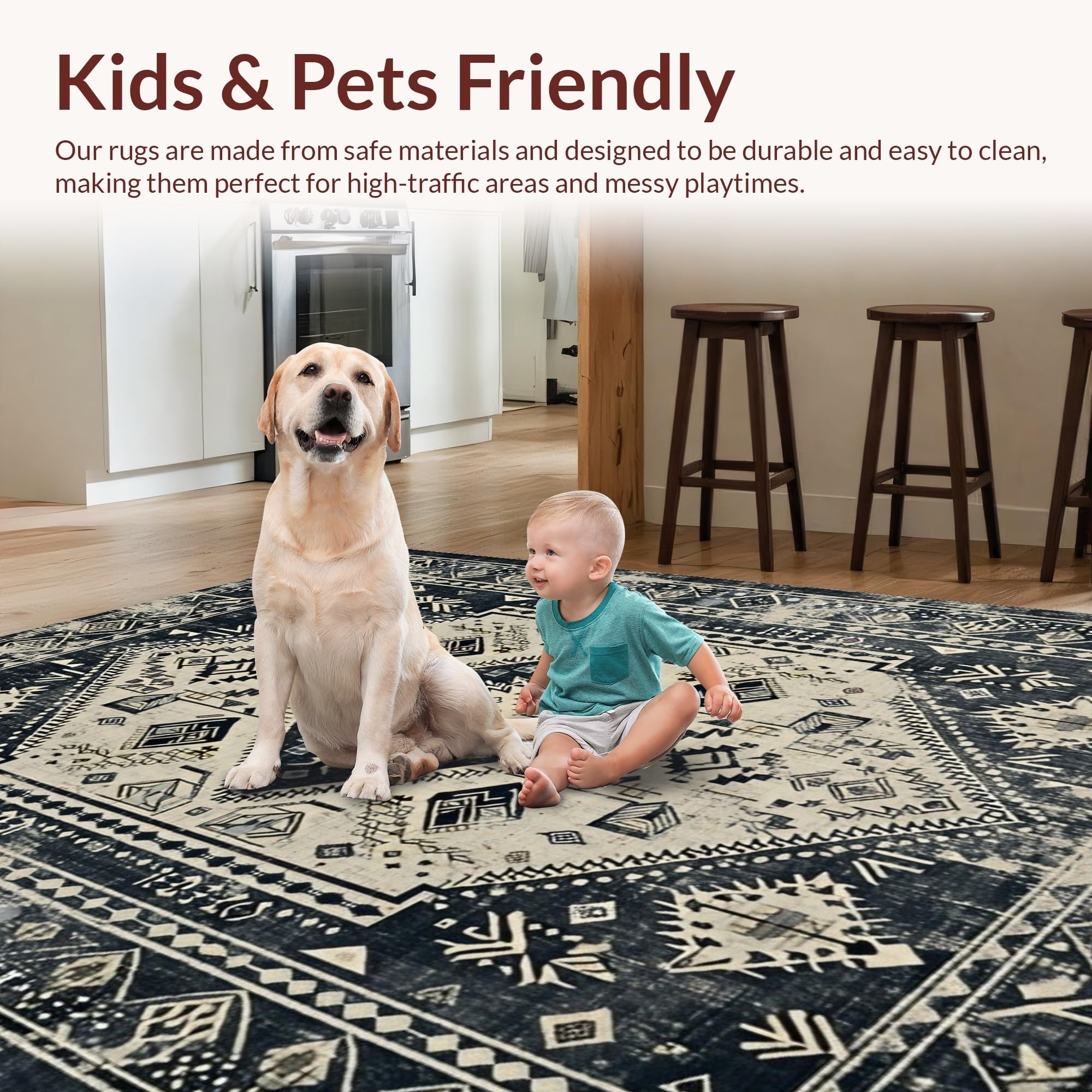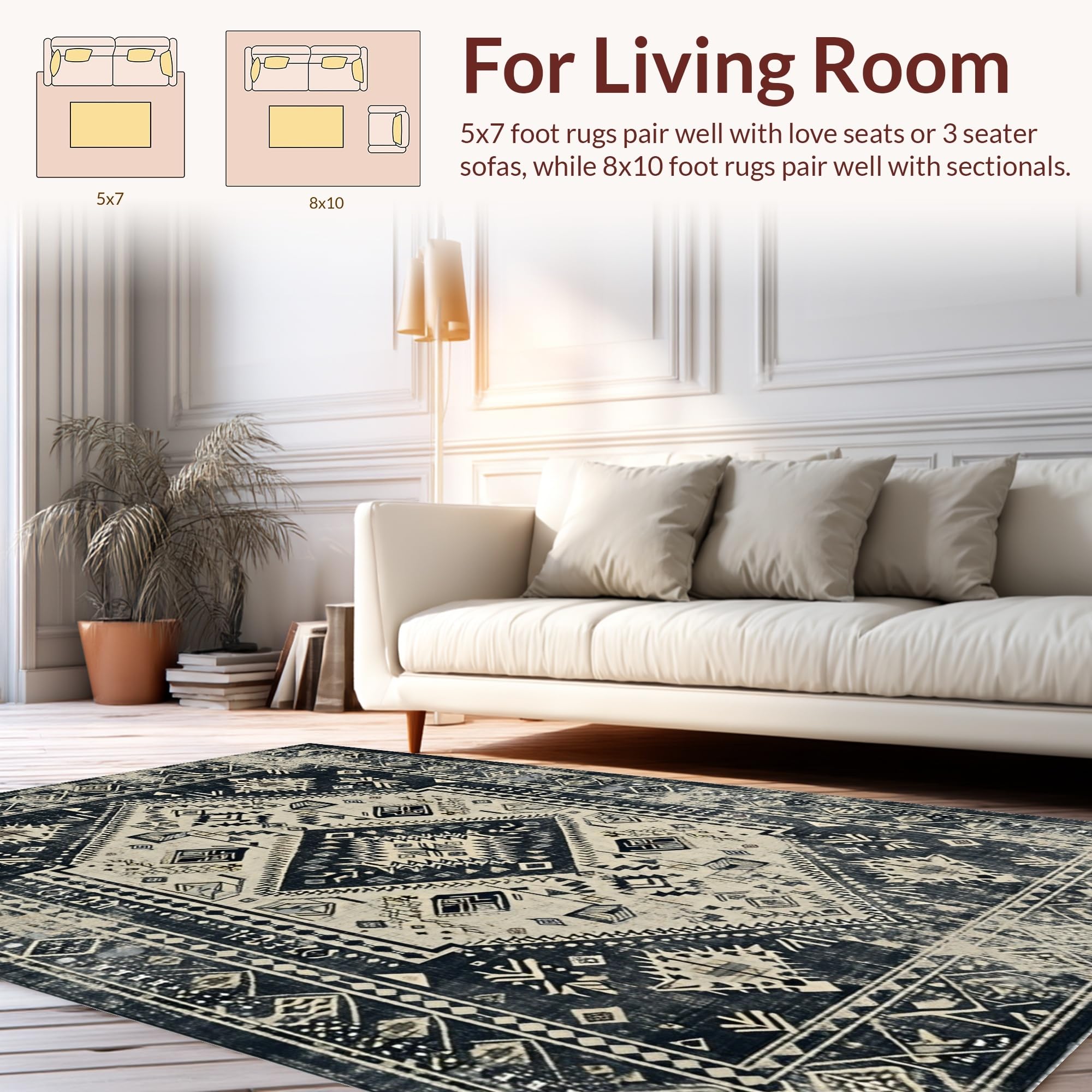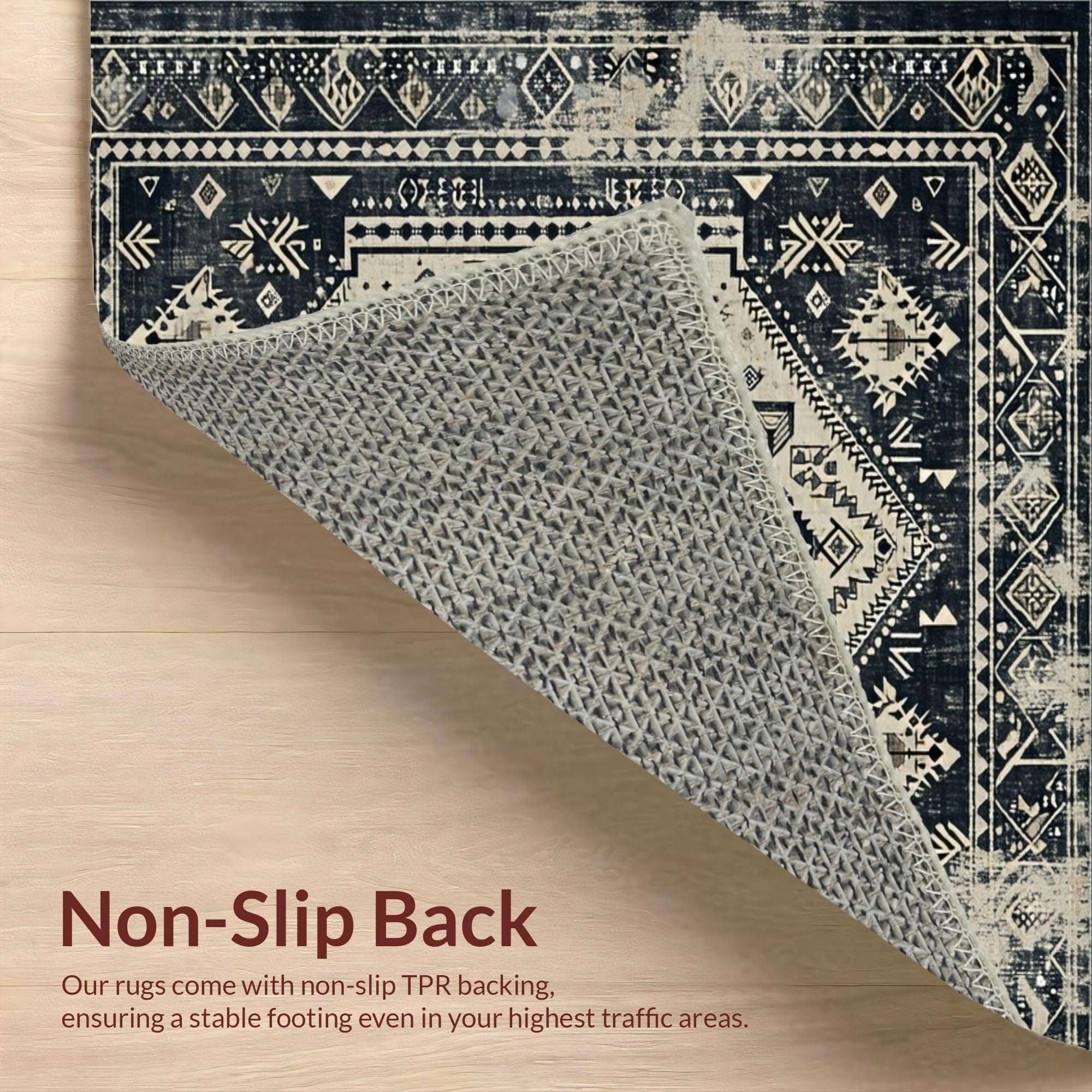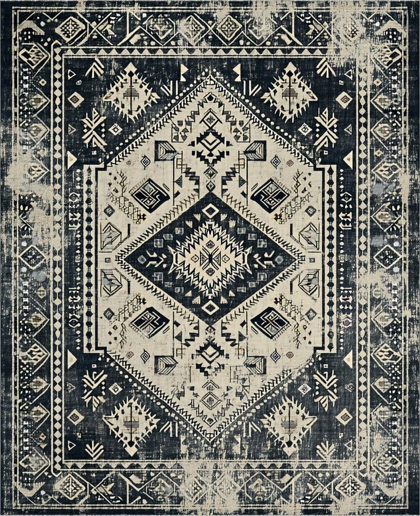 Ultra Soft Area Rug, Non Slip, Stain Resistant, Washable Area Rugs for Living Room, Bedroom, Sophisticated Faded Medallion Style(Gray) Overview: