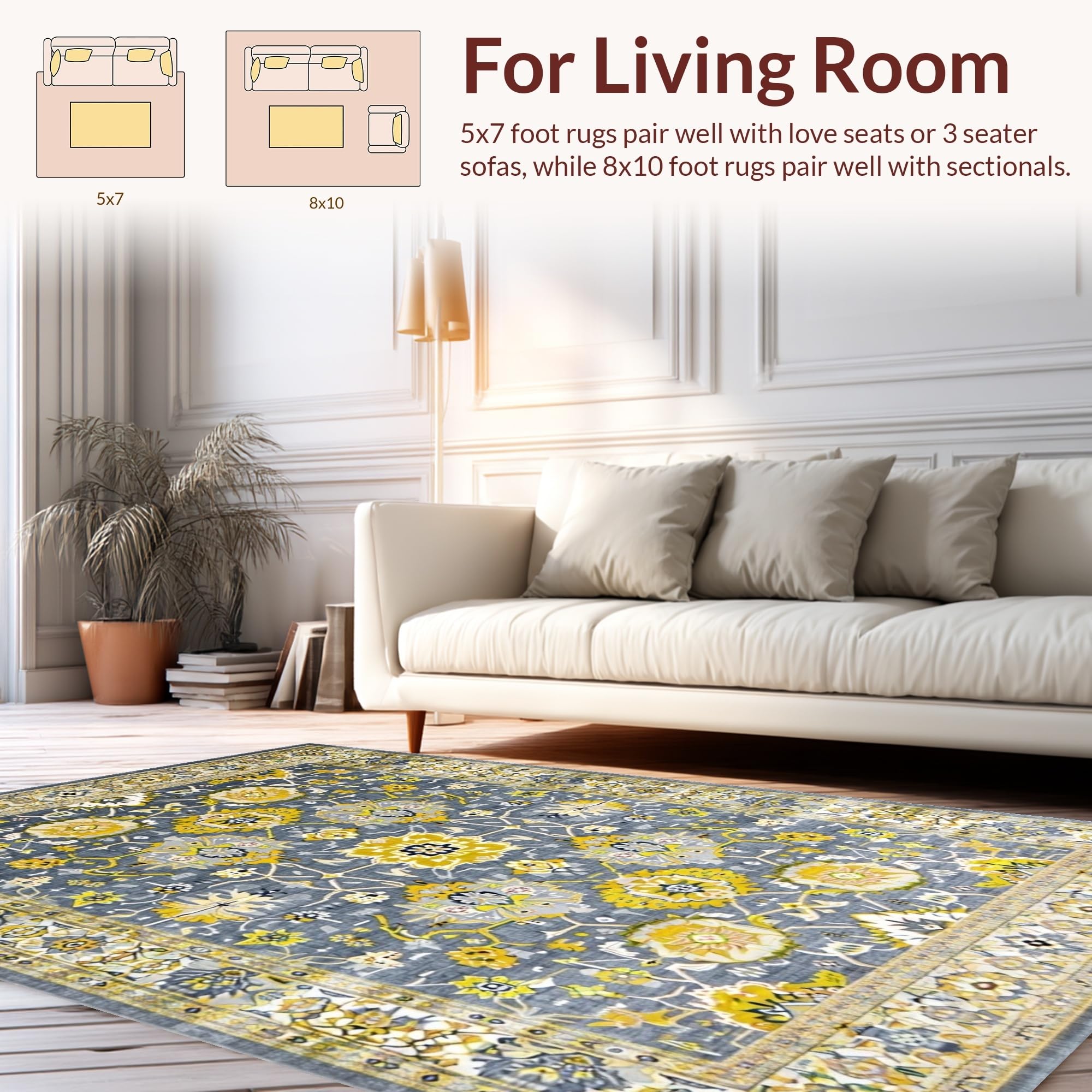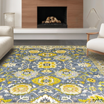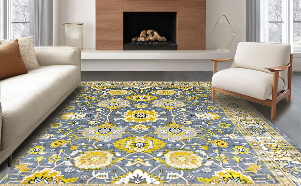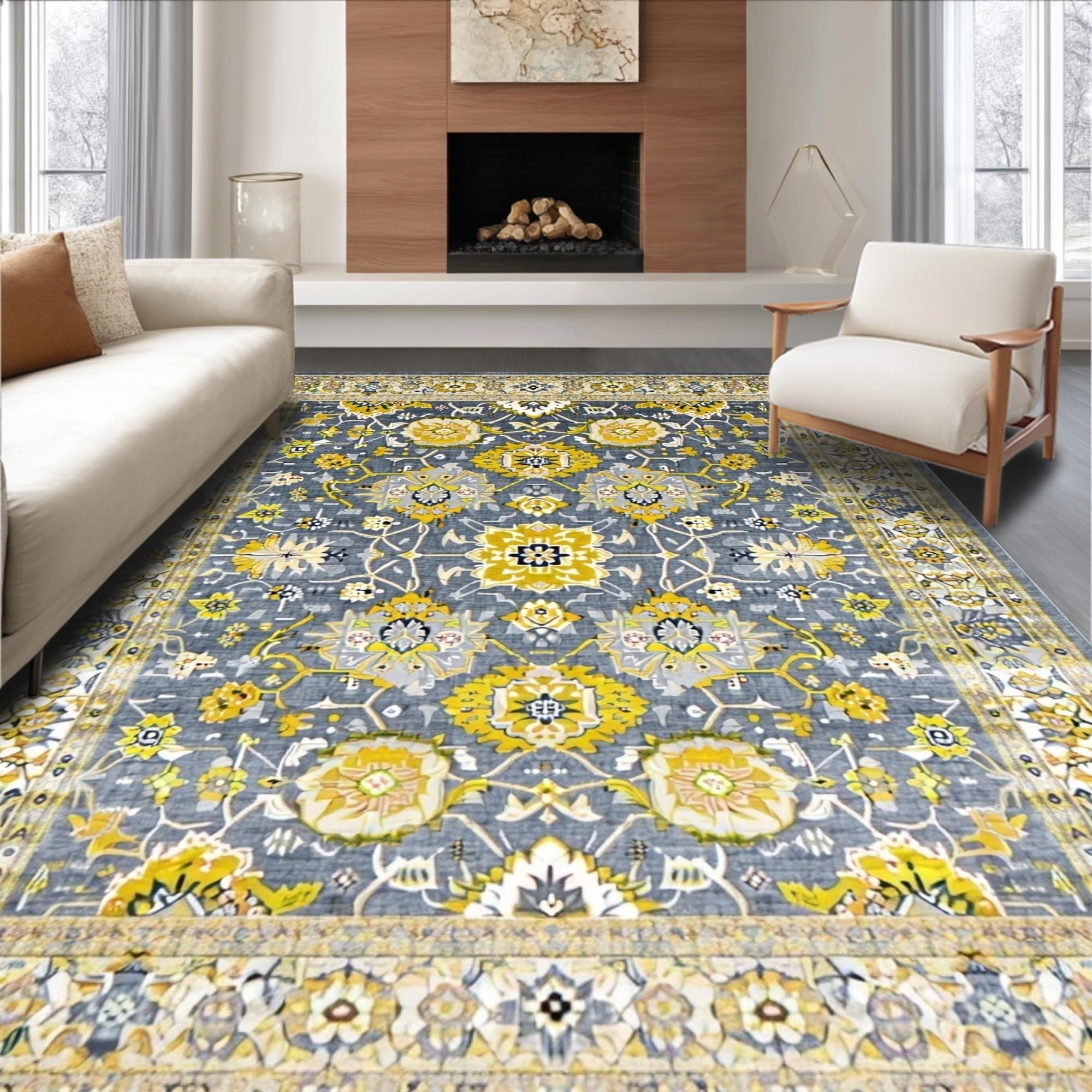 Ultra Soft Area Rug, Non Slip, Stain Resistant, Washable Area Rugs for Living Room, Bedroom, Sophisticated Floral Tiled Composition(Gray) Overview: